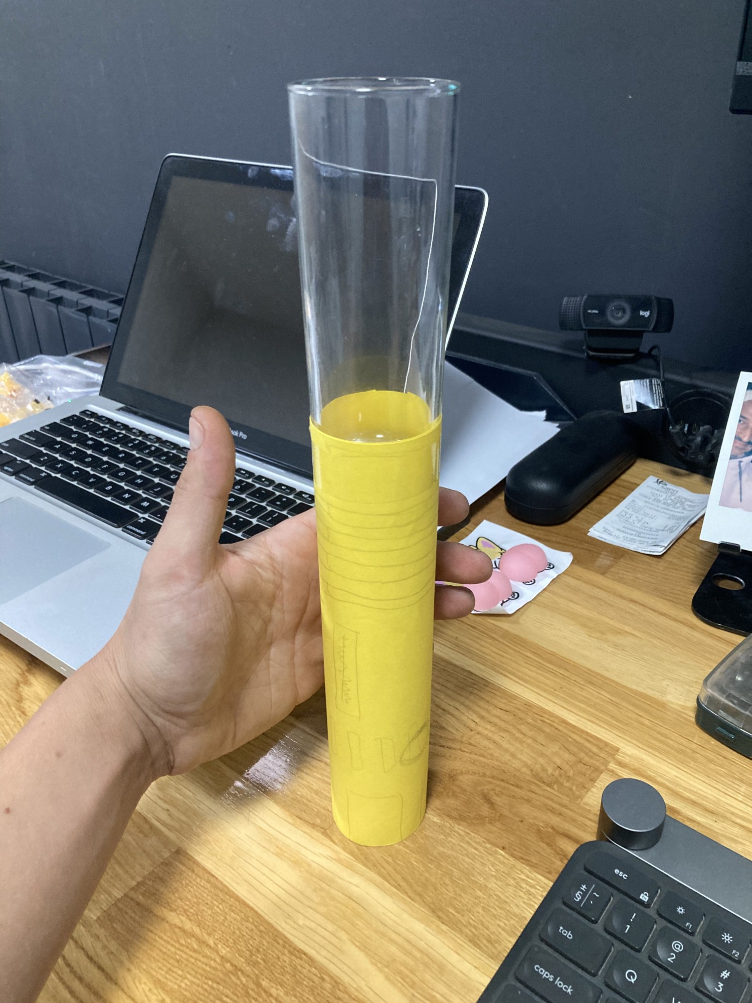 La difficulté était là. Il fallait trouver le juste milieu entre hauteur et largeur. Trop large, c'est stable, mais ça ressemble à un sabre qui ferait mieux de faire un régime... Trop grand et le moindre petit coup dans le verre le ferai basculer et se renverser.