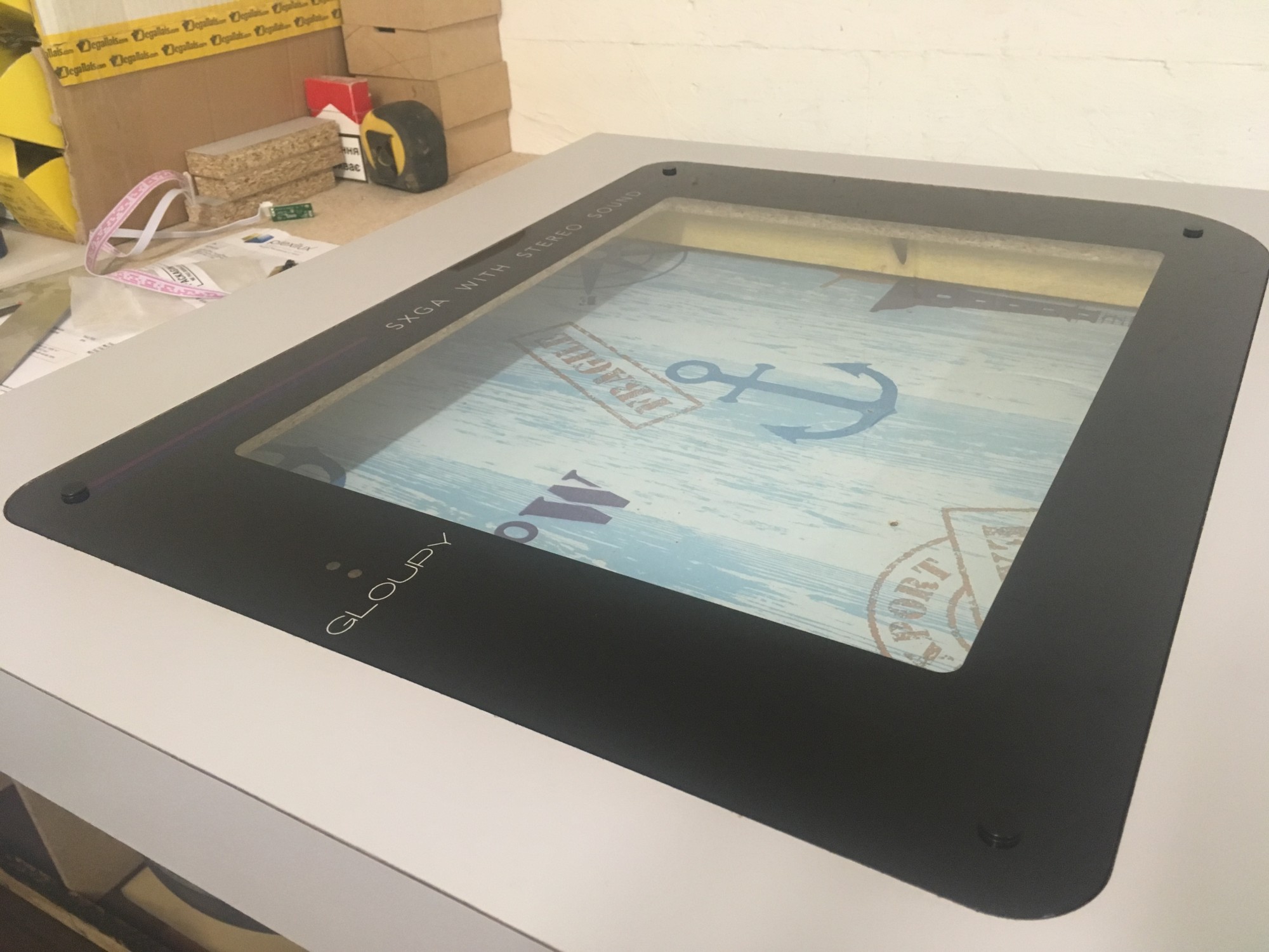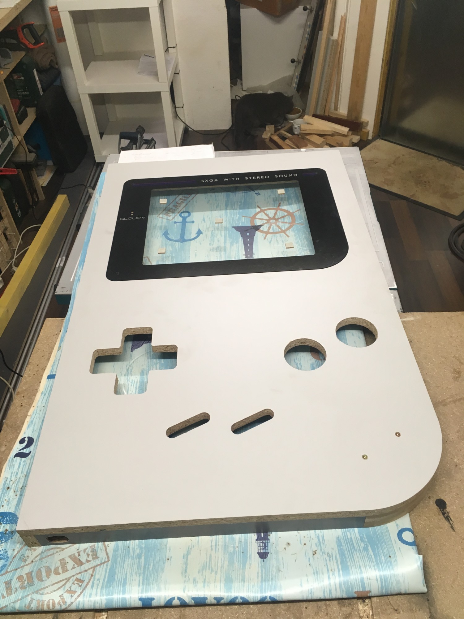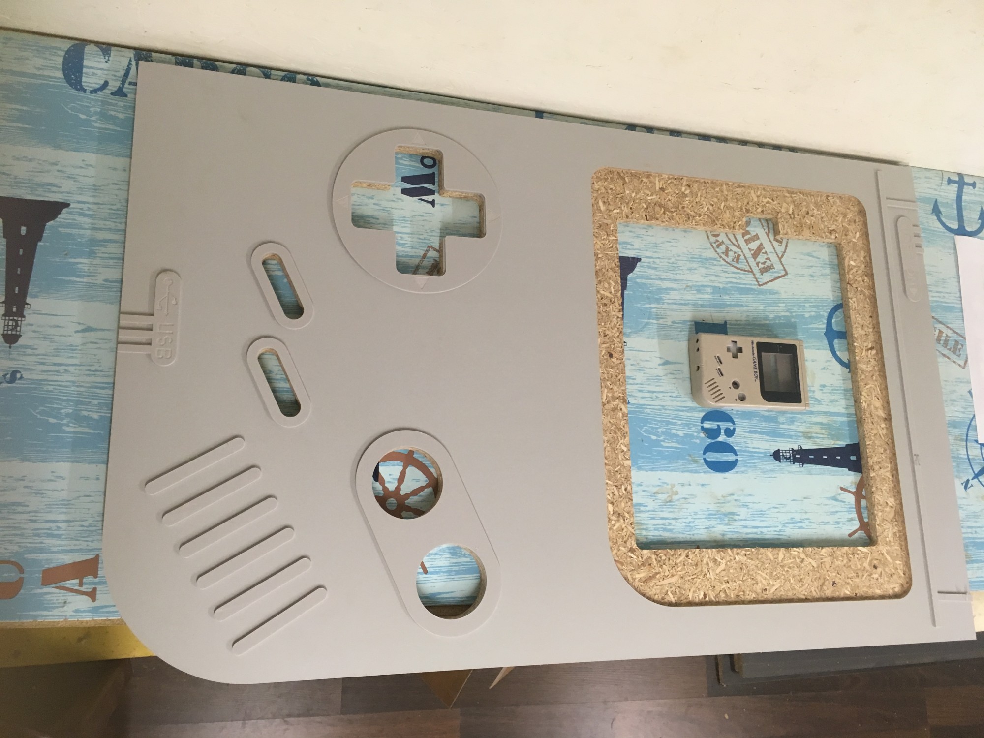 Même si le design est très proche de la console de Nintendo, la Gloupy Boy n'a pas les mêmes proportions. Nous avons dû ajuster le design en fonction des contraintes techniques que cela représentait de l'agrandir autant que cela. Cette console fait 1m x 0.63m après tout !