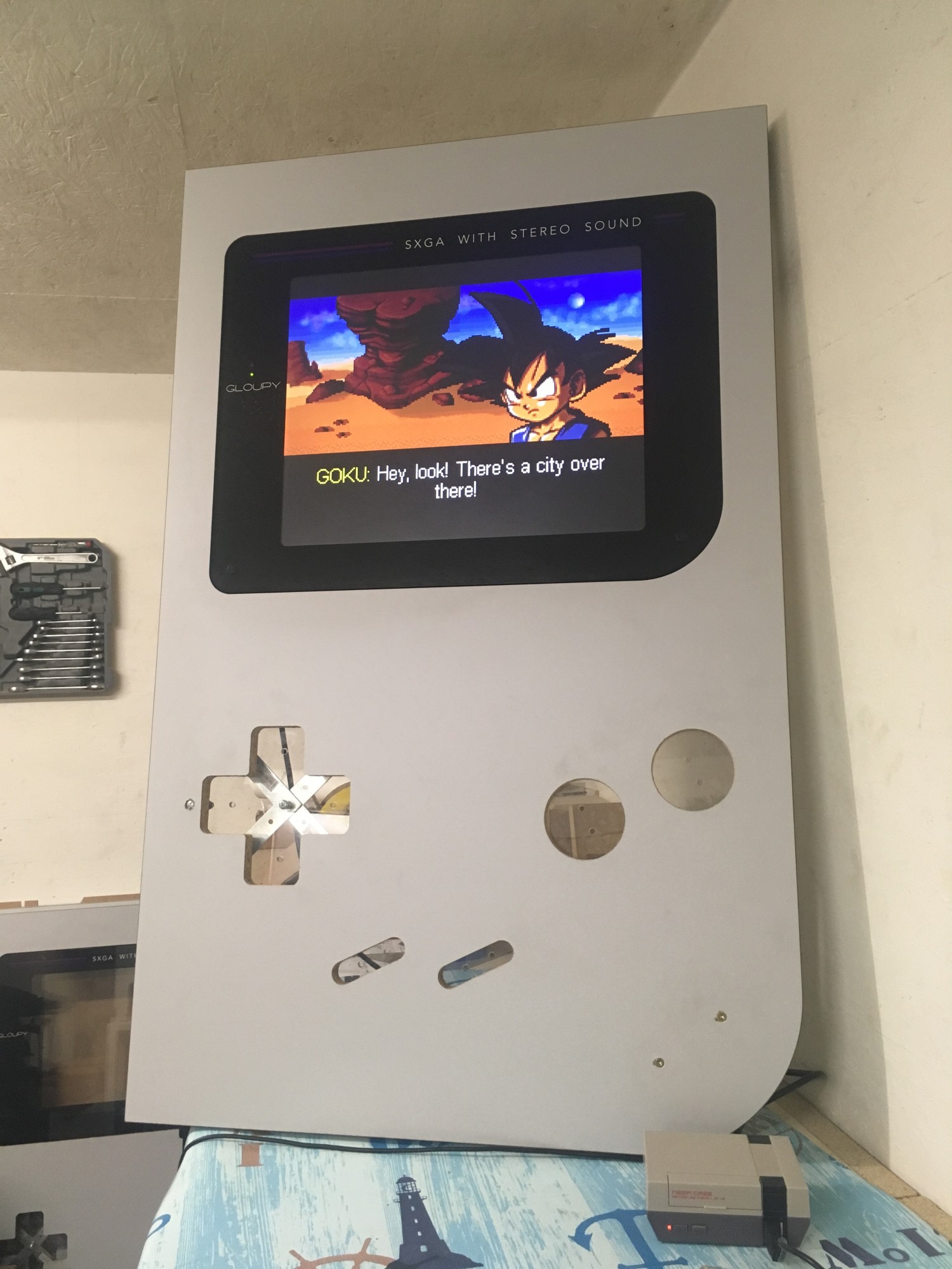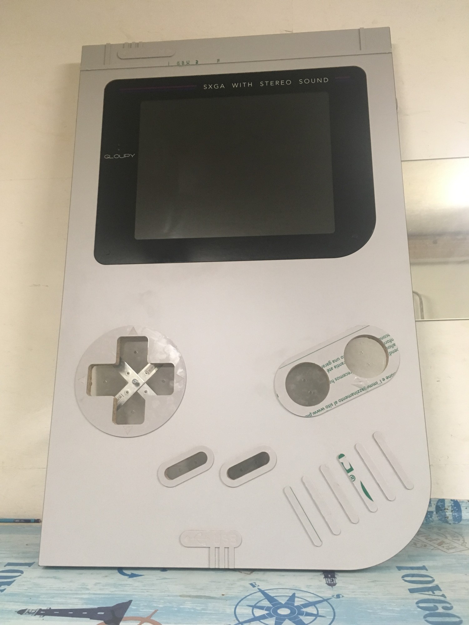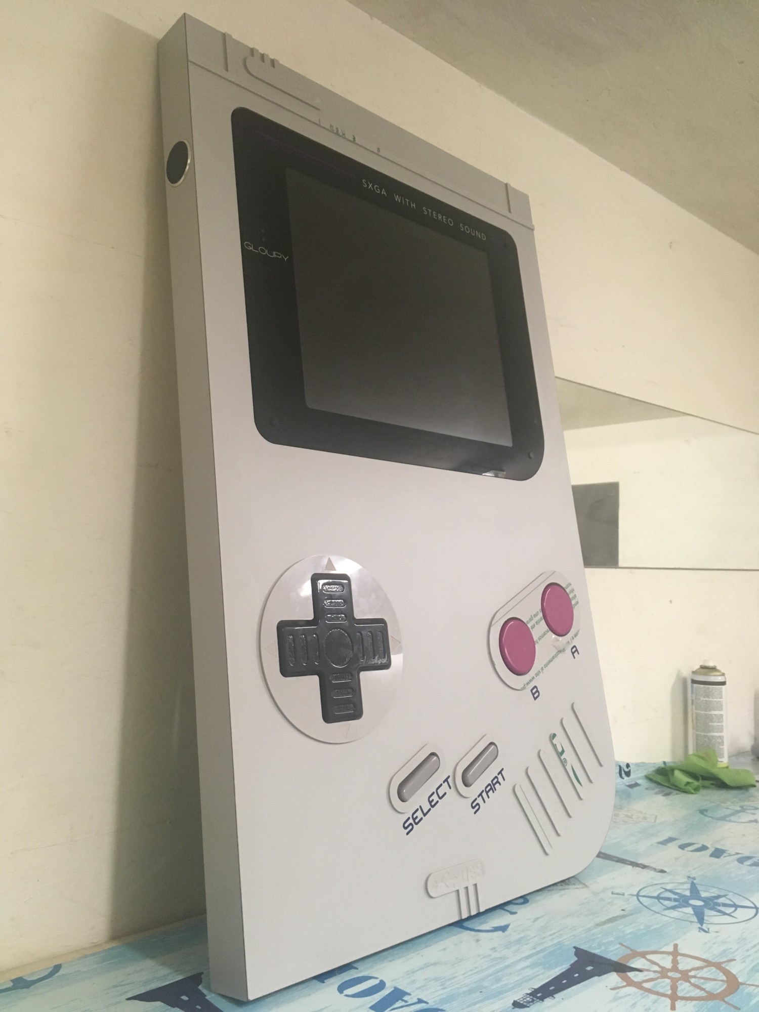 Inspiré à la base d'une console portable, la Gloupy Boy ne l'est pas du tout. Nous voyons cette console comme une œuvre d'art à mettre en valeur sur un mur. Comme un tableau d'un grand artiste.