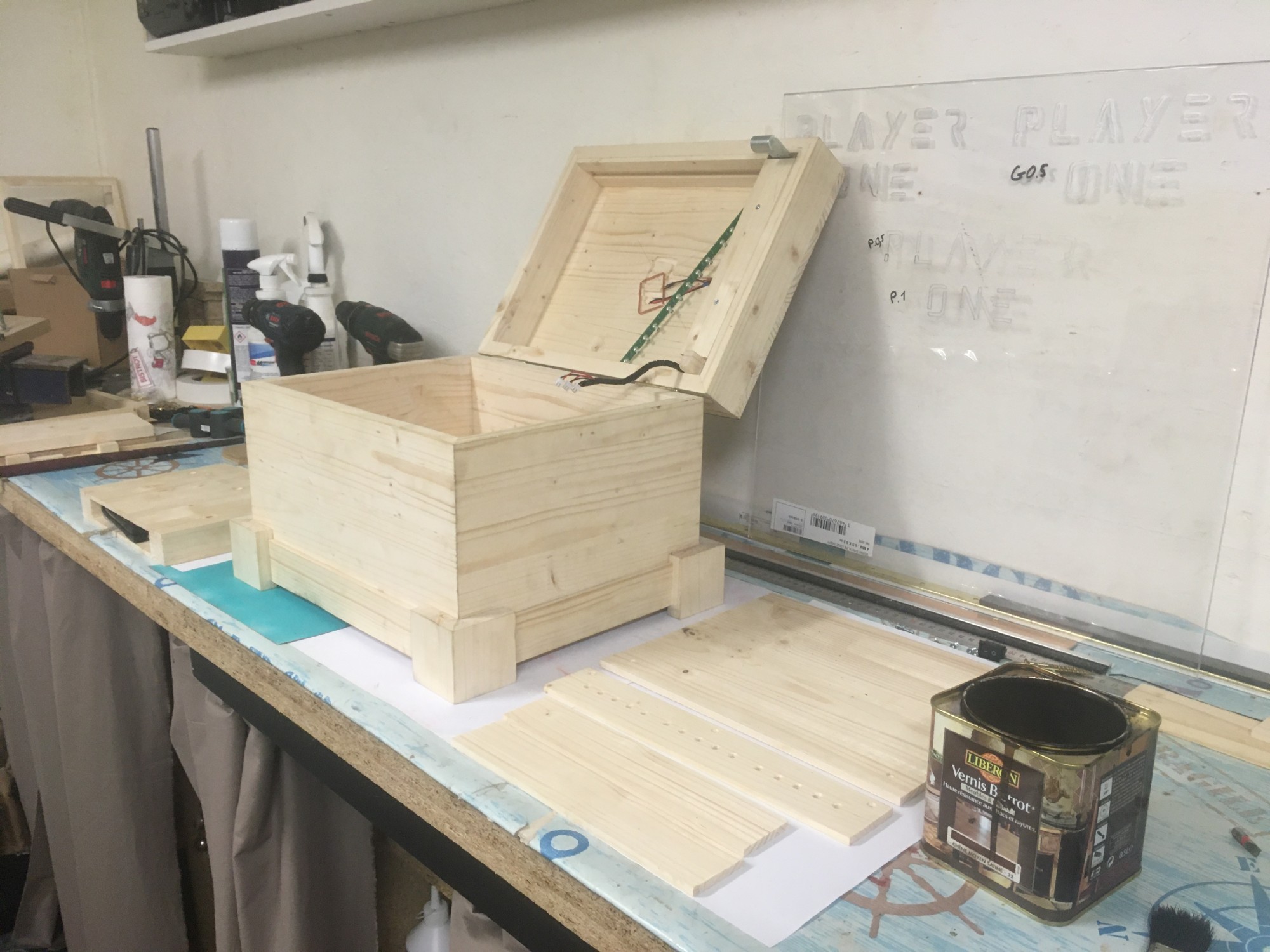Tout à fait ! Il y a "geek" dans "menuisier geek", et nous avons utiliser la magie de l'électronique pour réaliser ce coffre !