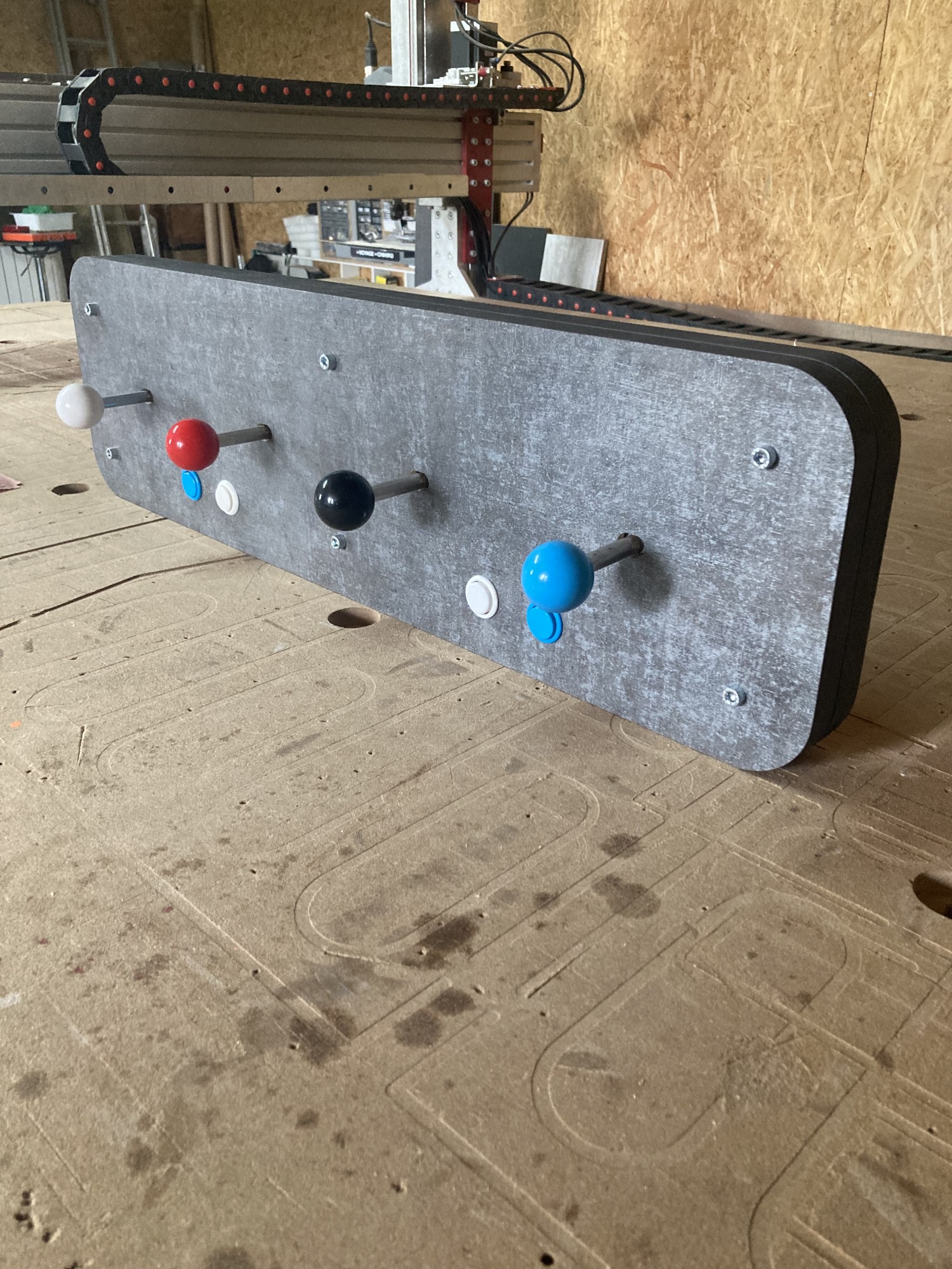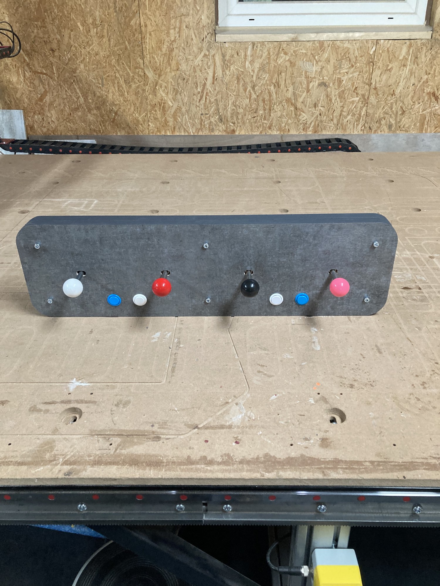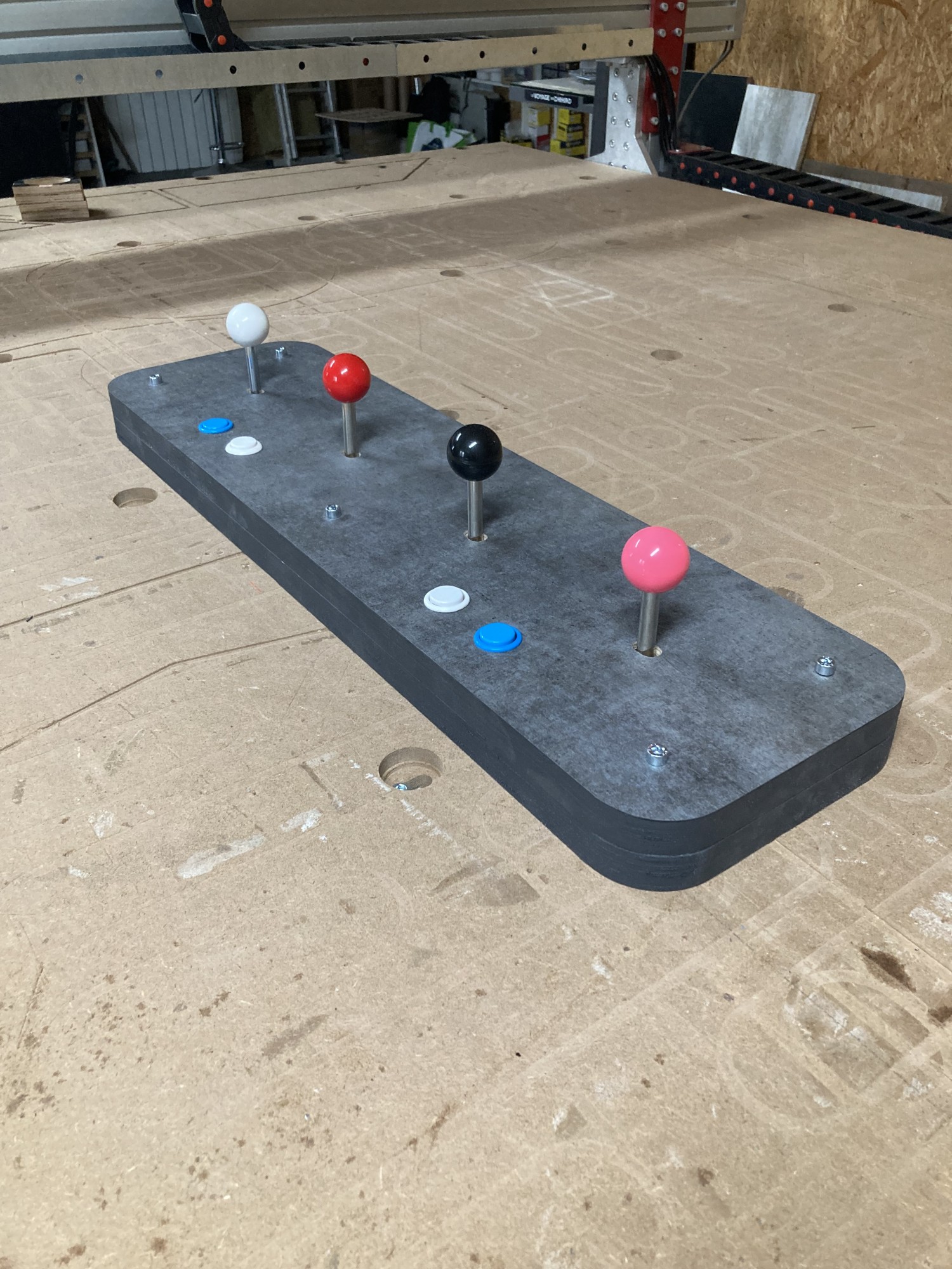 Après avoir vu ce qu'une réalisation classique en bois pouvais donner en termes de solidité (ce n'est pas costaud du tout...), nous avons décidé de chercher la solution ailleurs. Et cette solution, en réalité, était toute simple : Utiliser de vrai joystick d'arcade ! Plutôt que d'essayer de recréer quelque chose, parfois, il est plus simple d'utiliser cette chose directement.