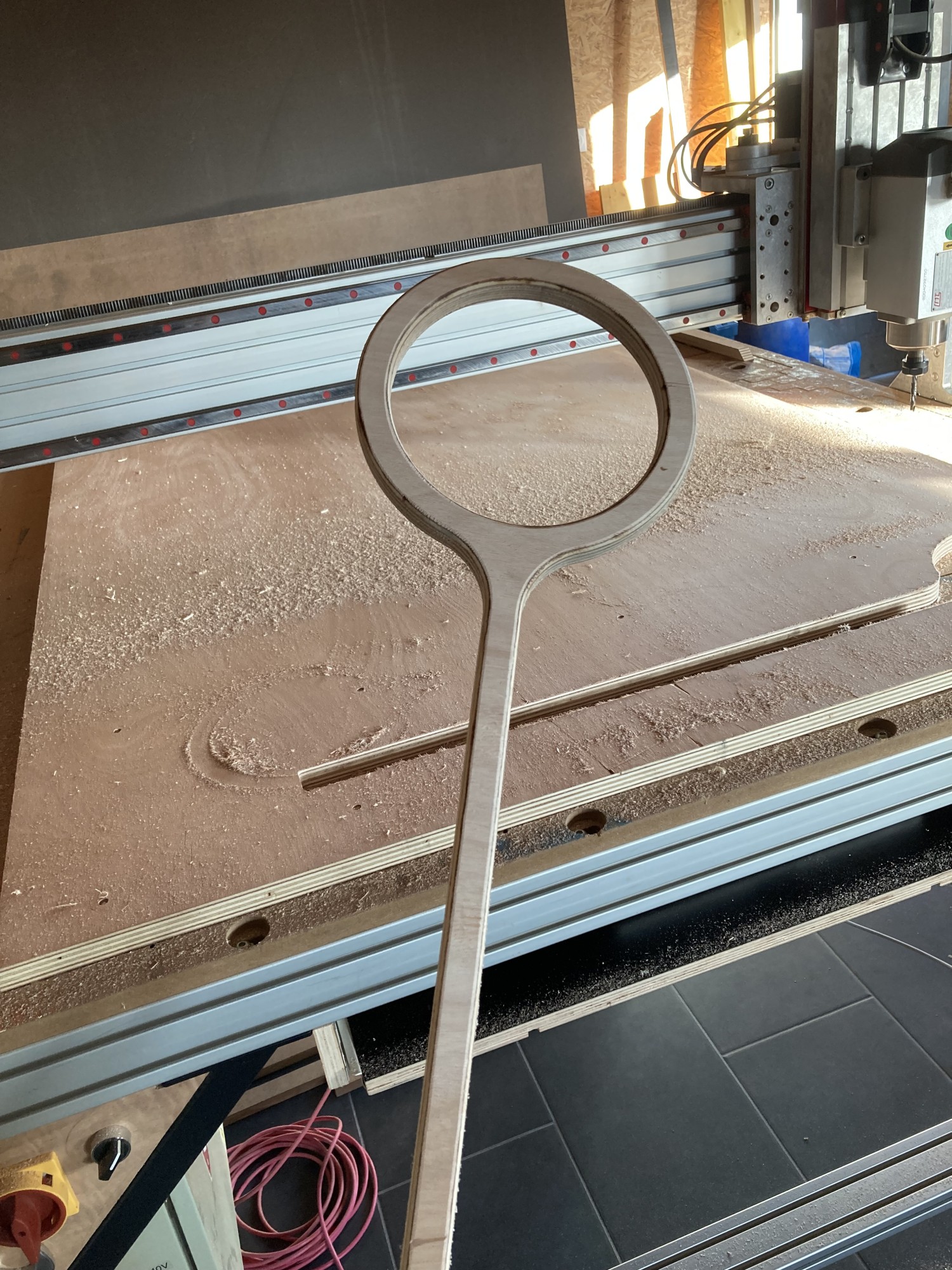 Après avoir minutieusement mesuré les emplacements des anneaux sur la table, nous les avons modélisées en 3D pour les découper dans notre atelier près de Rouen avec notre défonceuse à commande numérique (CNC).