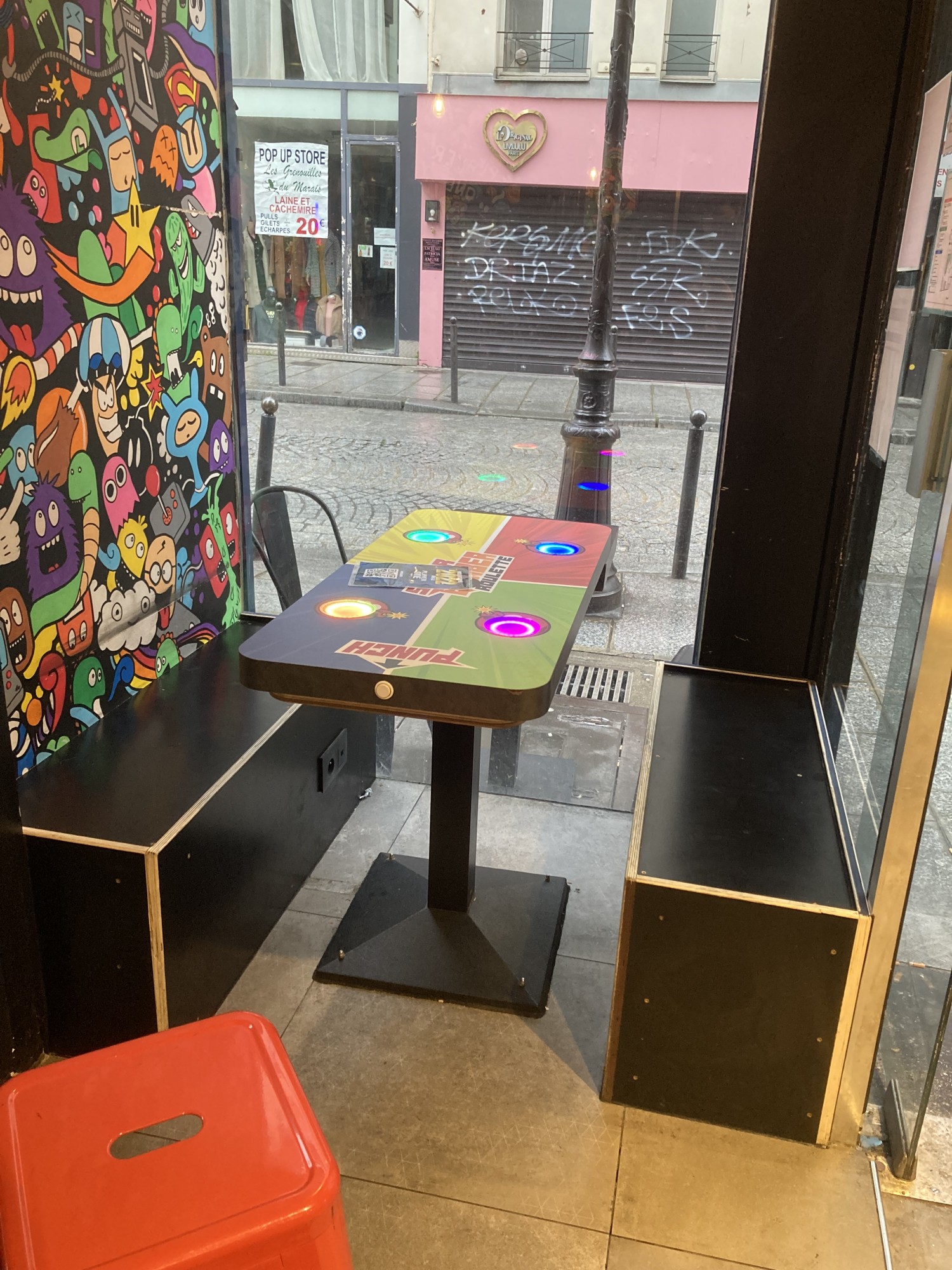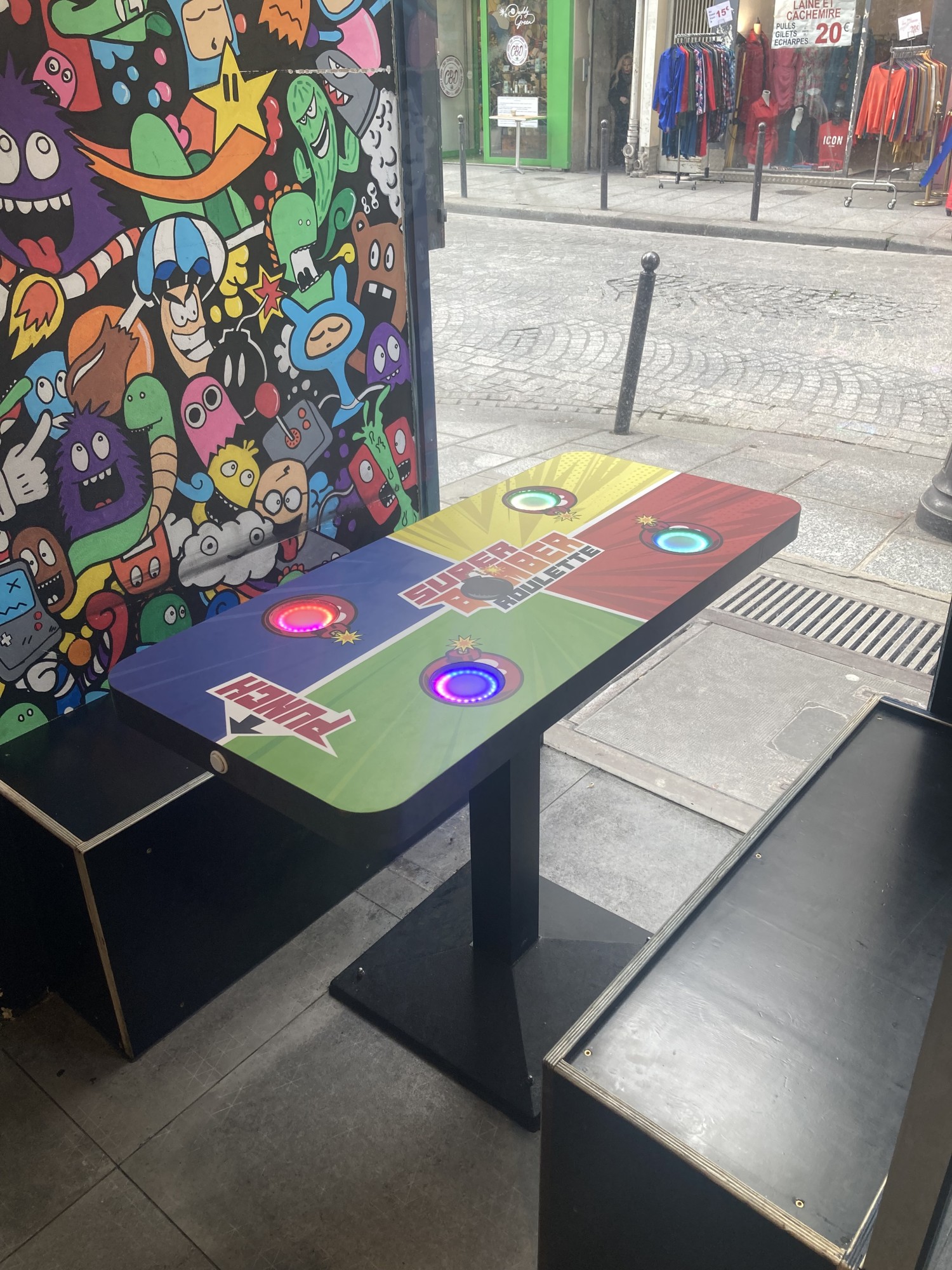Cette table, unique au monde a été entièrement conçu et développé par nos soins pour le bar Player One Paris.