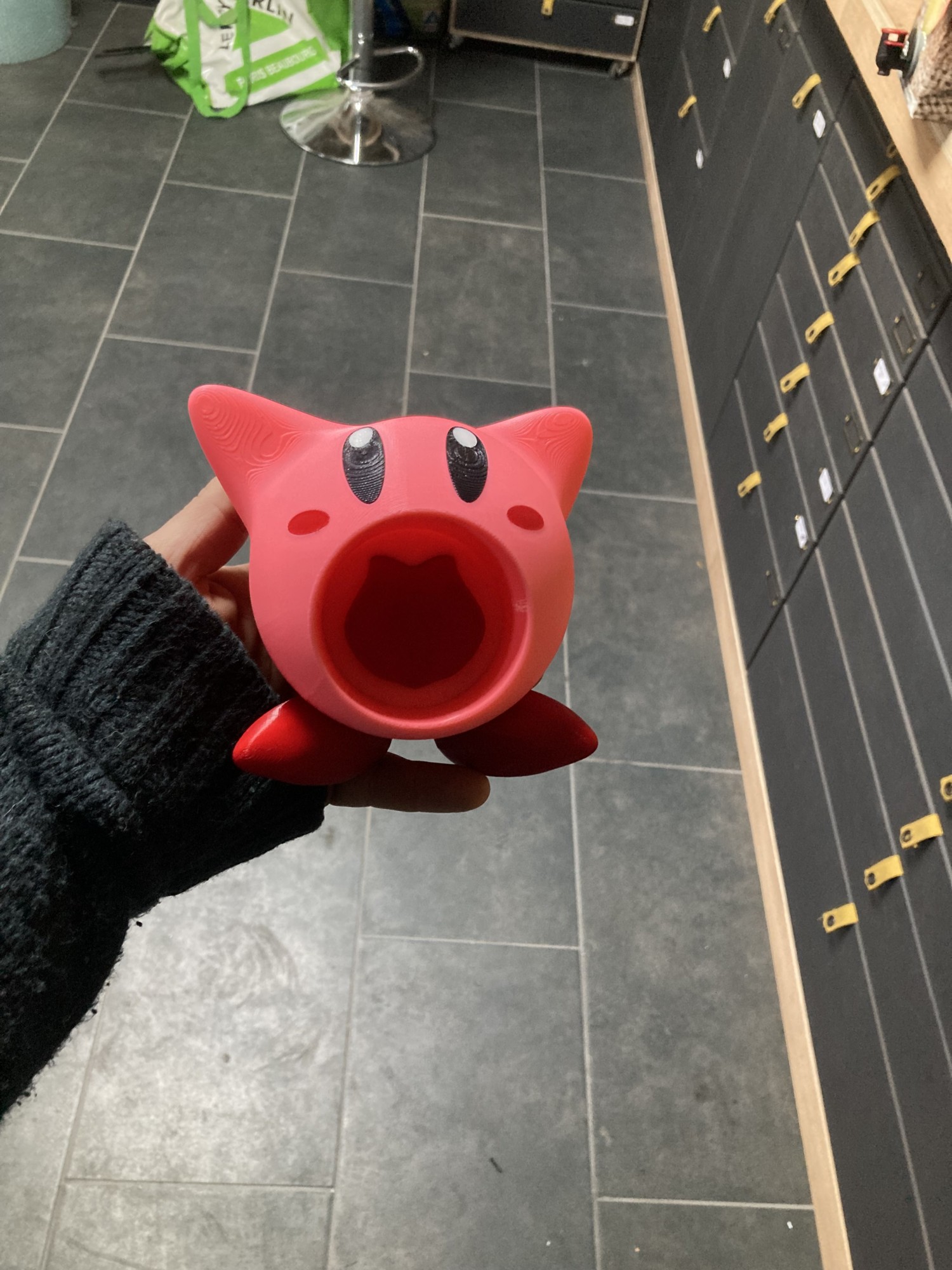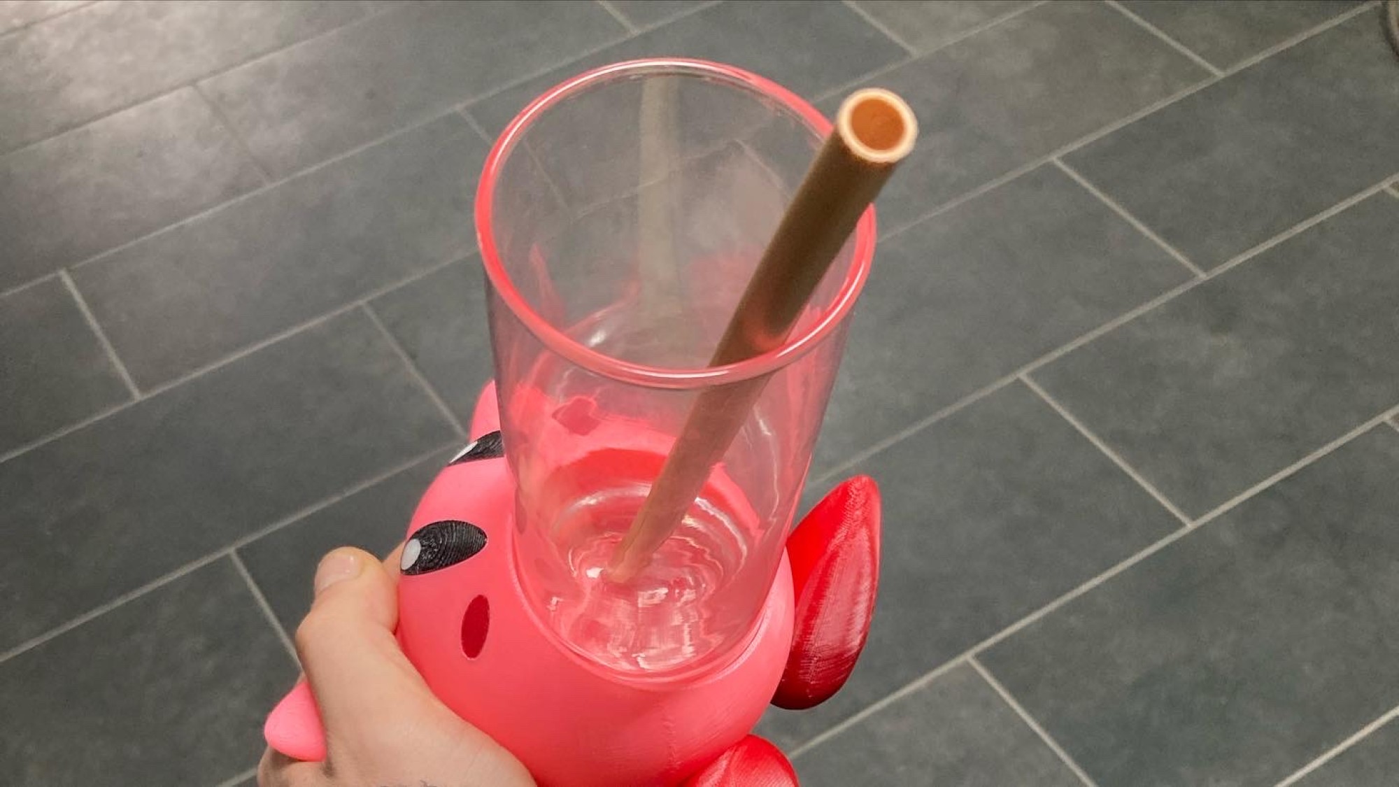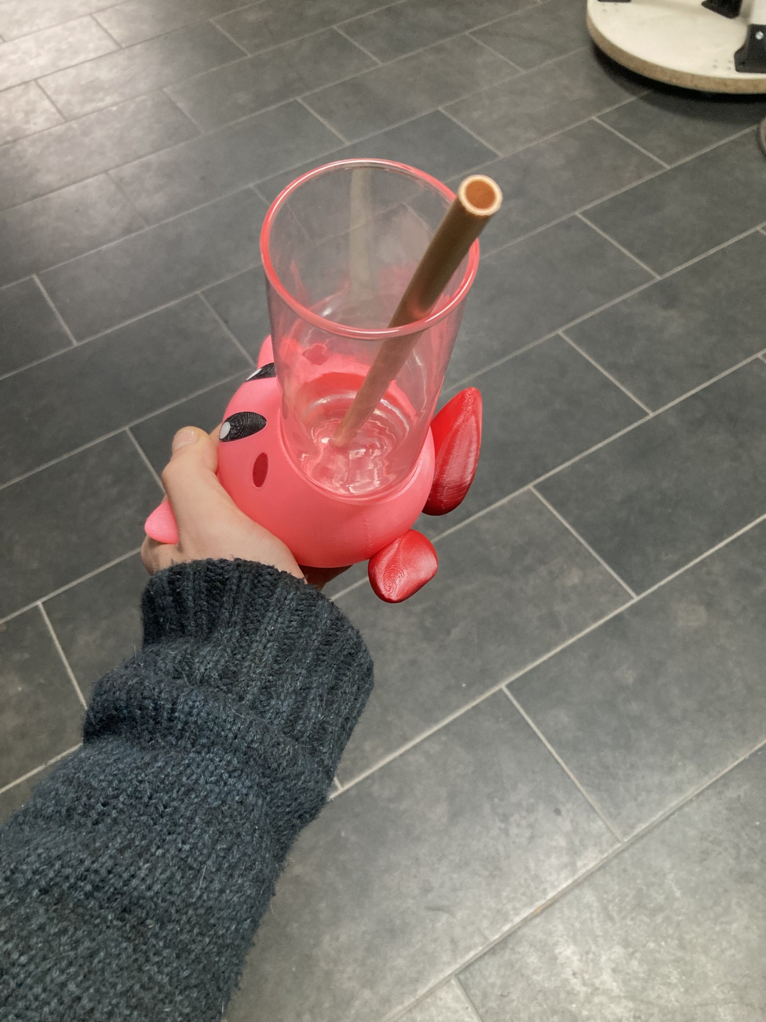 Entièrement modelé à la main sur notre logiciel Fusion 360, le personnage rose a la bouche grande ouverte pour y accueillir un verre !