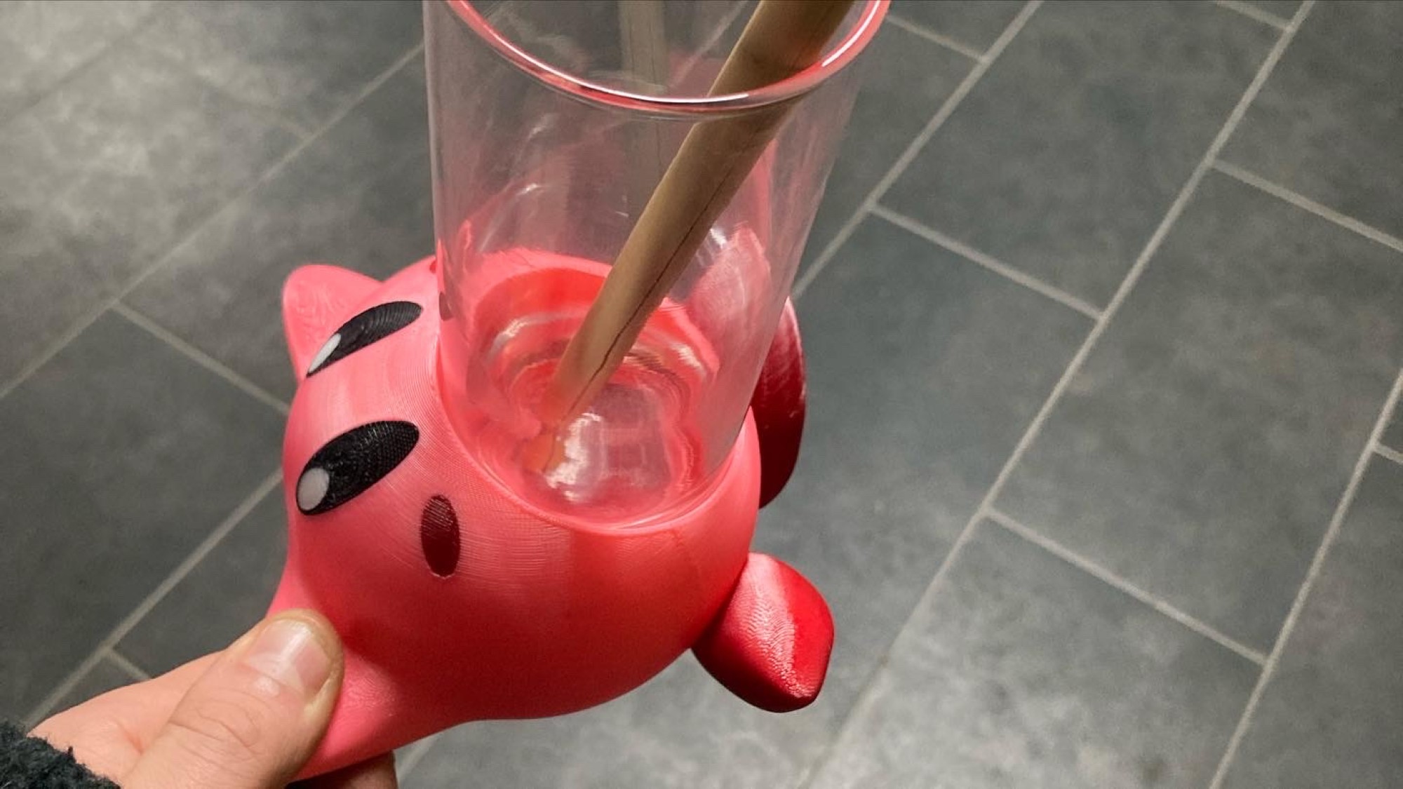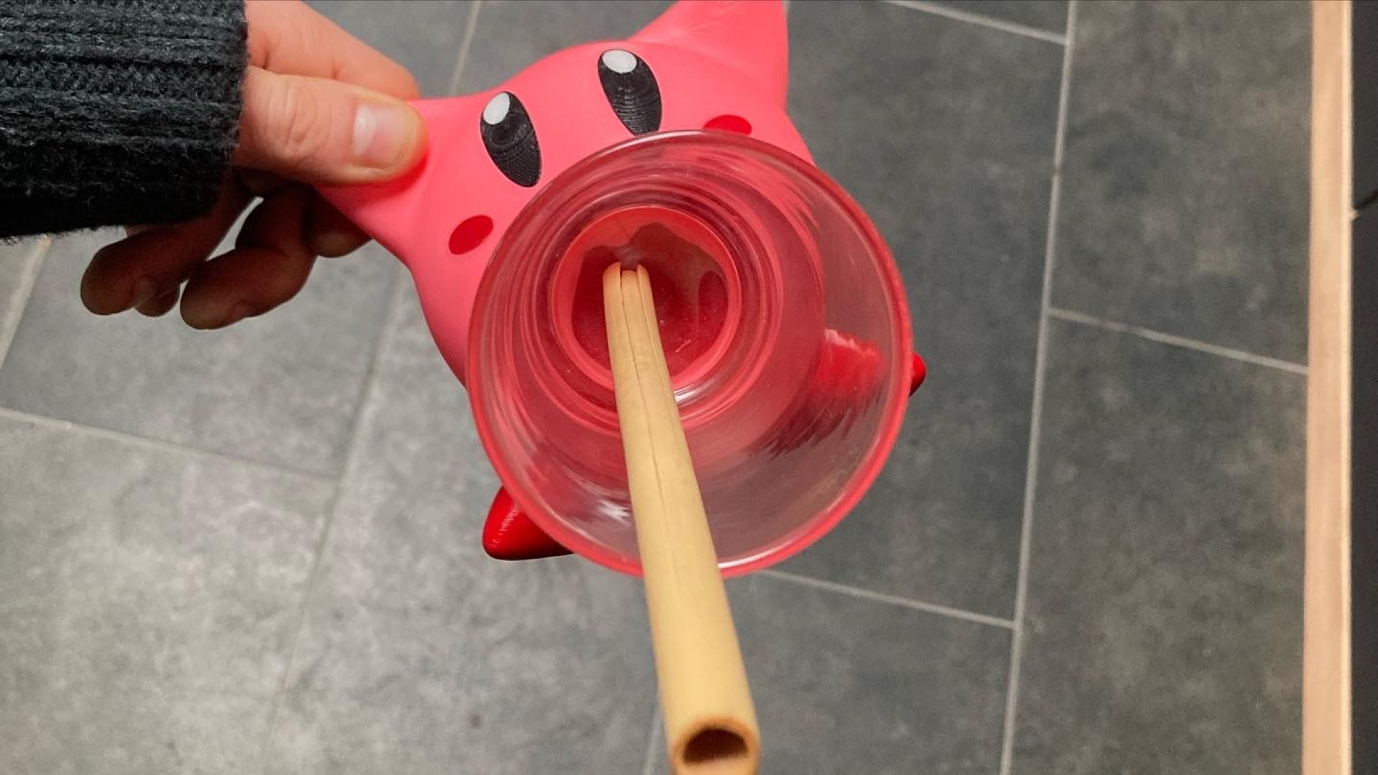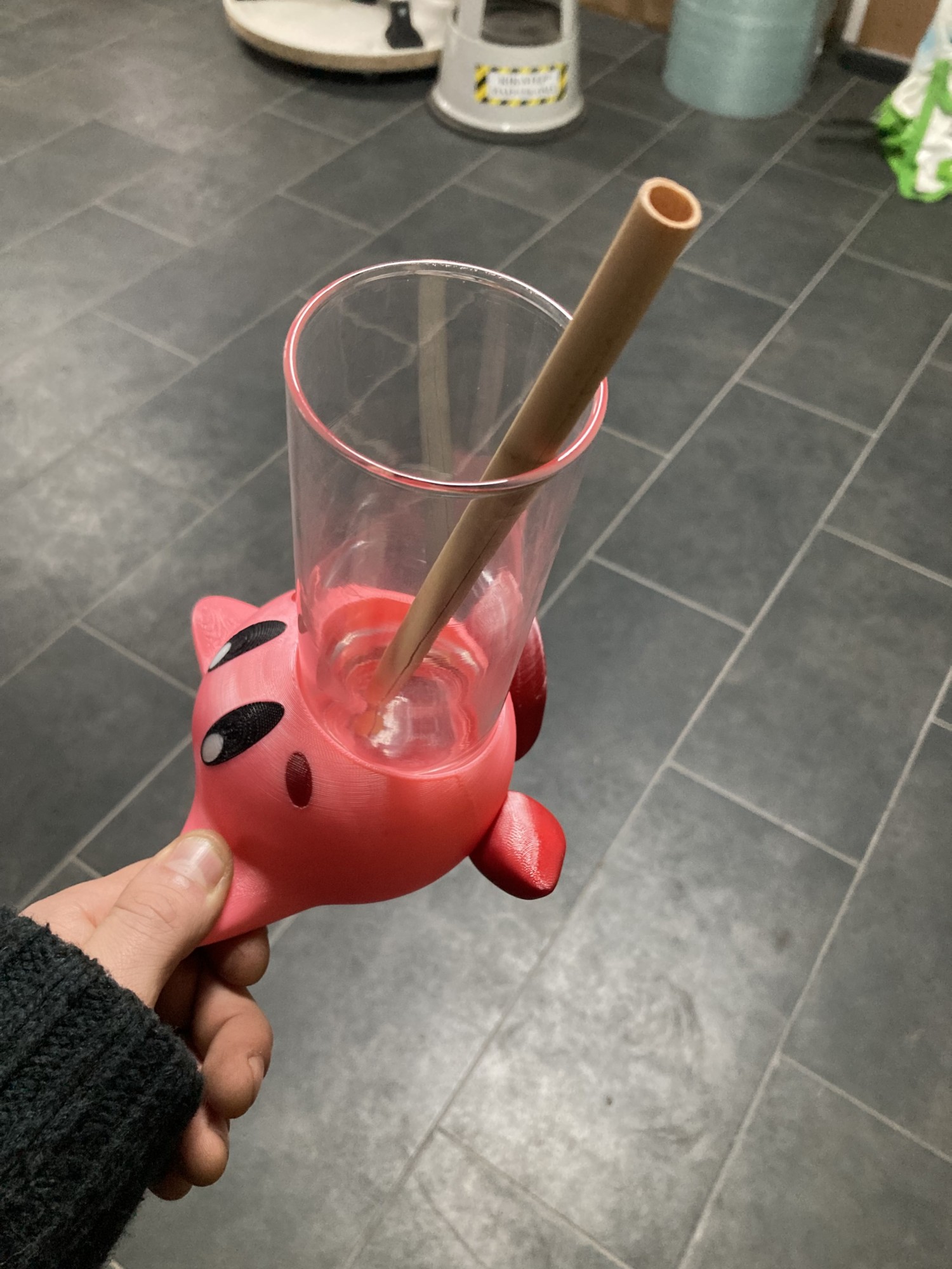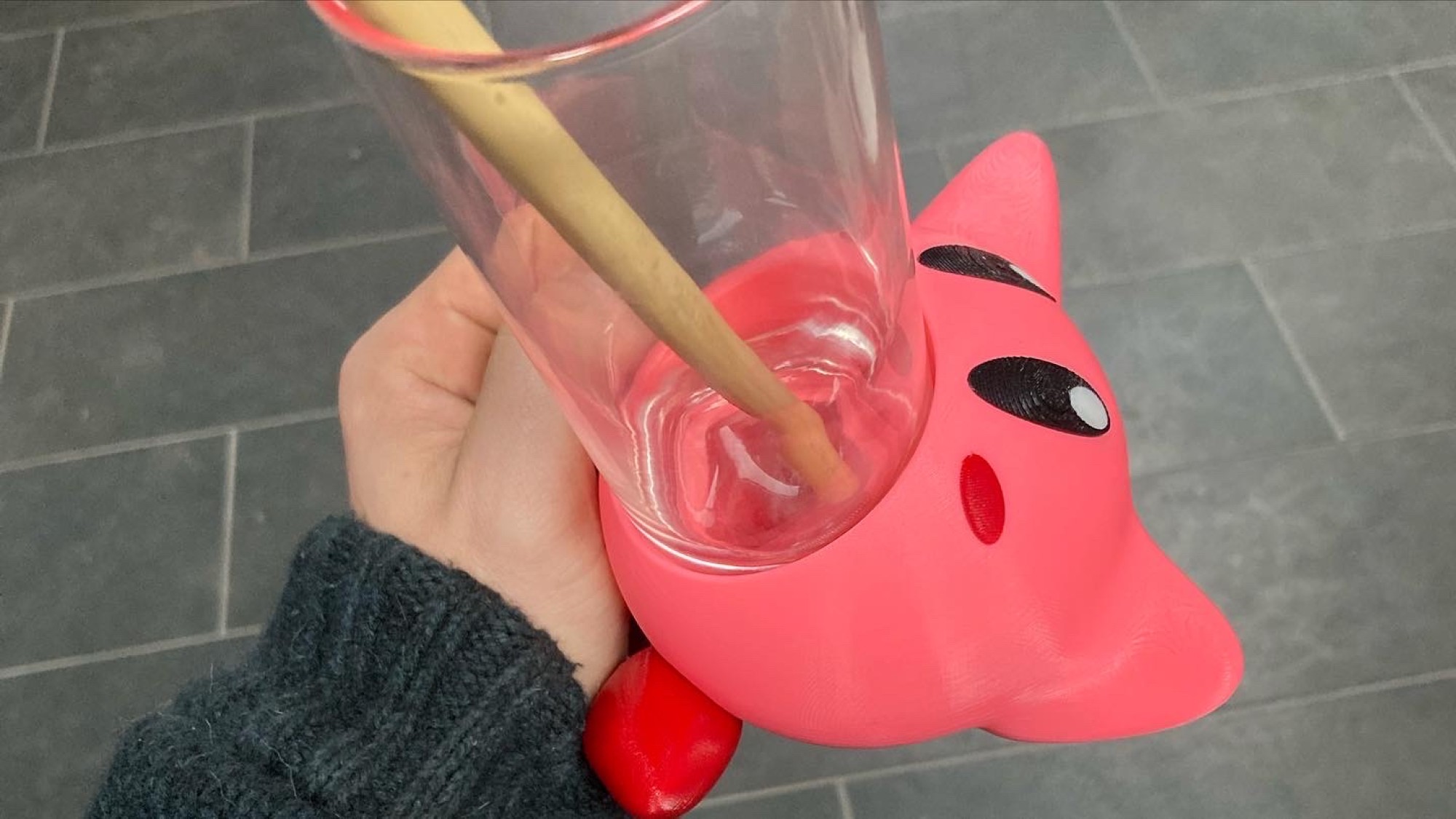 Il y a un petit easter egg, lorsque vous aurez fini votre verre, Kirby vous tire la langue !