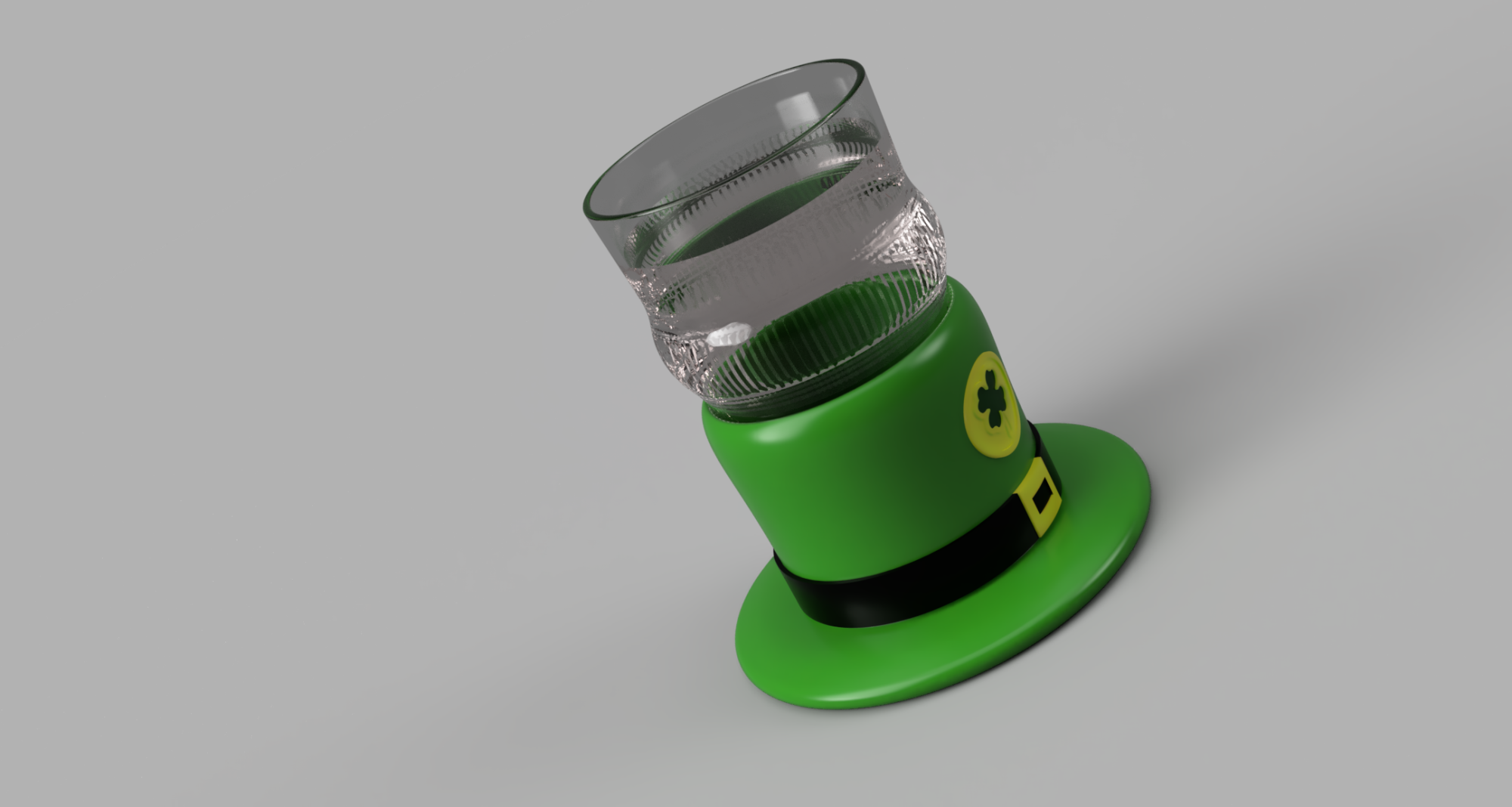 Comme pour tout nos projets, nous avons d'abord commencé par une conception en 3D du chapeau, élément emblématique de la Saint Patrick. Et ça tombe bien, car le chapeau est une forme parfaite pour accueillir un verre !