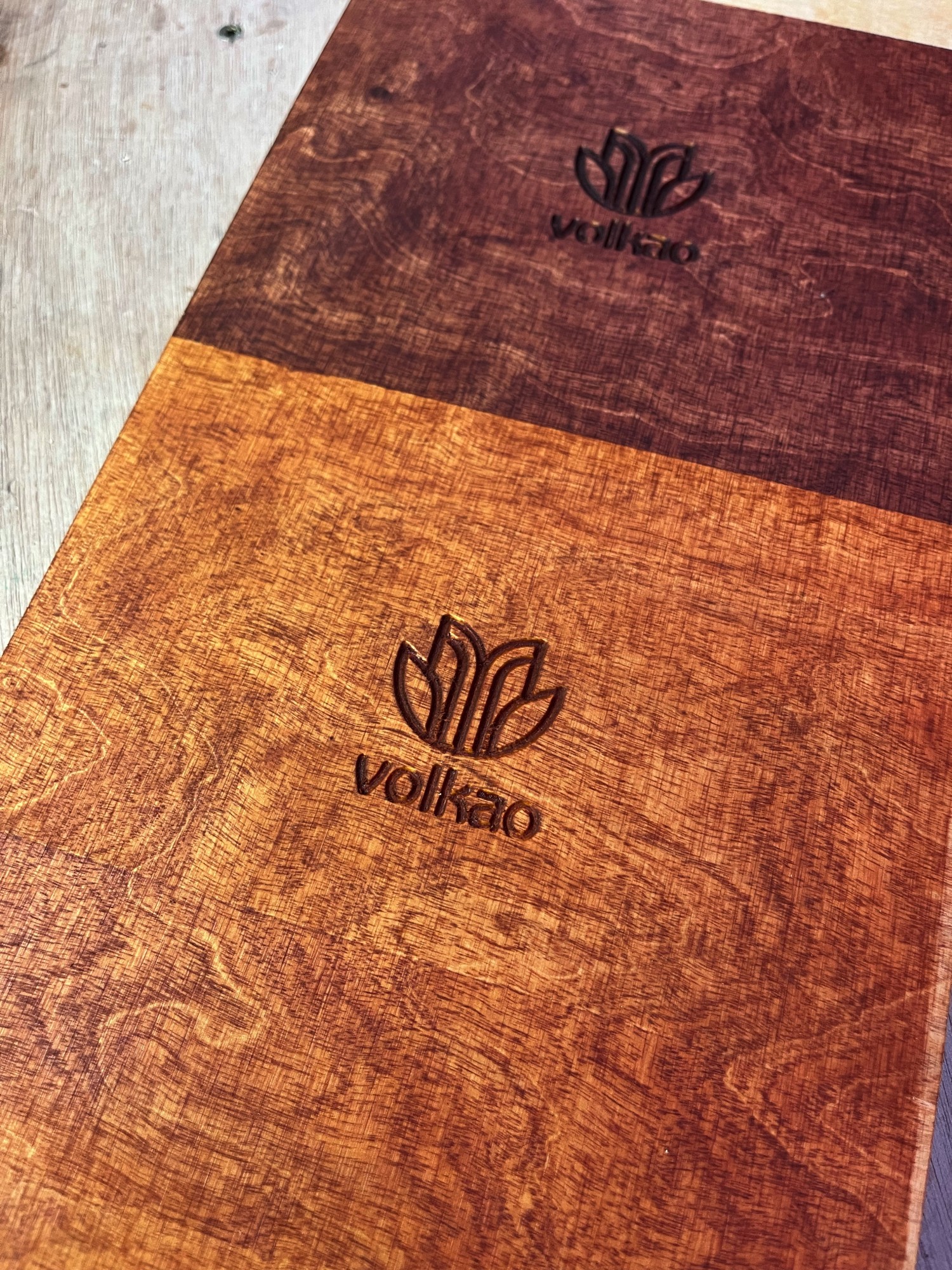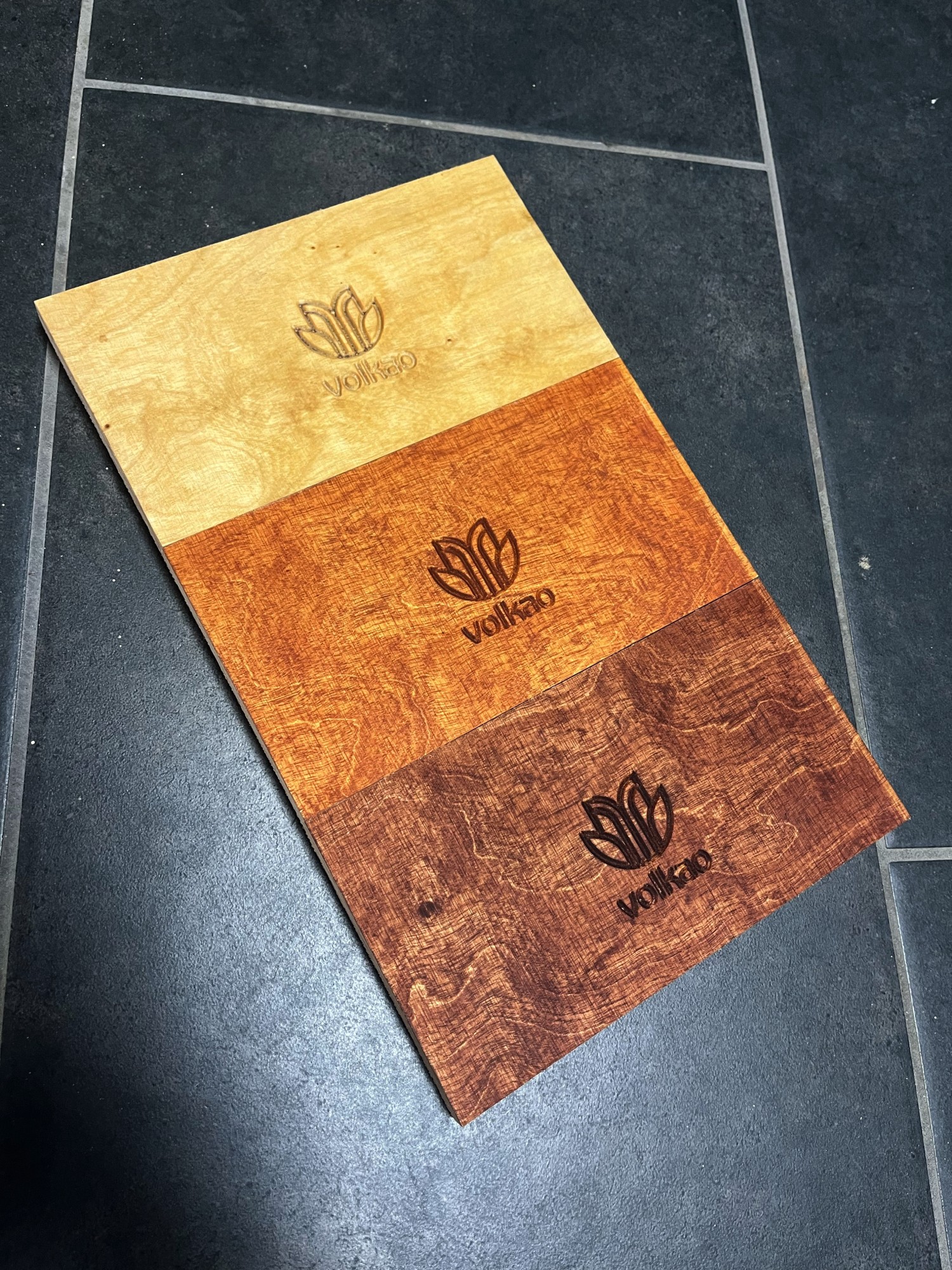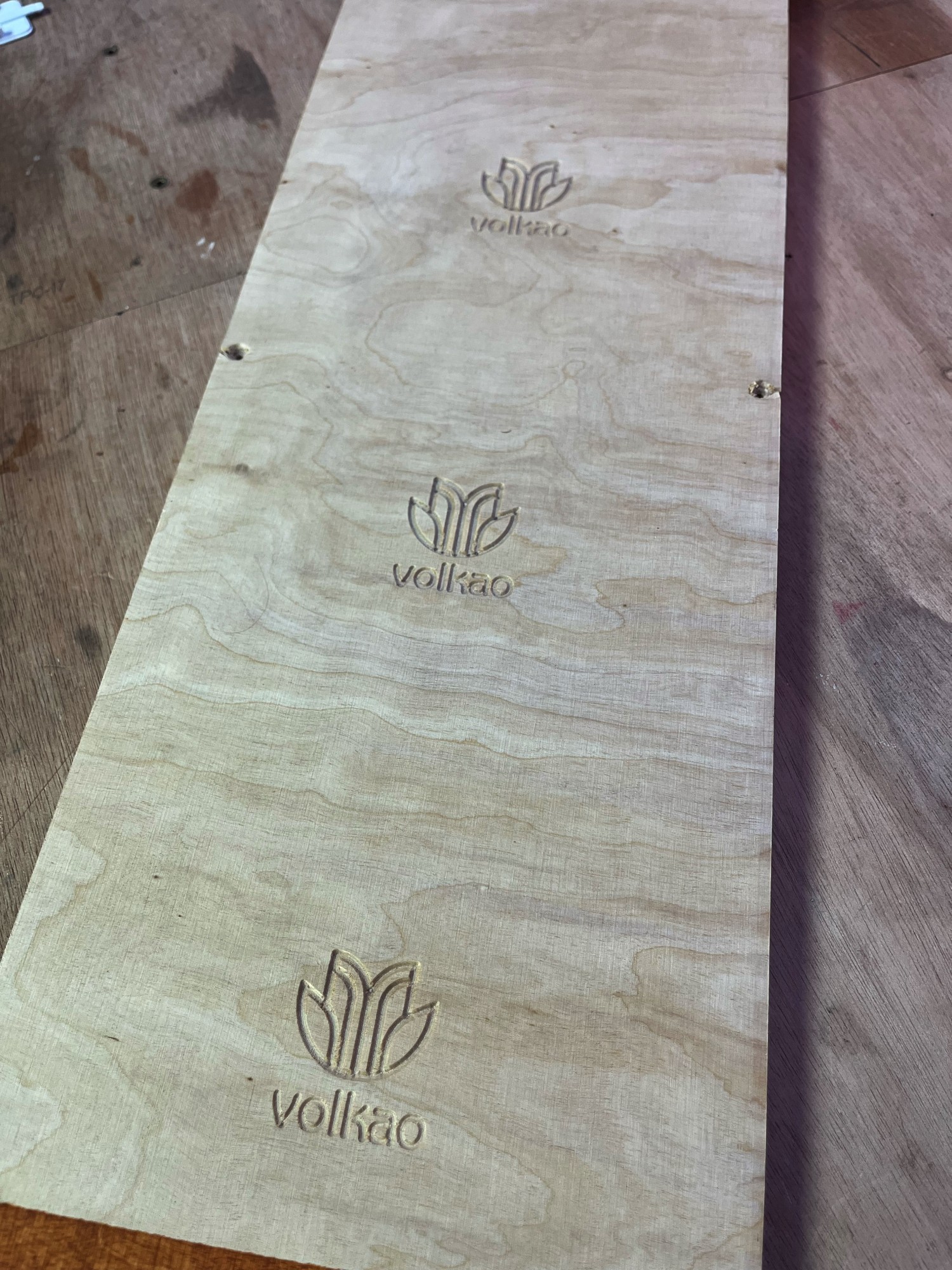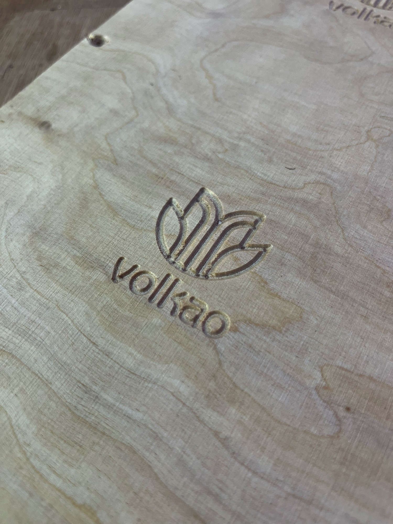 Avant de graver un produit en série avec la CNC (fraiseuse à commande numérique), il est important de faire des prototypes. C'est ce que nous avons fait avec le logo Volkao.