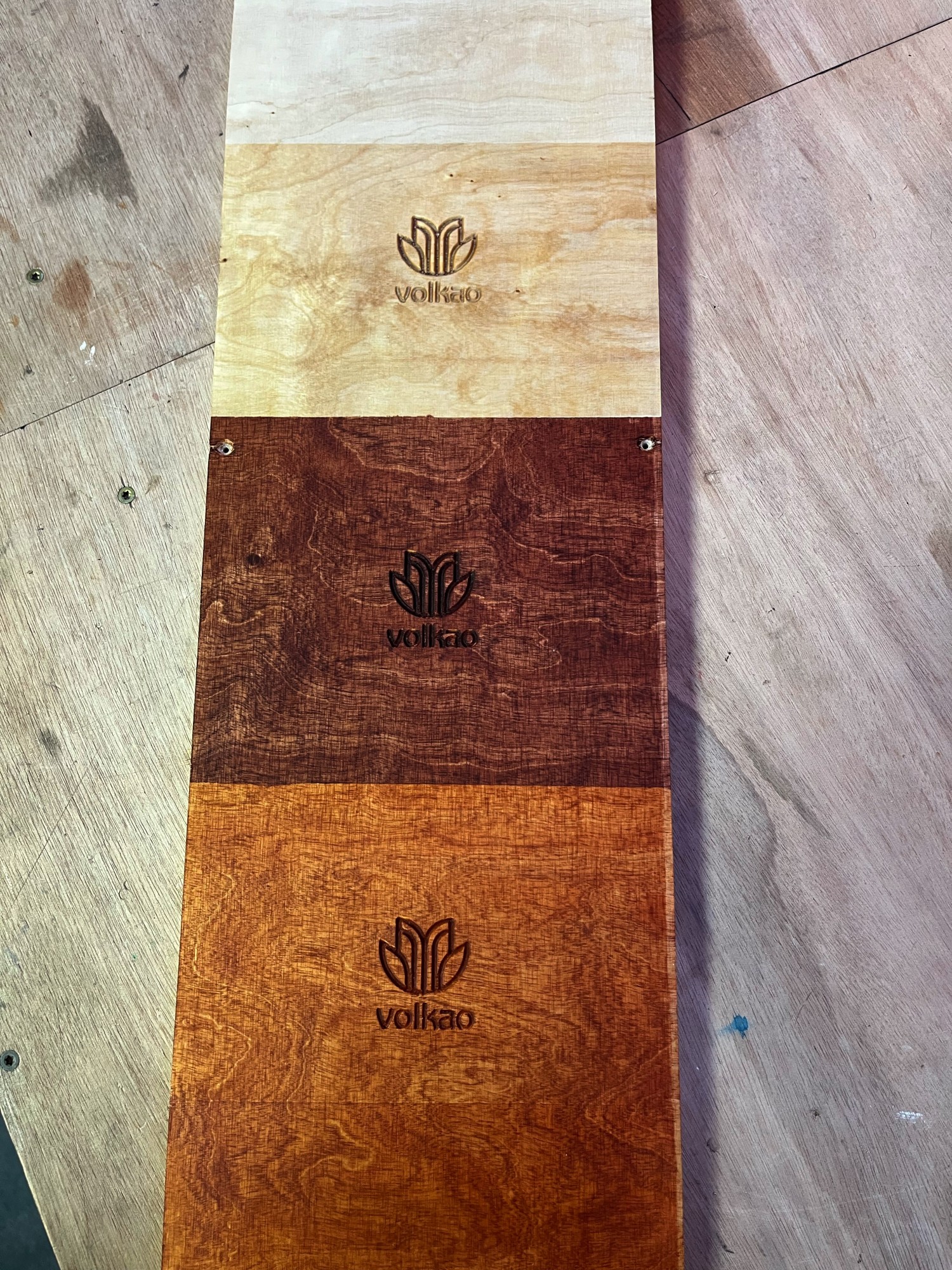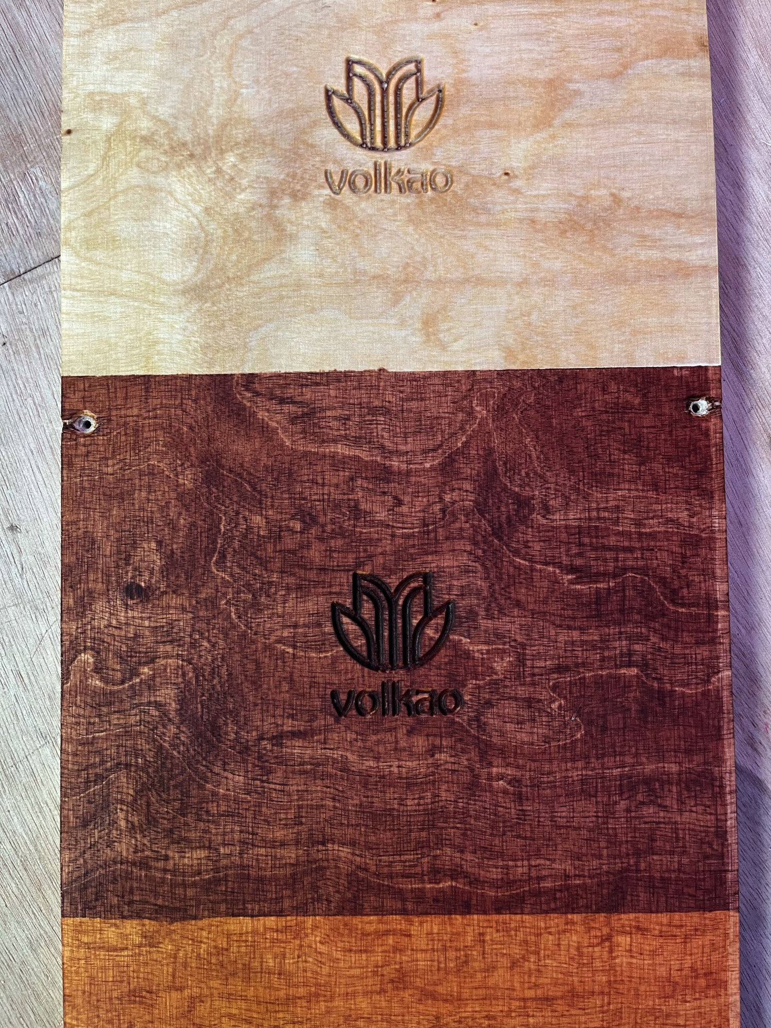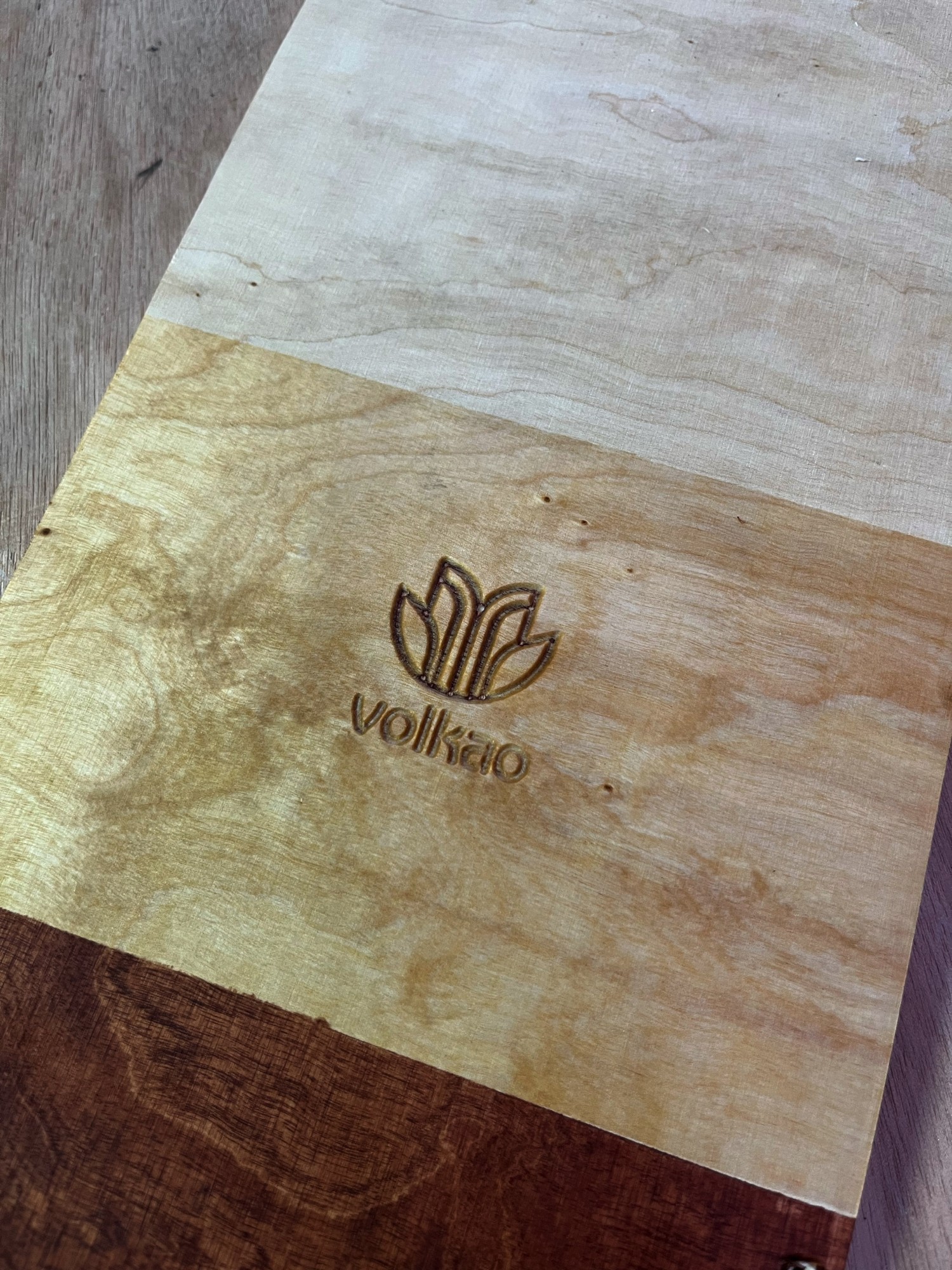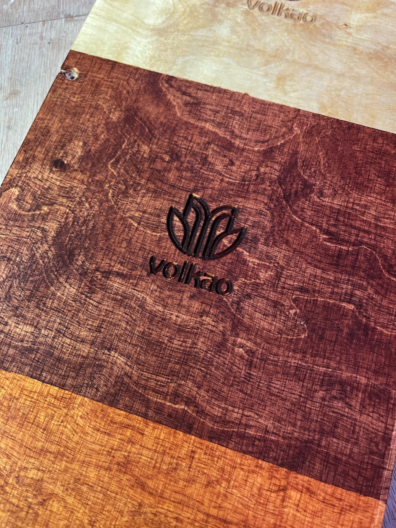 Avant de graver un produit en série avec la CNC (fraiseuse à commande numérique), il est important de faire des prototypes. C'est ce que nous avons fait avec le logo Volkao.