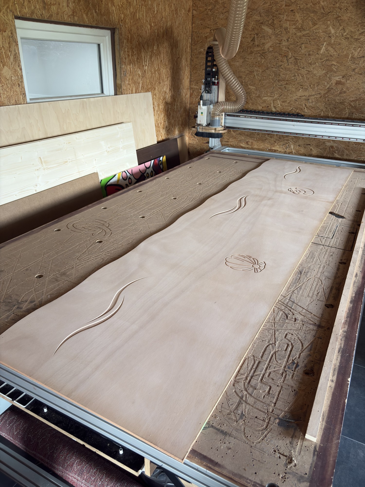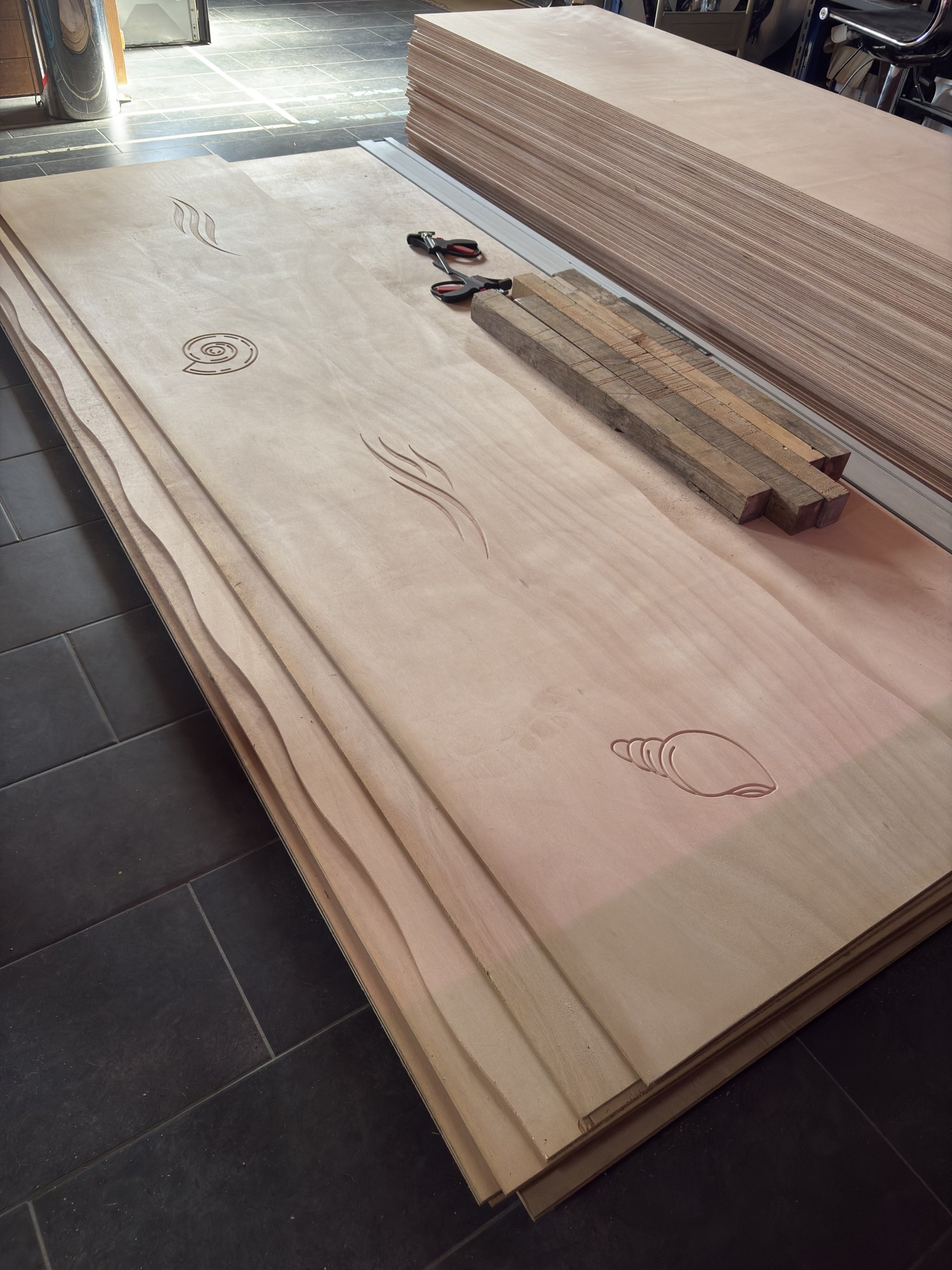 Oui, du contreplaqué pour être exacte. Le but de cette fabrication est double, décorer les murs d'une par et d'autre part les protéger de chocs éventuels. C'est pourquoi nous avons choisi du contreplaqué. Simple d'usinage tout en restant très solide.