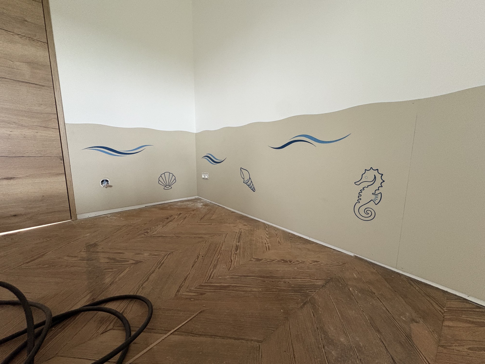 Nous avons donc ensuite fait le choix de rajouter tout ce qui peut se rapprocher au thème de l'eau. Toutes sortes de poissons, des hippocampes et des coquillages.