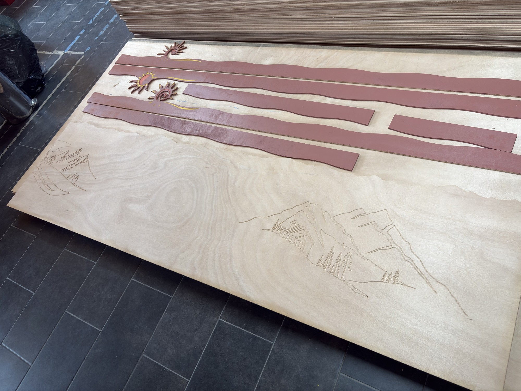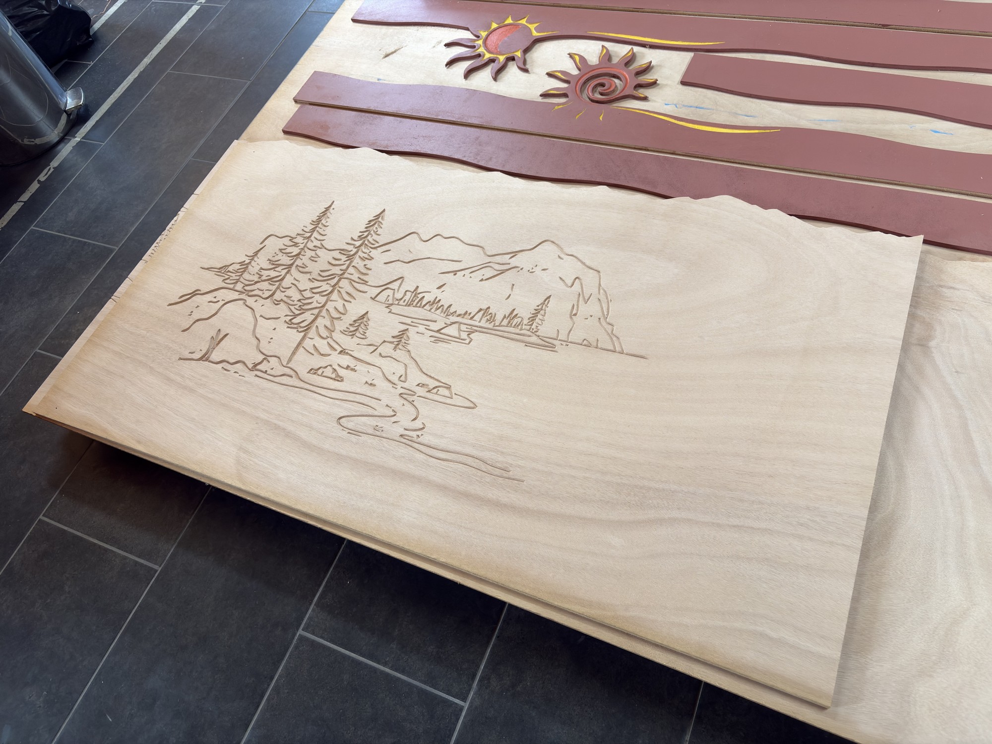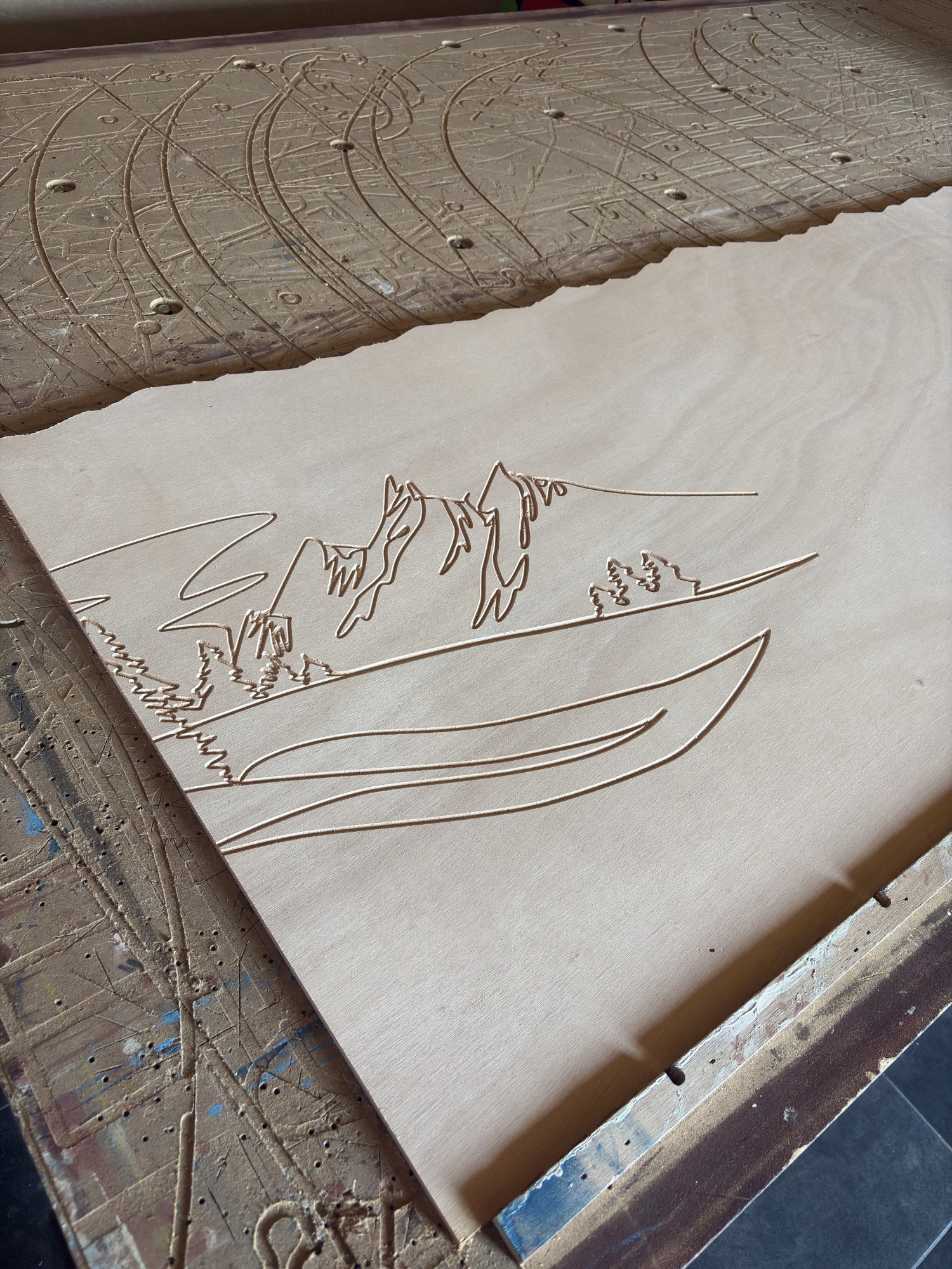 Comme vous pouvez le voir, nous sommes devenues experts en gravure CNC (fraiseuse à commande numérique) sur bois. Notre machine professionnelle est un très gros investissement que nous rentabilisons aisément grâce à ses capacités d'usinages précis et puissants.