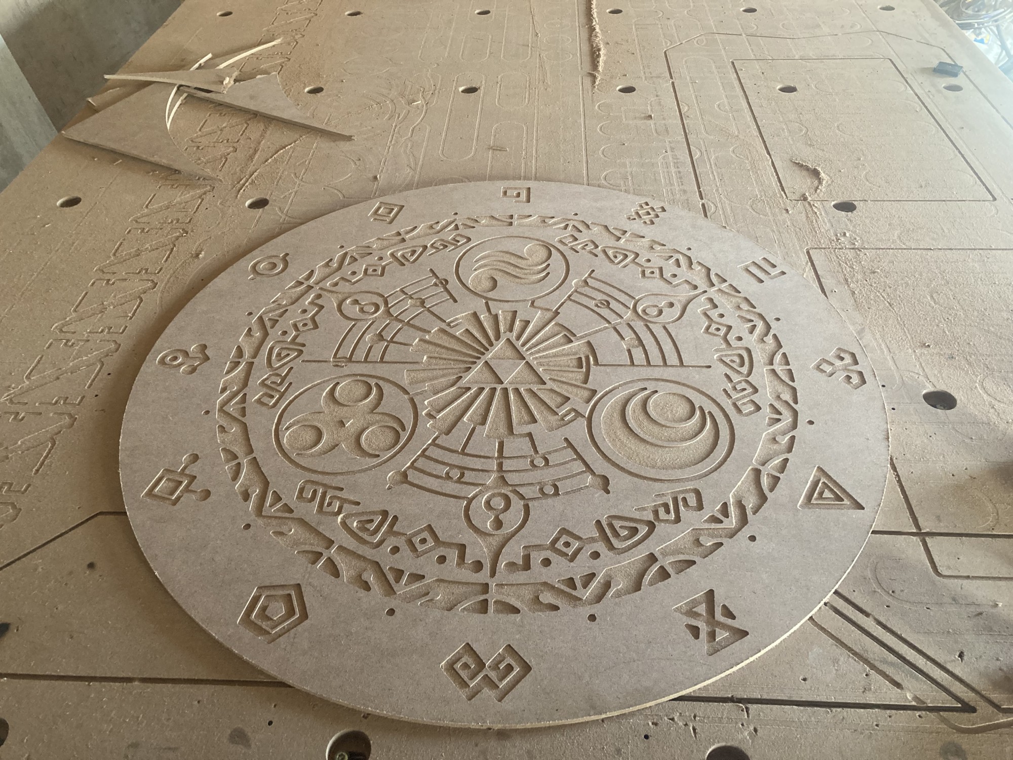 Fait en Médium (MDF), ce logo Zelda géant en est une véritable preuve. De la Triforce aux imitations celtiques, en passant par les notes de musique, les moindres détails y sont retranscrits à la perfection dans le bois.