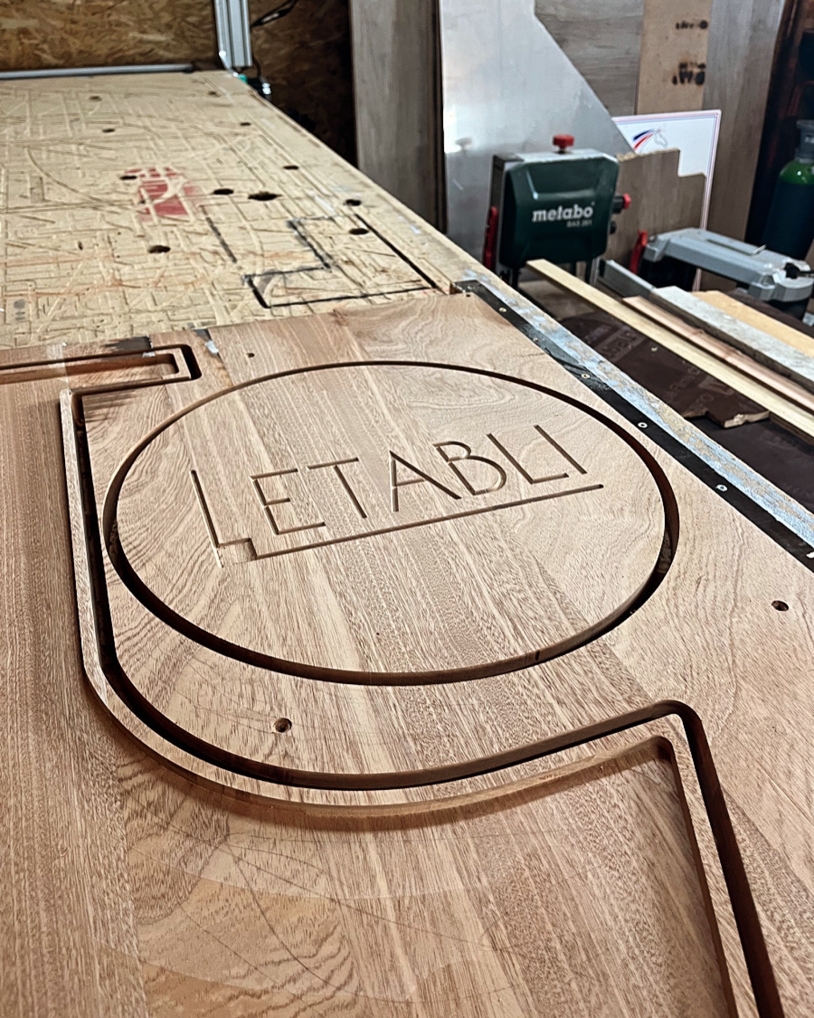 Le second logo, dans un morceau de Sapelli, c'est celui de l'Etabli de l'Atelier 50, évidemment.