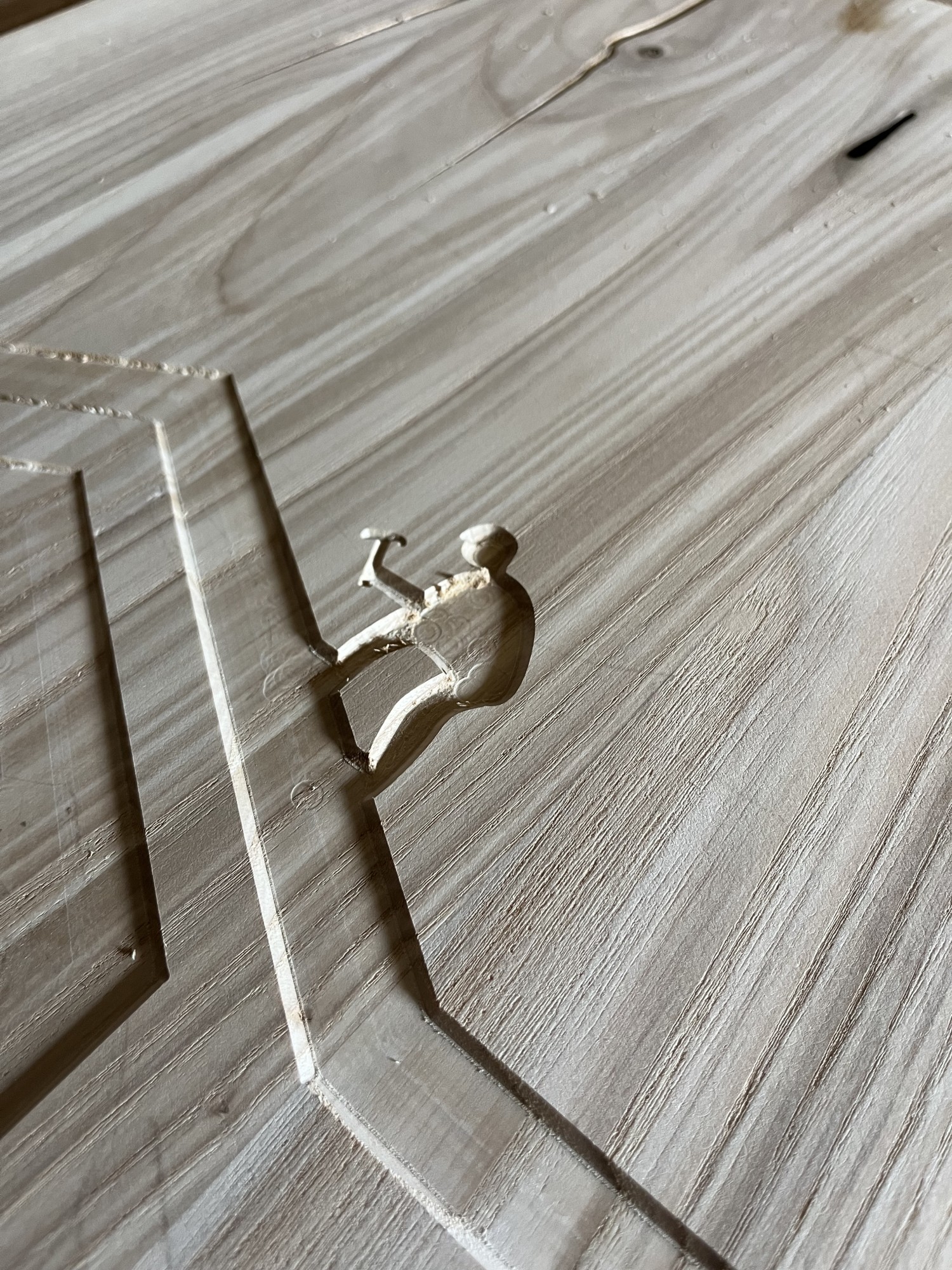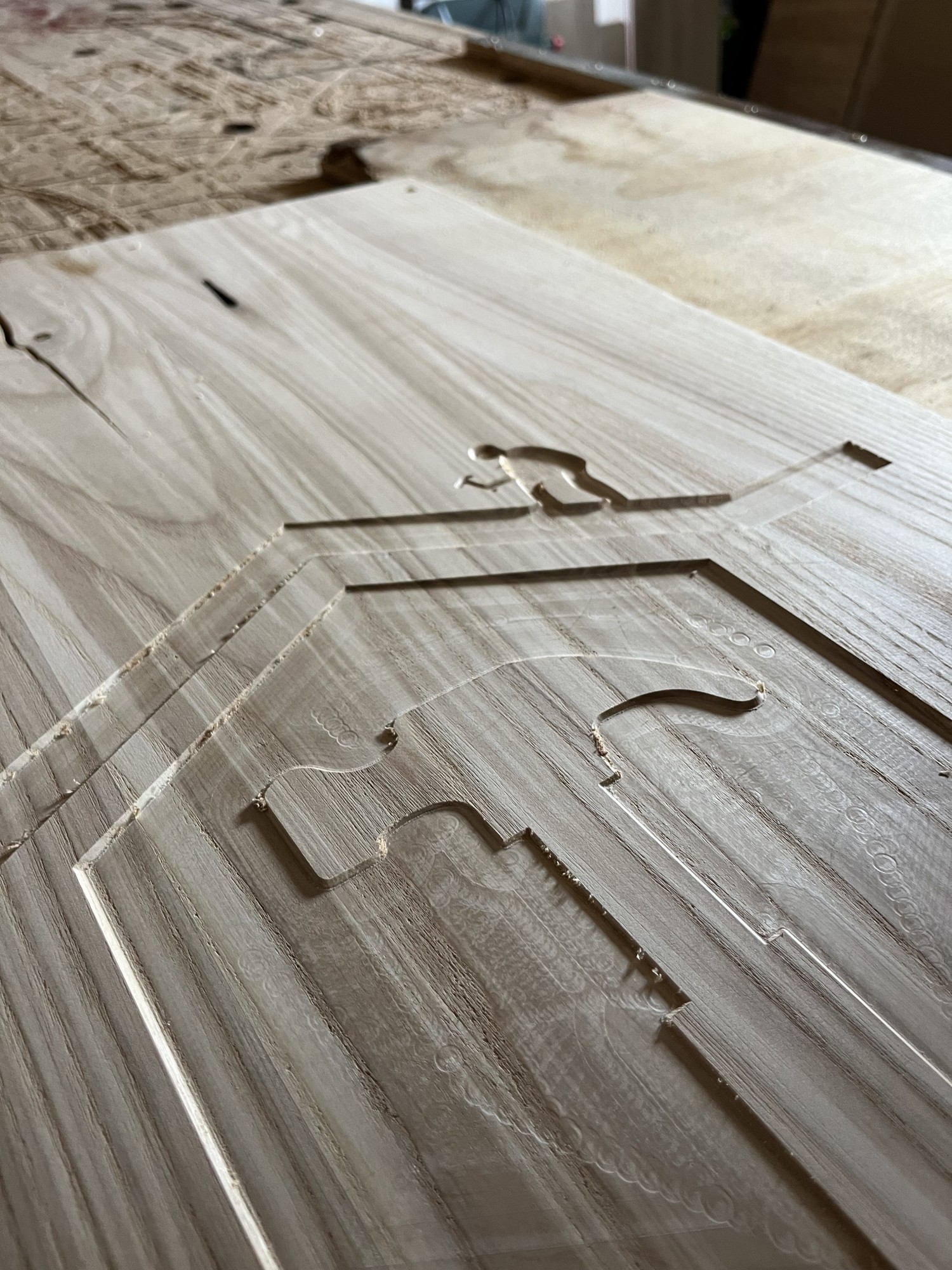 La plus efficace, consiste à utiliser une fraise droite et de simplement couper perpendiculairement notre planche. De cette manière, nous arrivons à créer des lettres et dessins simplement et rapidement. Les noms d'animaux que nous avons réalisés en sont l'exemple parfait.