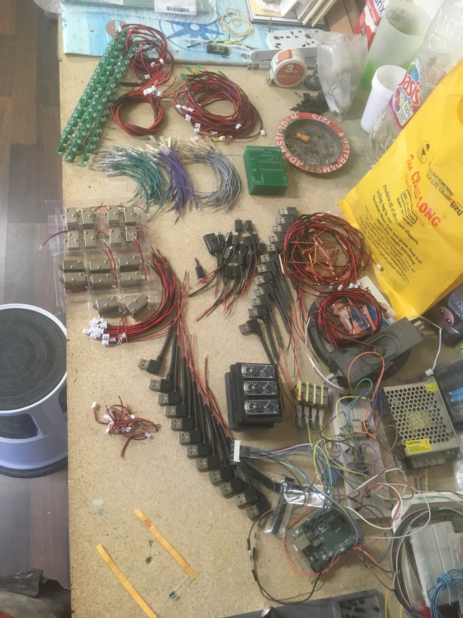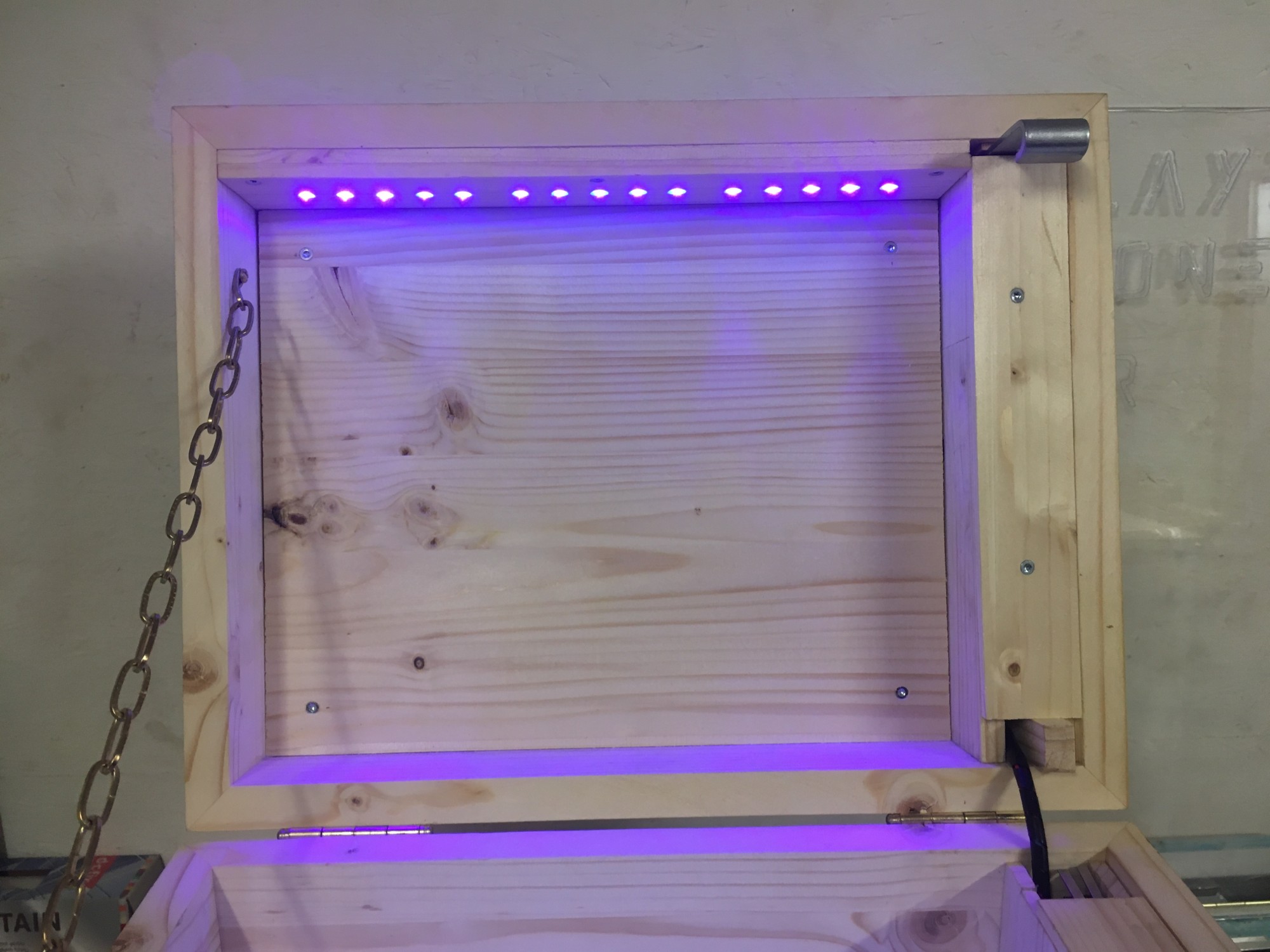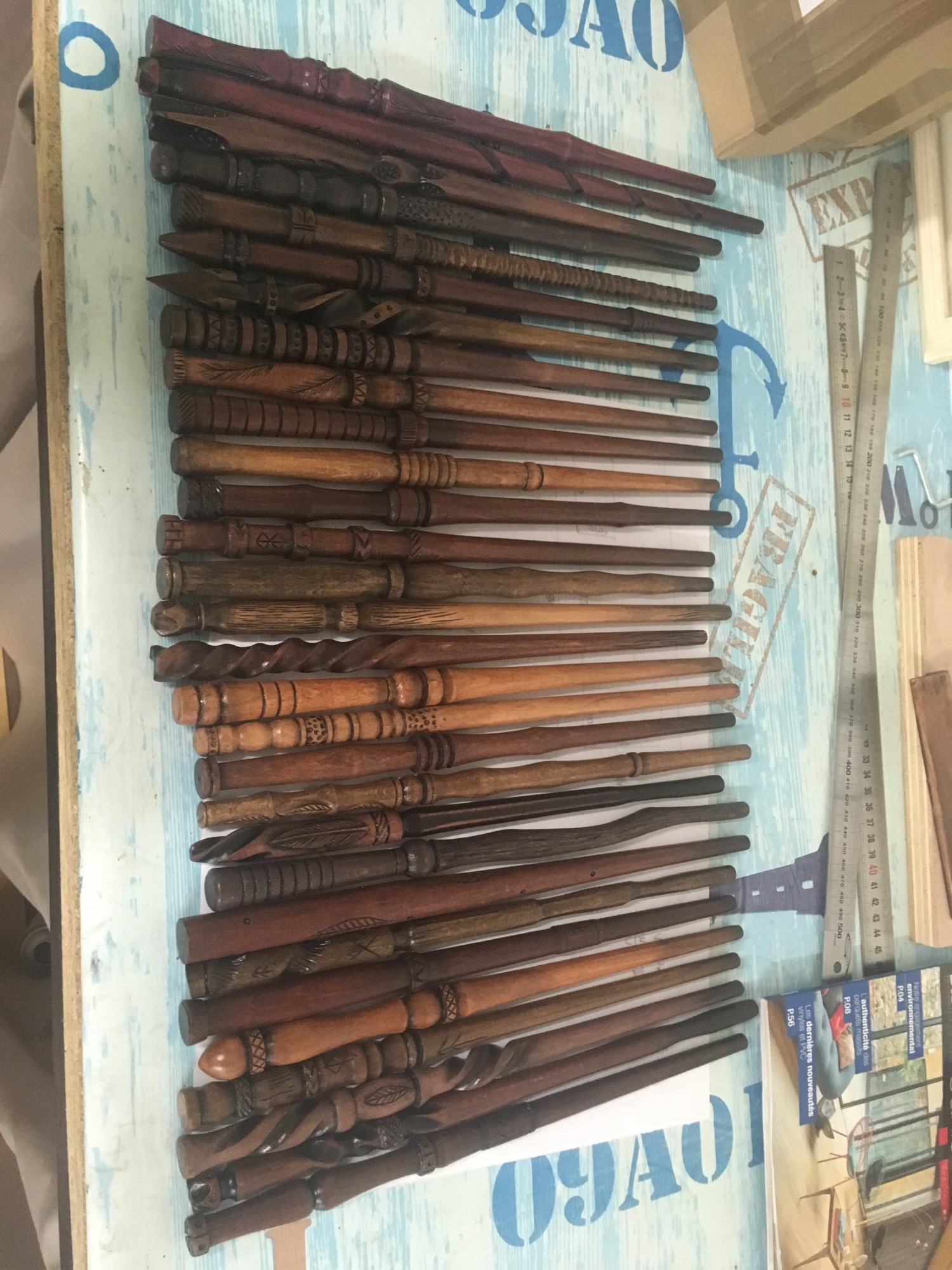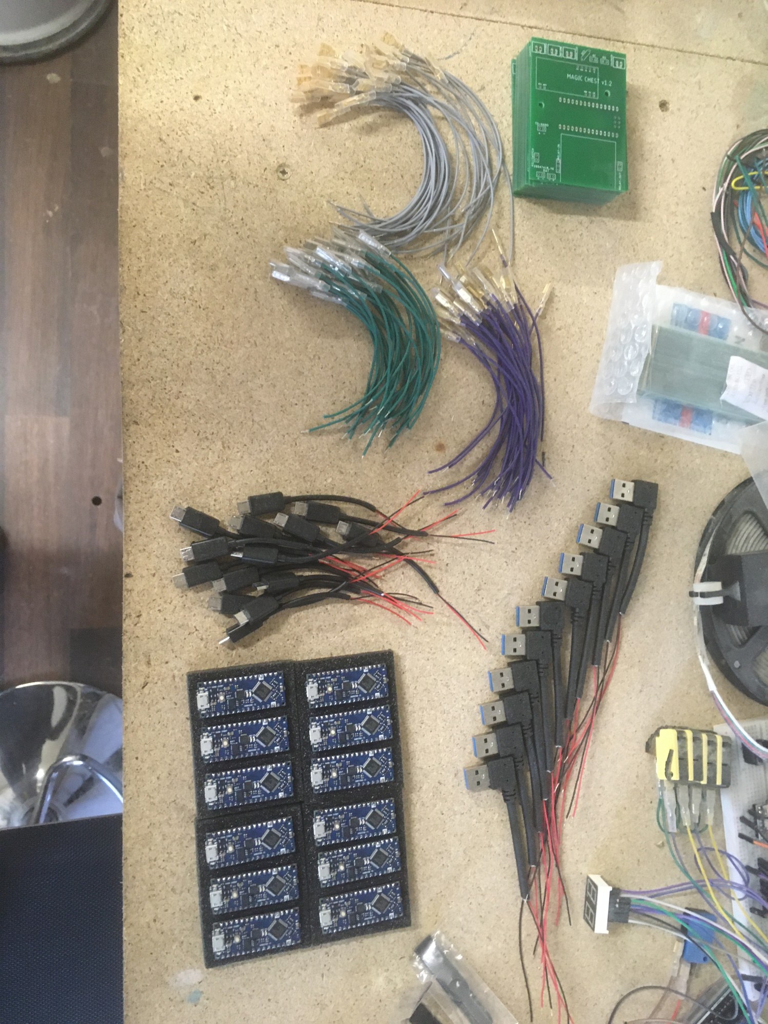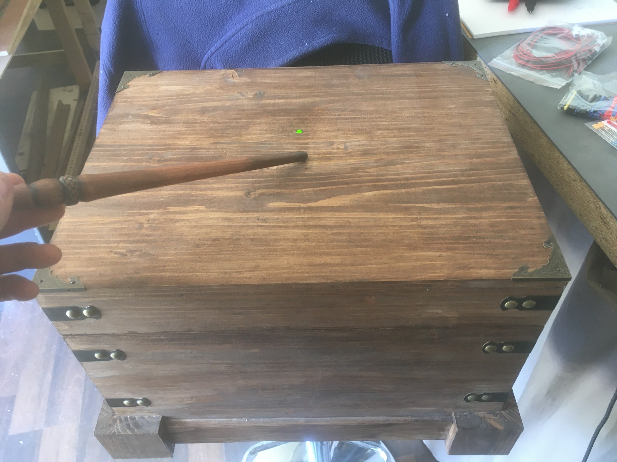 Ce n'est pas par ce que nous sommes menuisiers que nous n'y connaissons rien en informatique. Bien au contraire ! Nous avons programmé un arduino et fabriqué une carte électronique spécialement pour ces coffres. Des capteurs ont été installés à certains endroits du coffre et dans les baguettes. Des LED UV s'illuminent avec la bonne incantation !