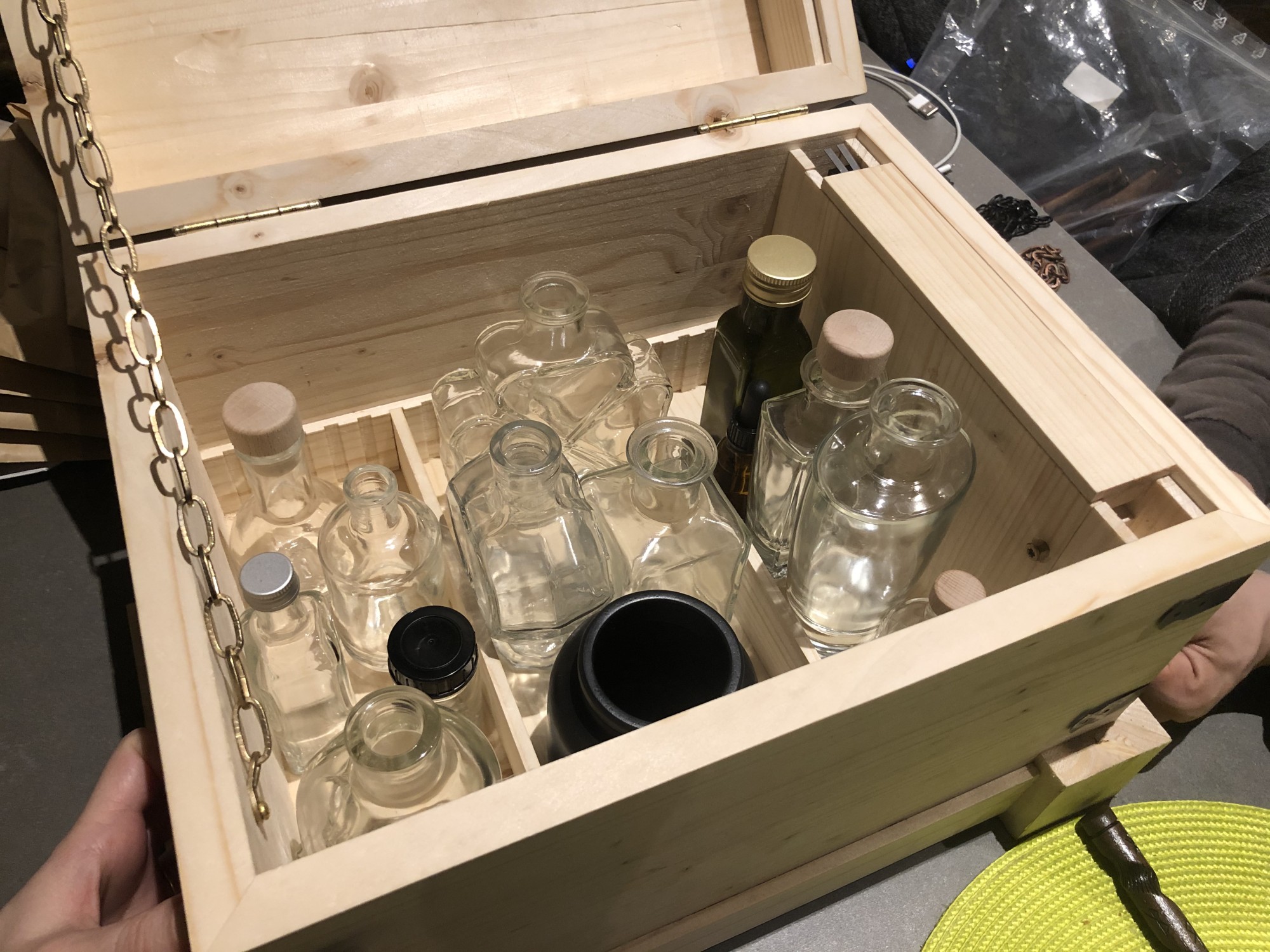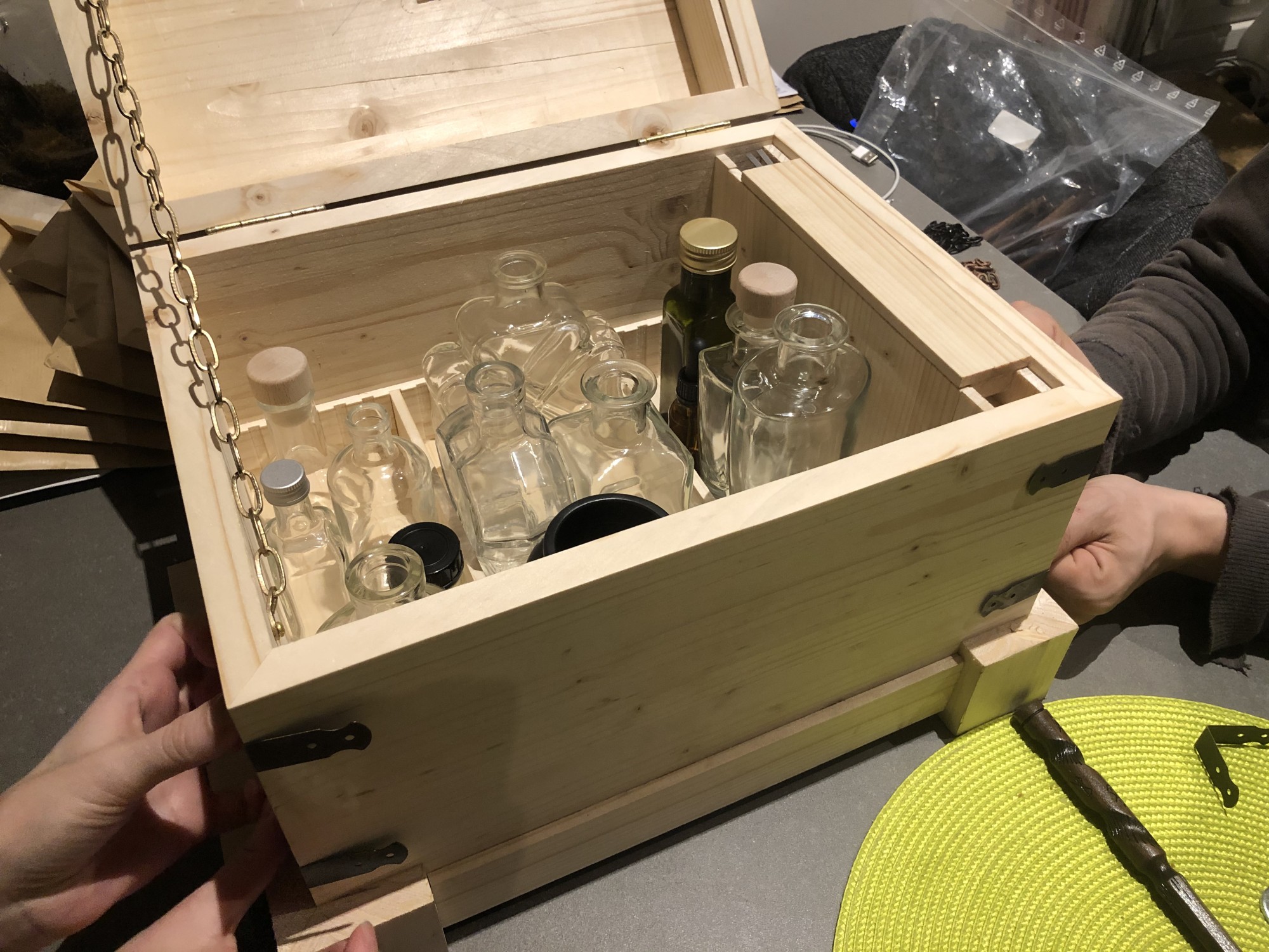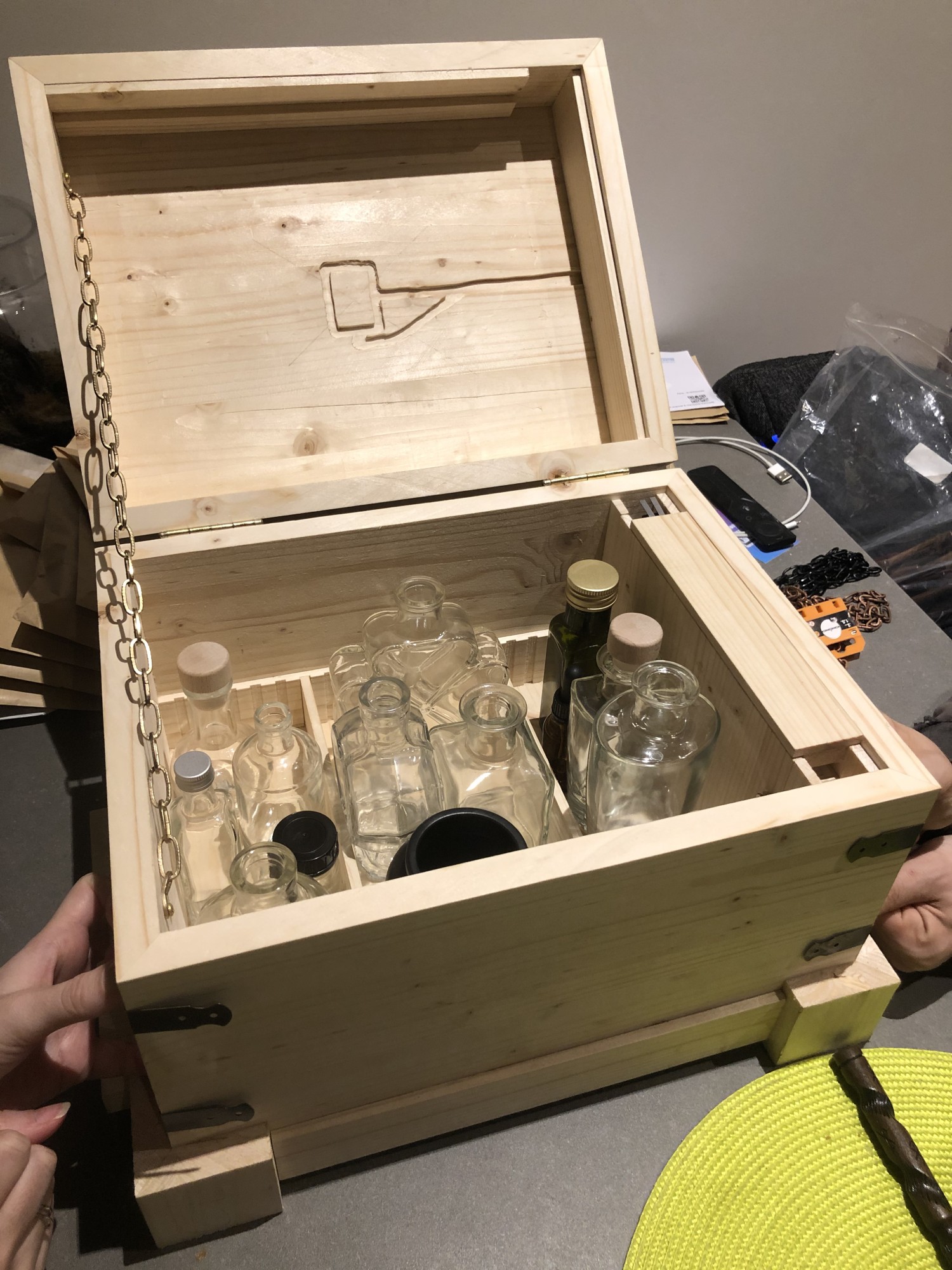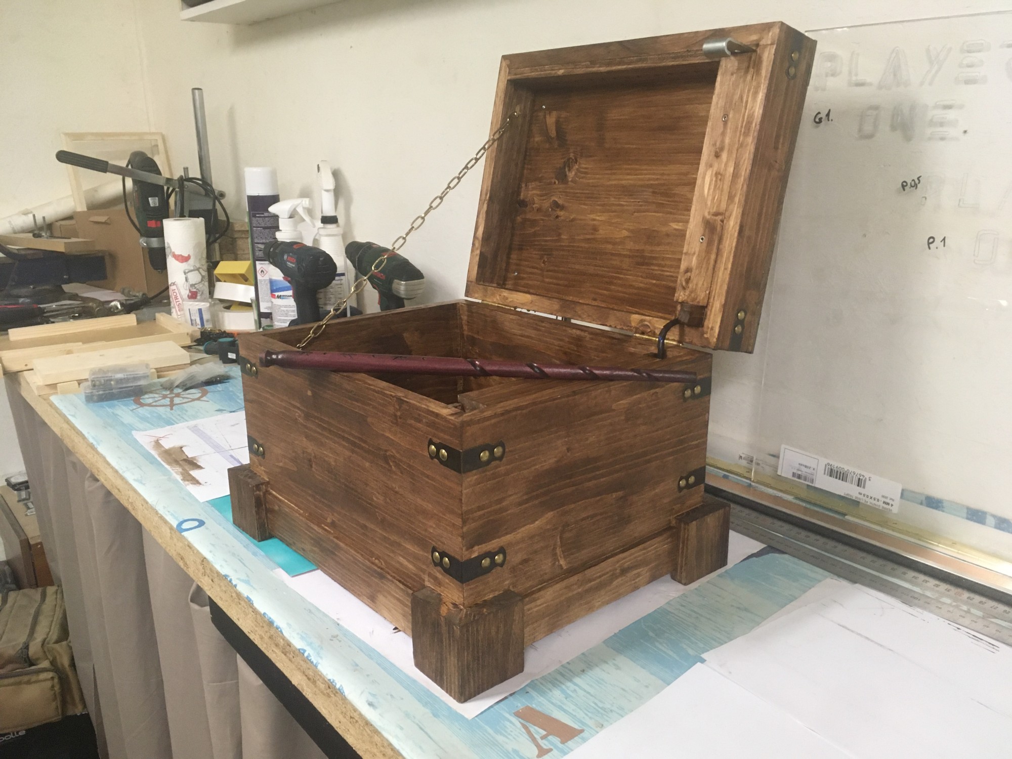 GLOUPY est fier d'avoir fabriqué un set de 10 coffres magiques pour le bar Player One Paris. Ce coffre ne s'ouvrira pas sans sa baguette magique et la bonne incantation !