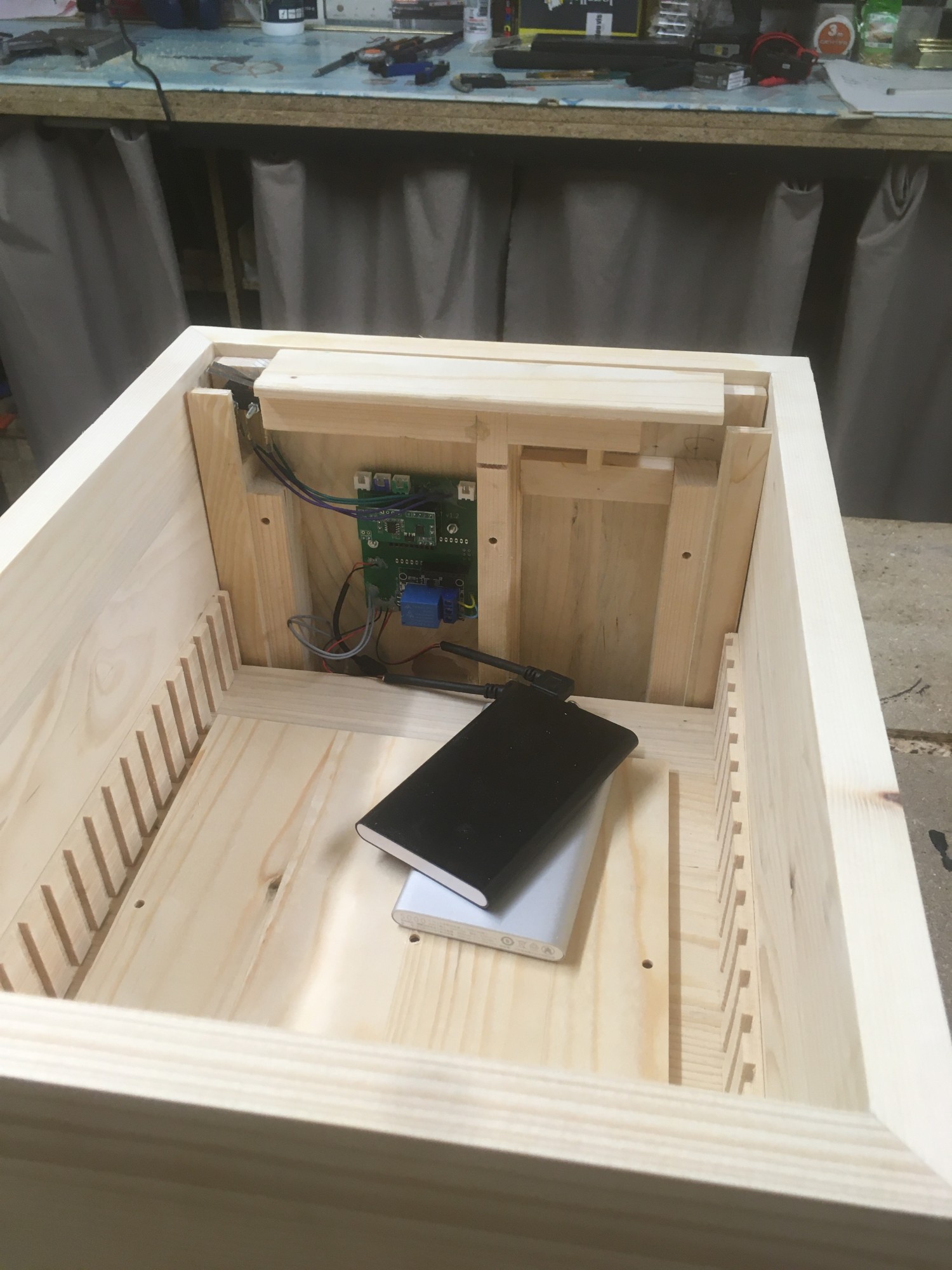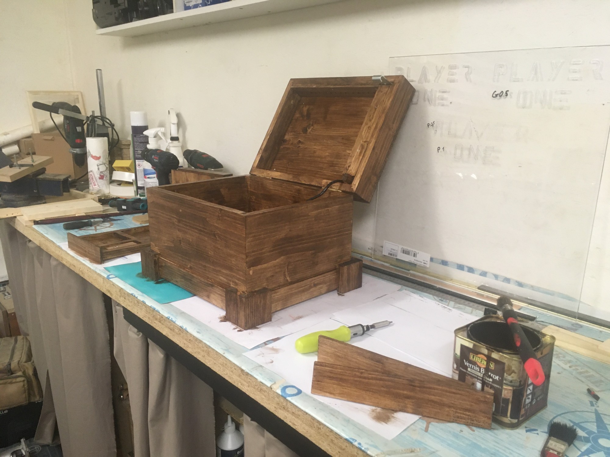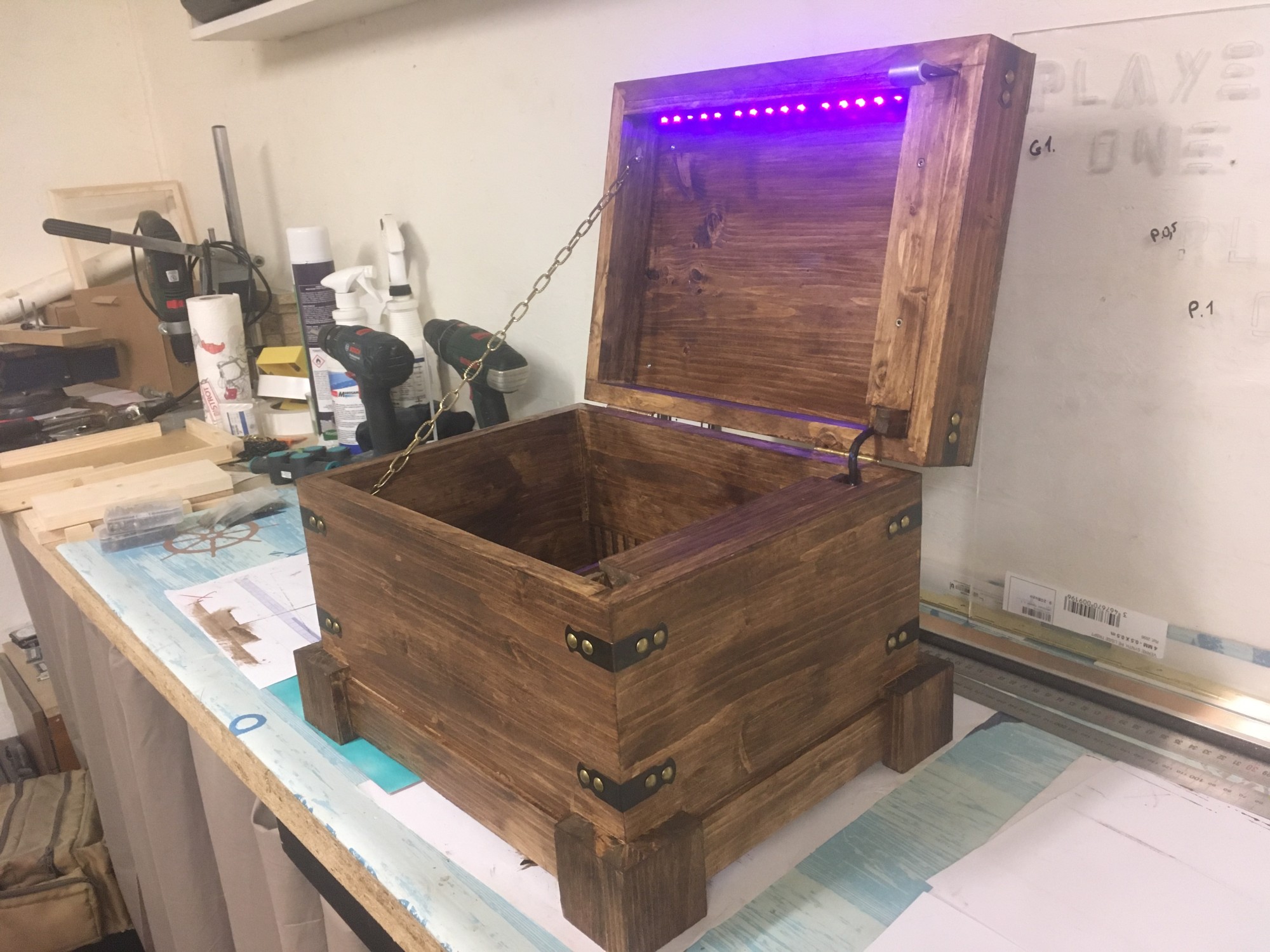 Tout à fait ! Il y a "geek" dans "menuisier geek", et nous avons utiliser la magie de l'électronique pour réaliser ce coffre !
