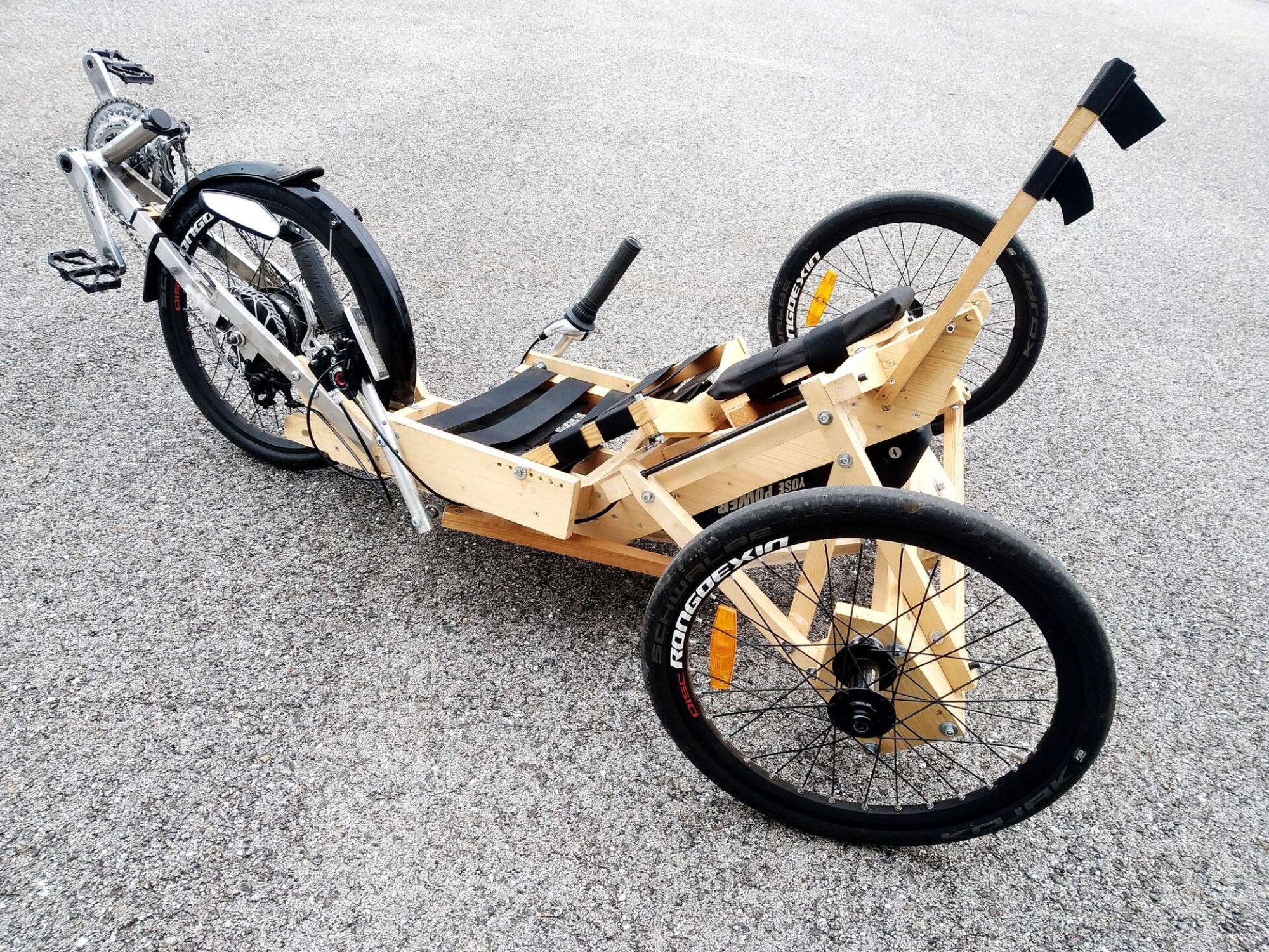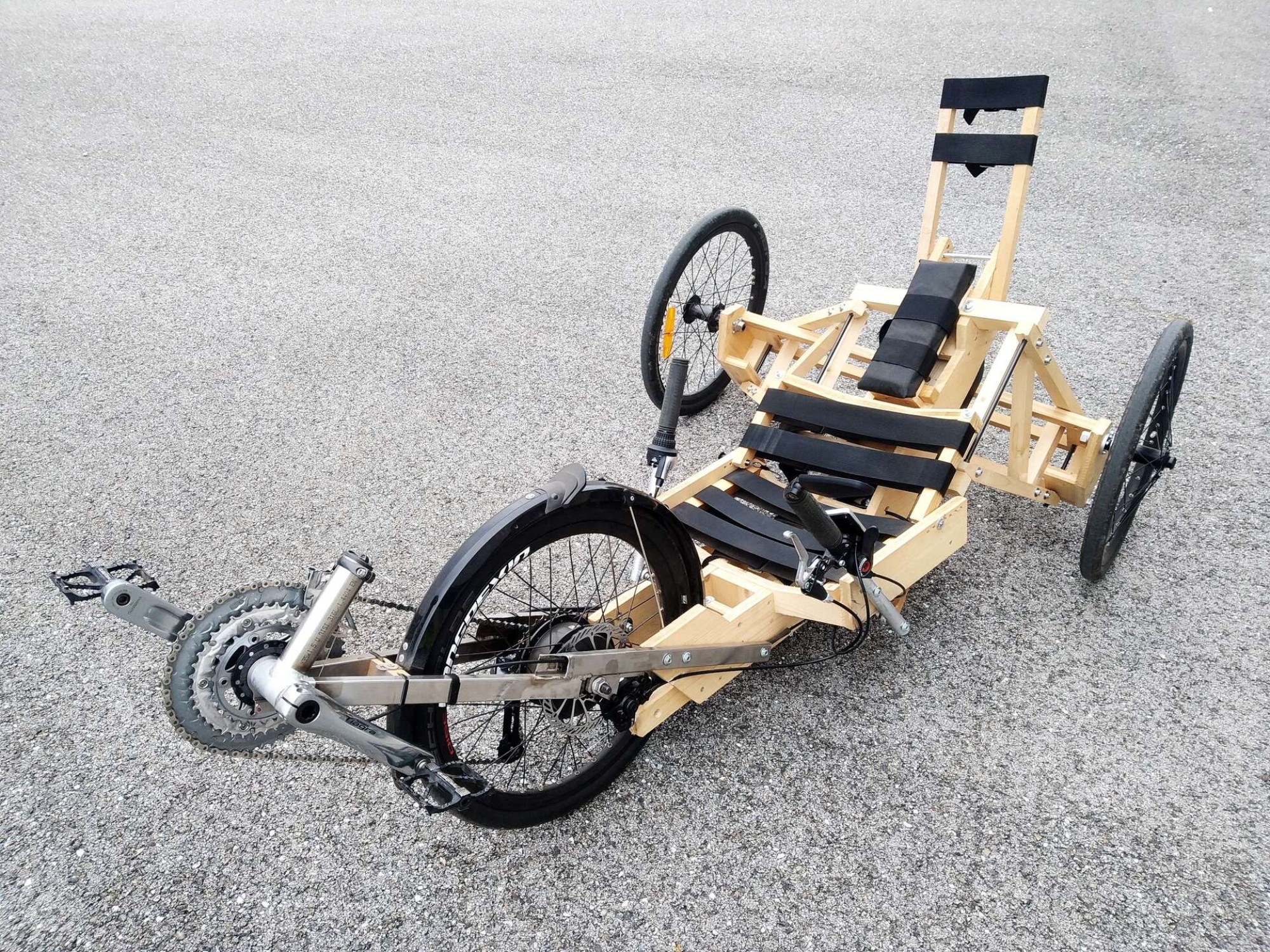 Il s'agit du trike en bois, confortable et abordable, à construire vous-même. Vous pourrez donc admirer le paysage qui défile, allongé comme sur une chaise longue ! Associé à une remorque de vélo, il transportera aisément vos bagages ou marchandises avec vous.