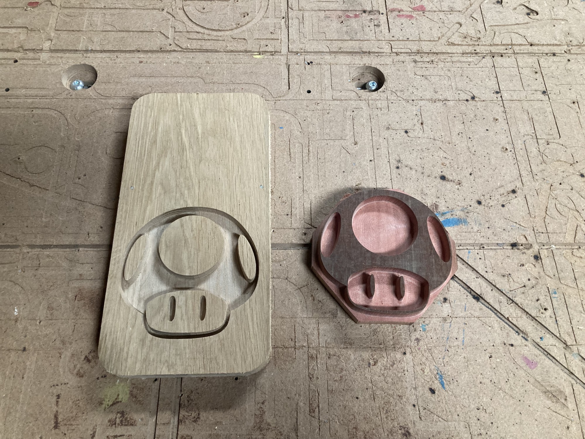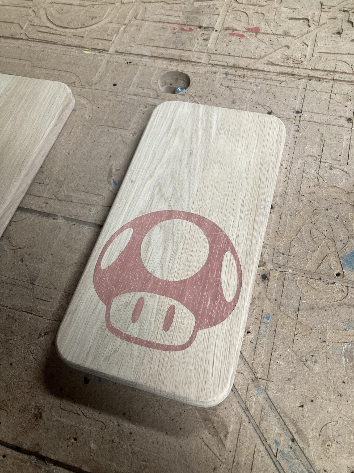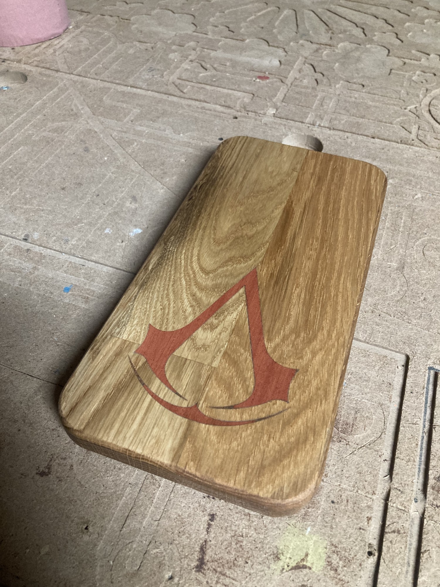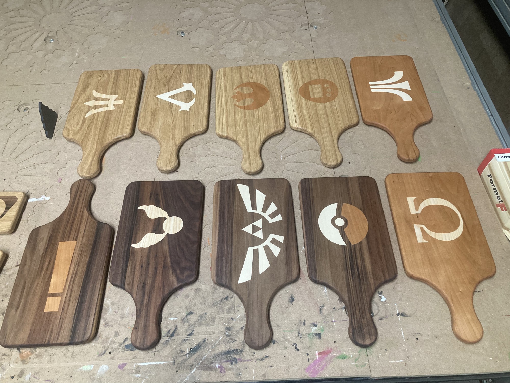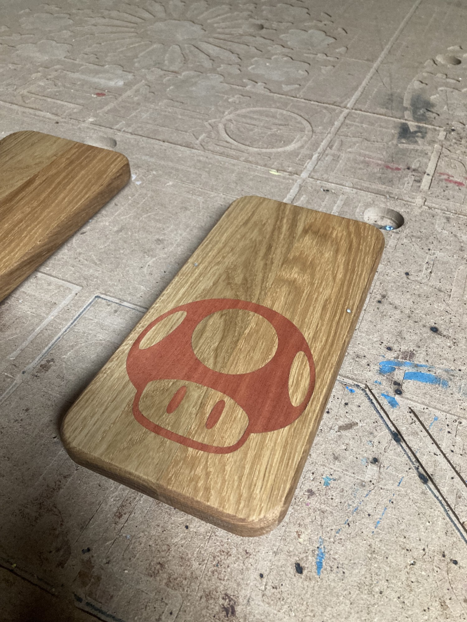 Chez GLOUPY, nous pouvons decouper du bois à la forme, meme pour des assemblages complexes comme ceux de nos planches à decouper pour le bar Player One.