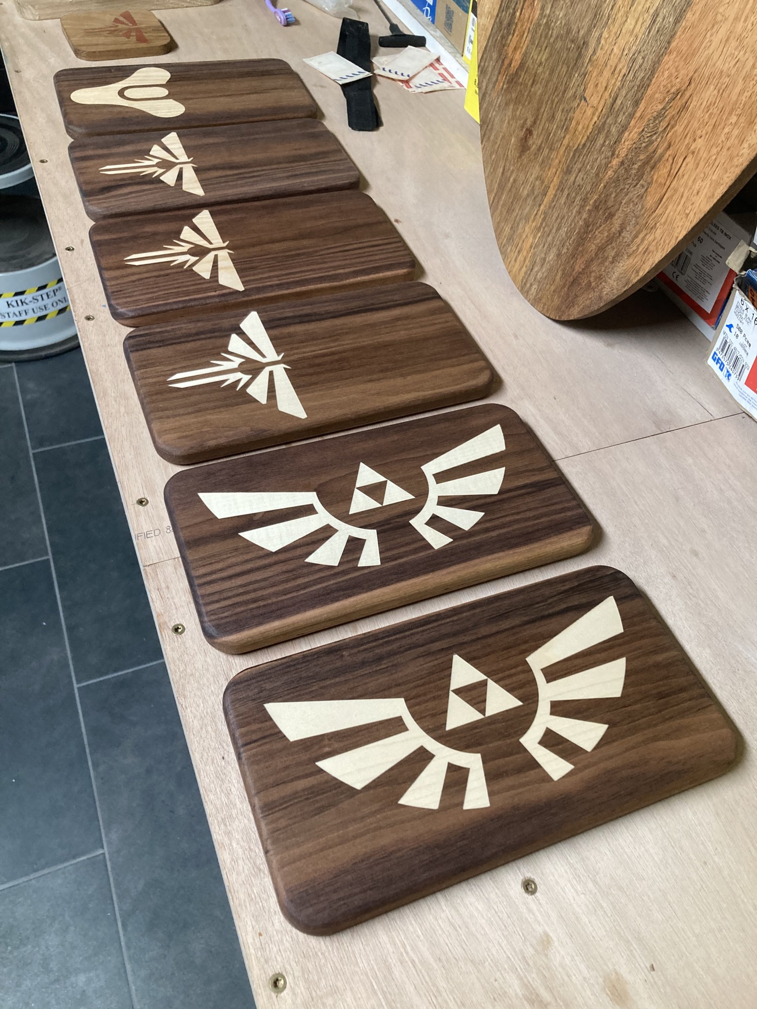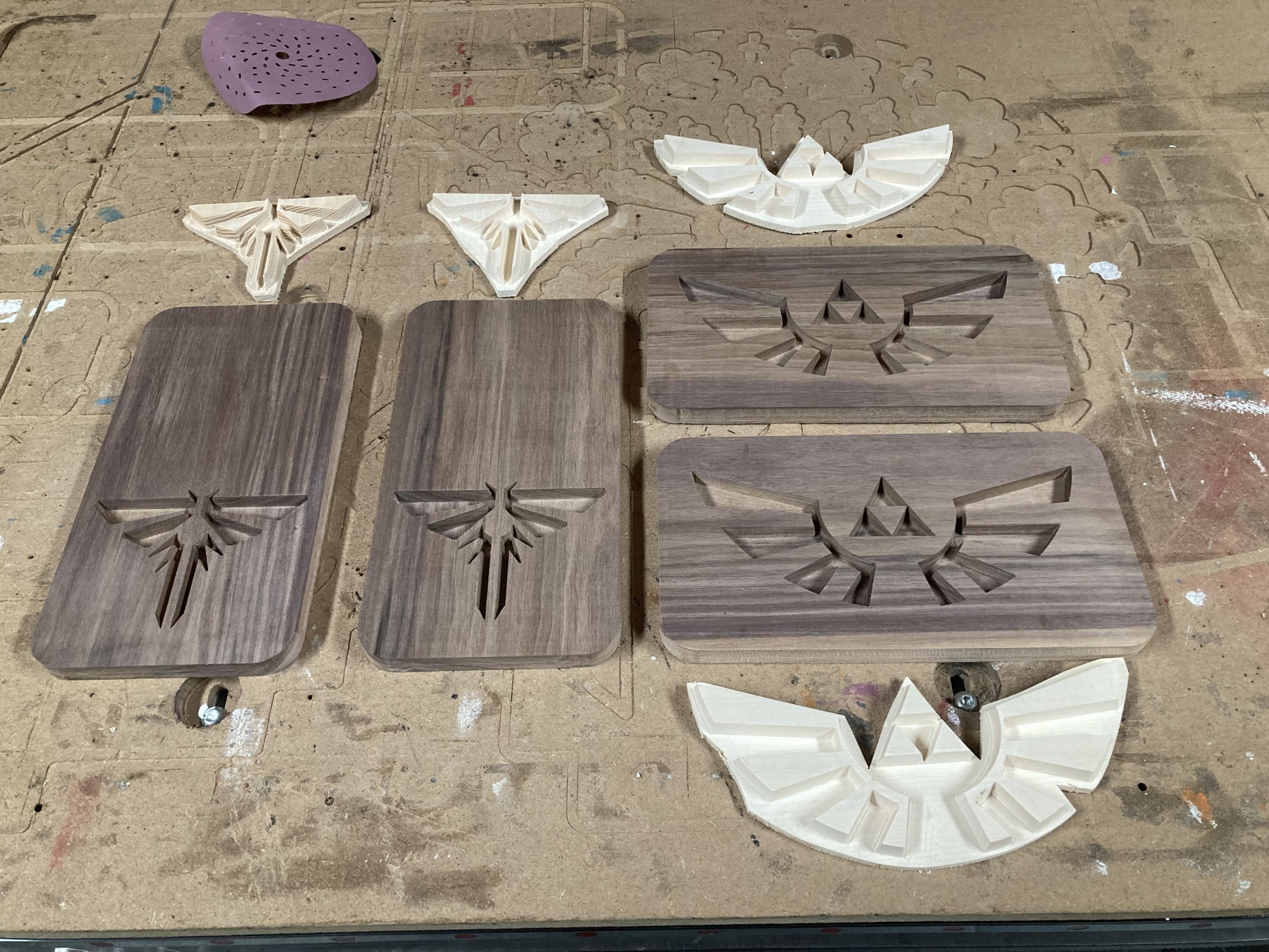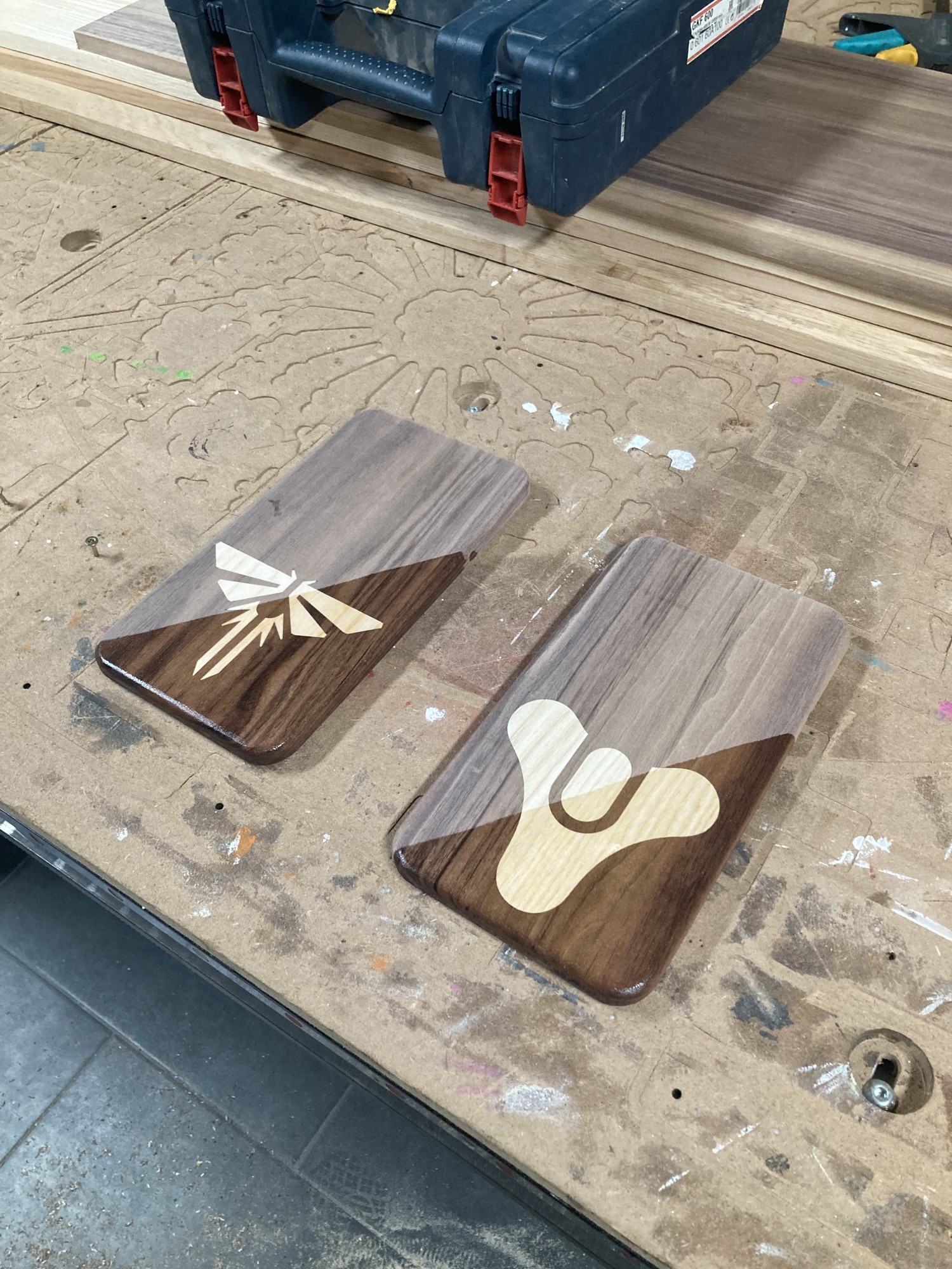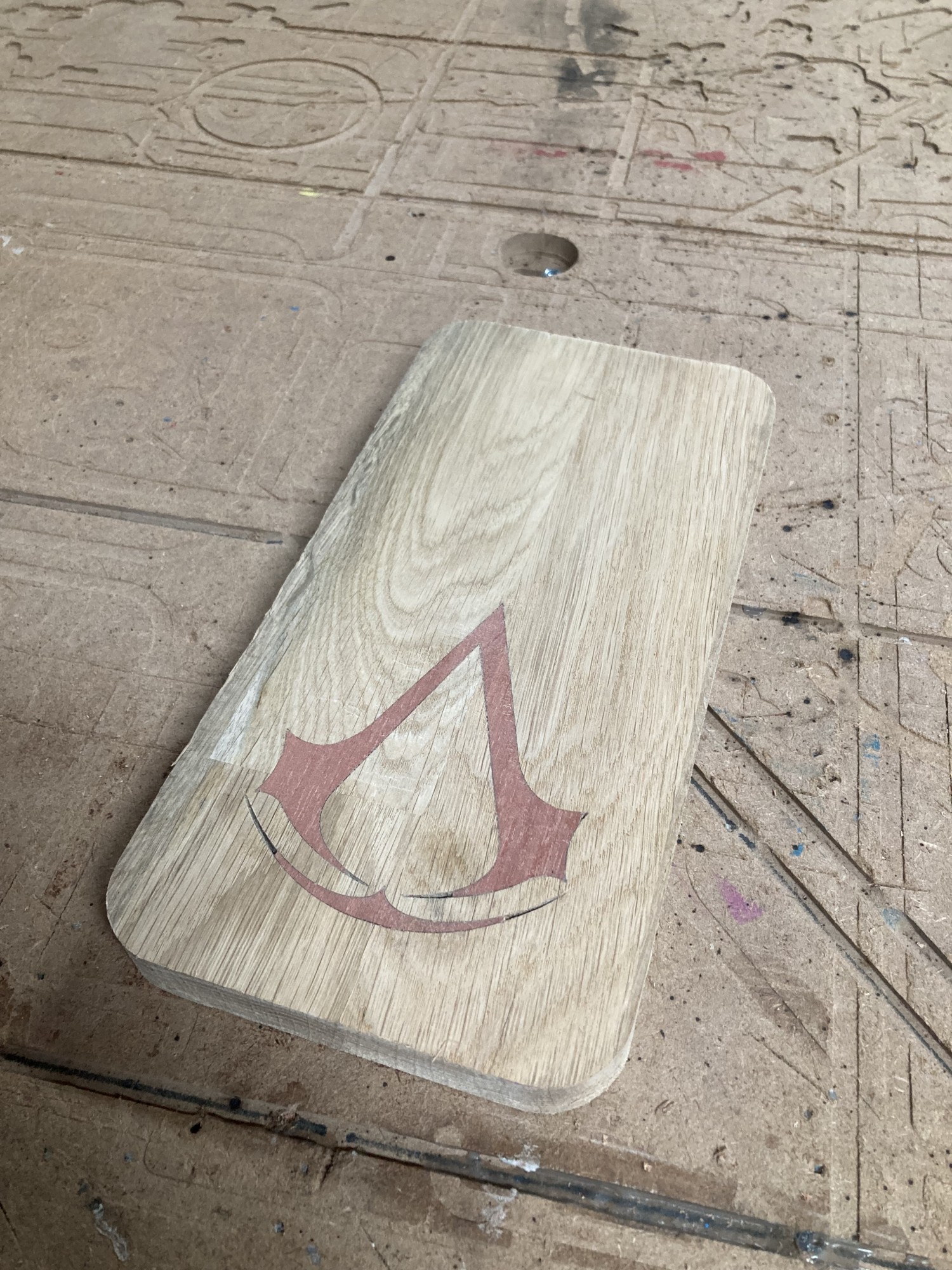 Chez GLOUPY, nous pouvons decouper du bois à la forme, meme pour des assemblages complexes comme ceux de nos planches à decouper pour le bar Player One.