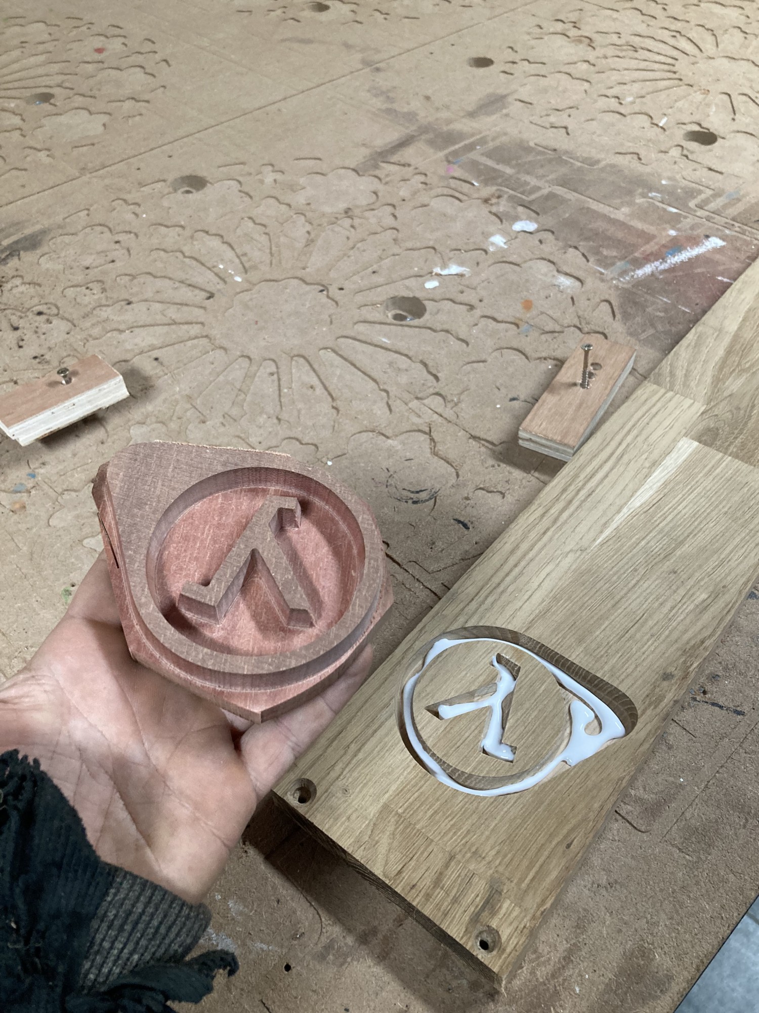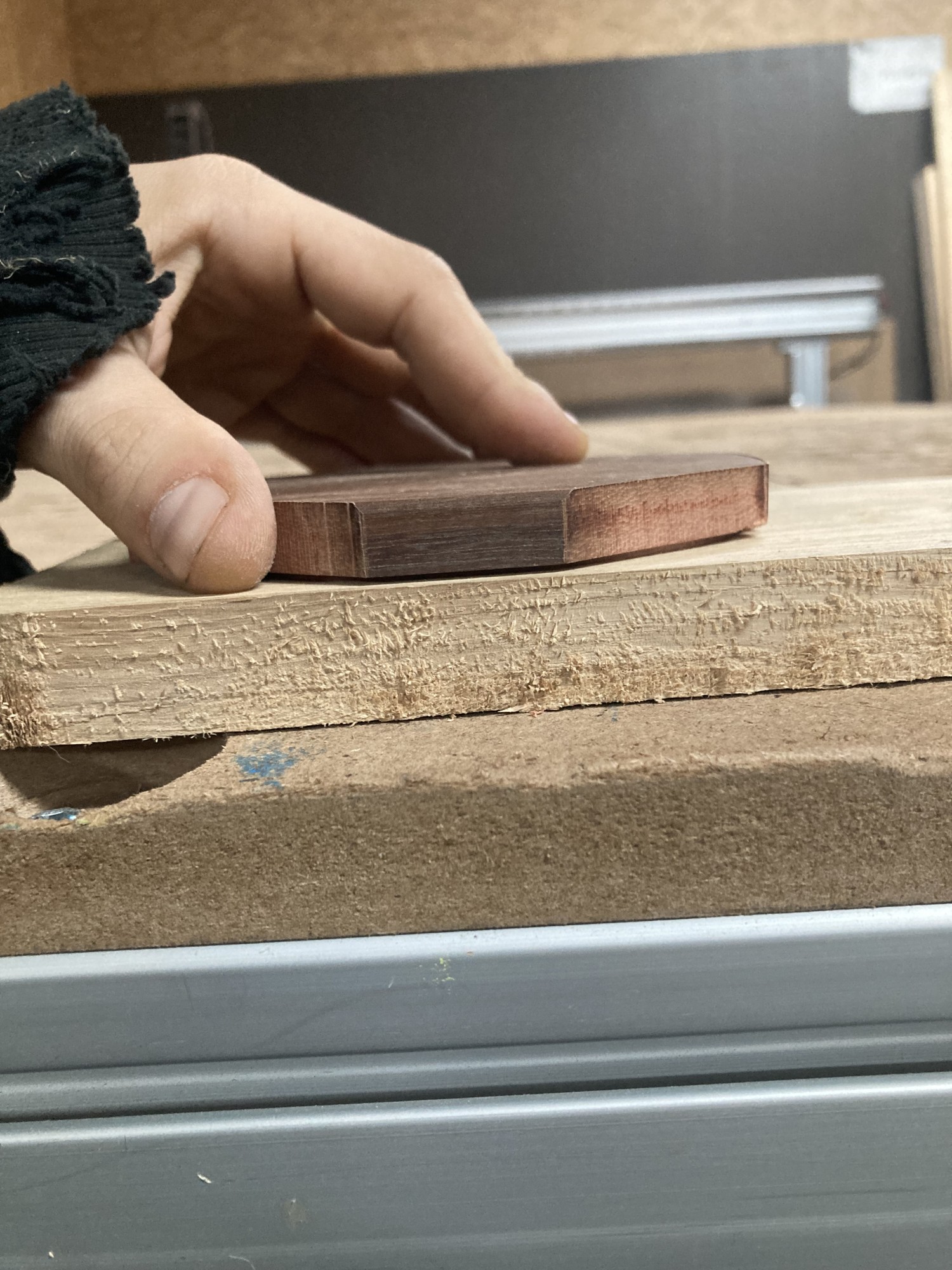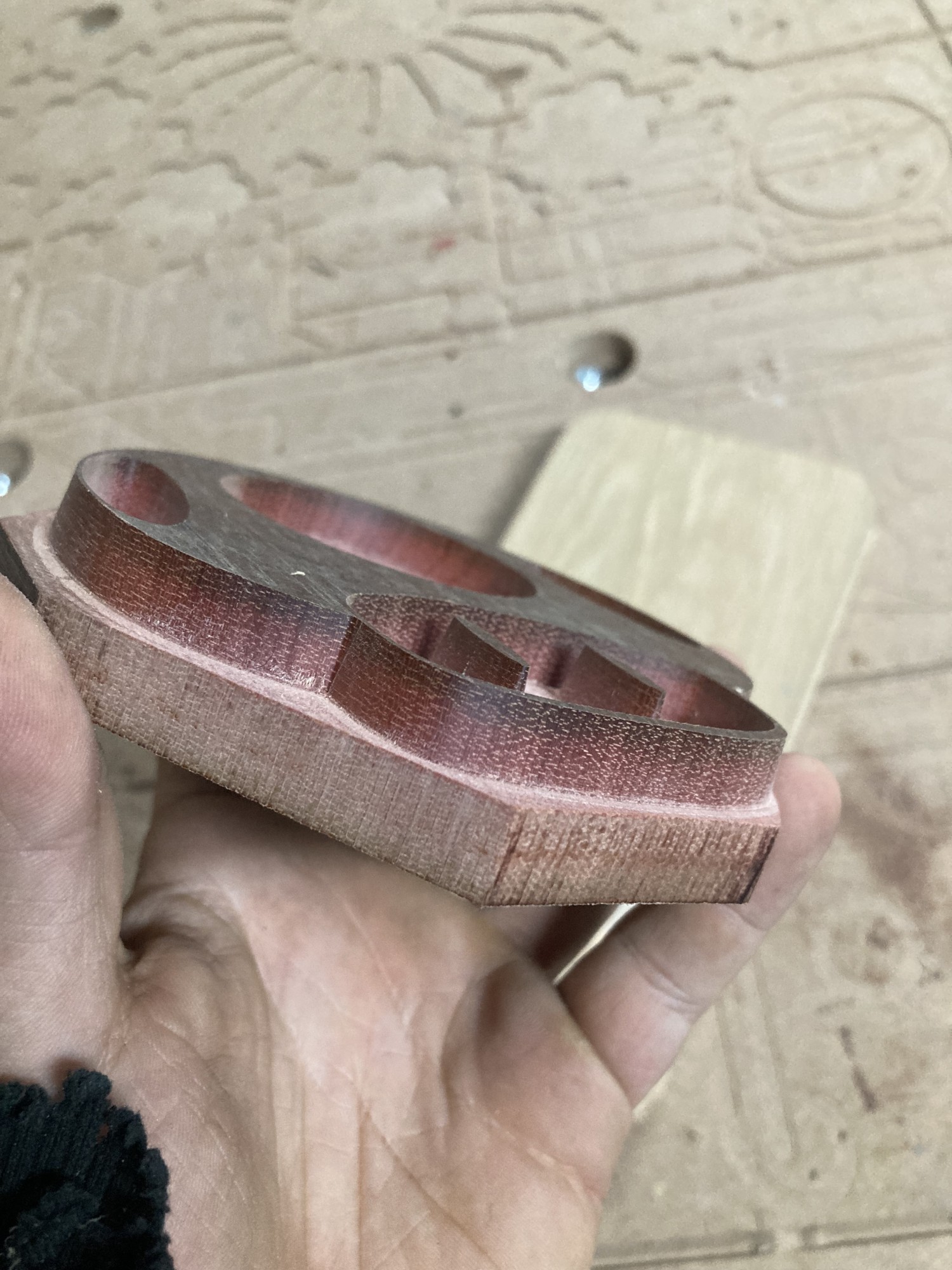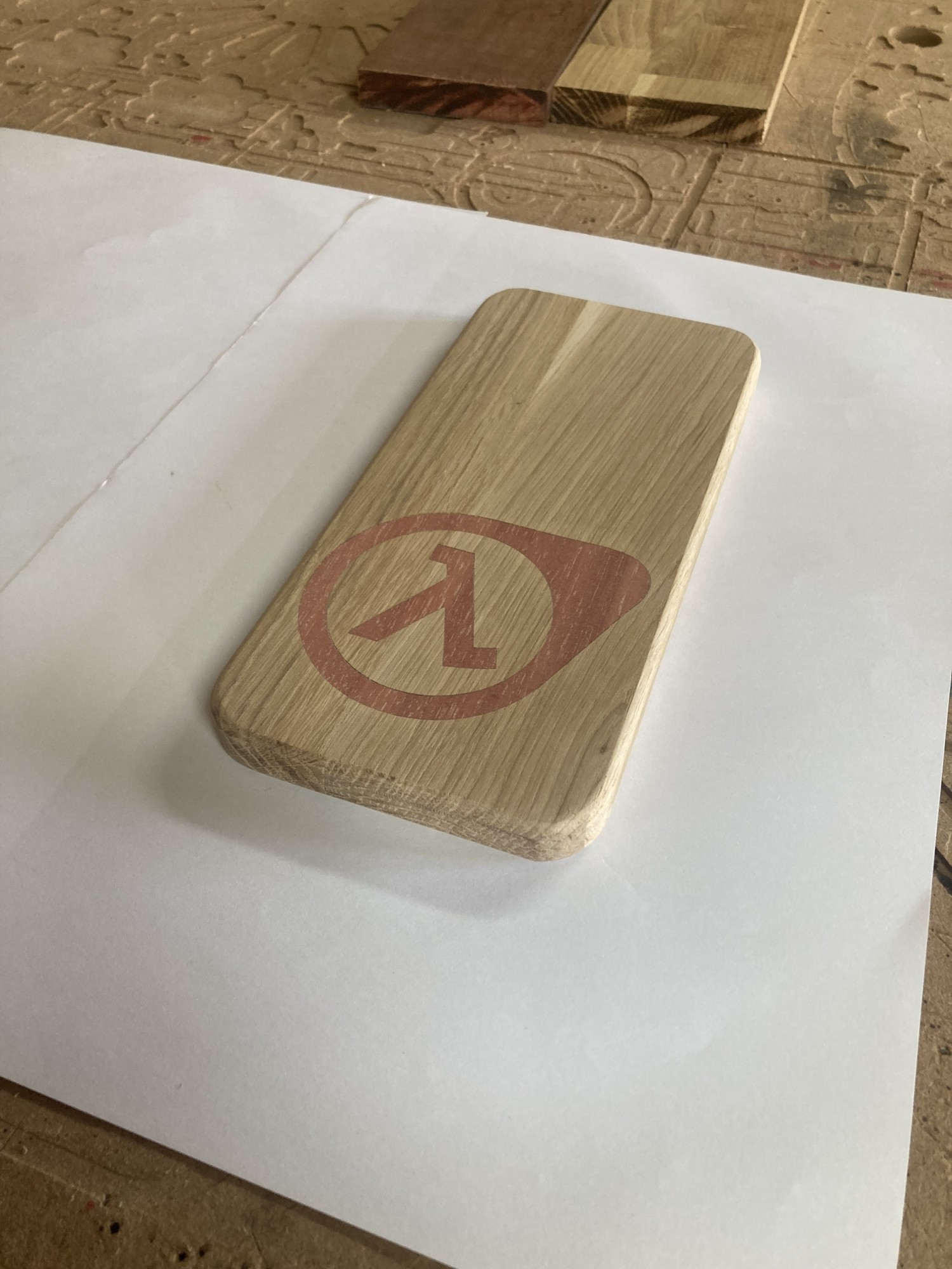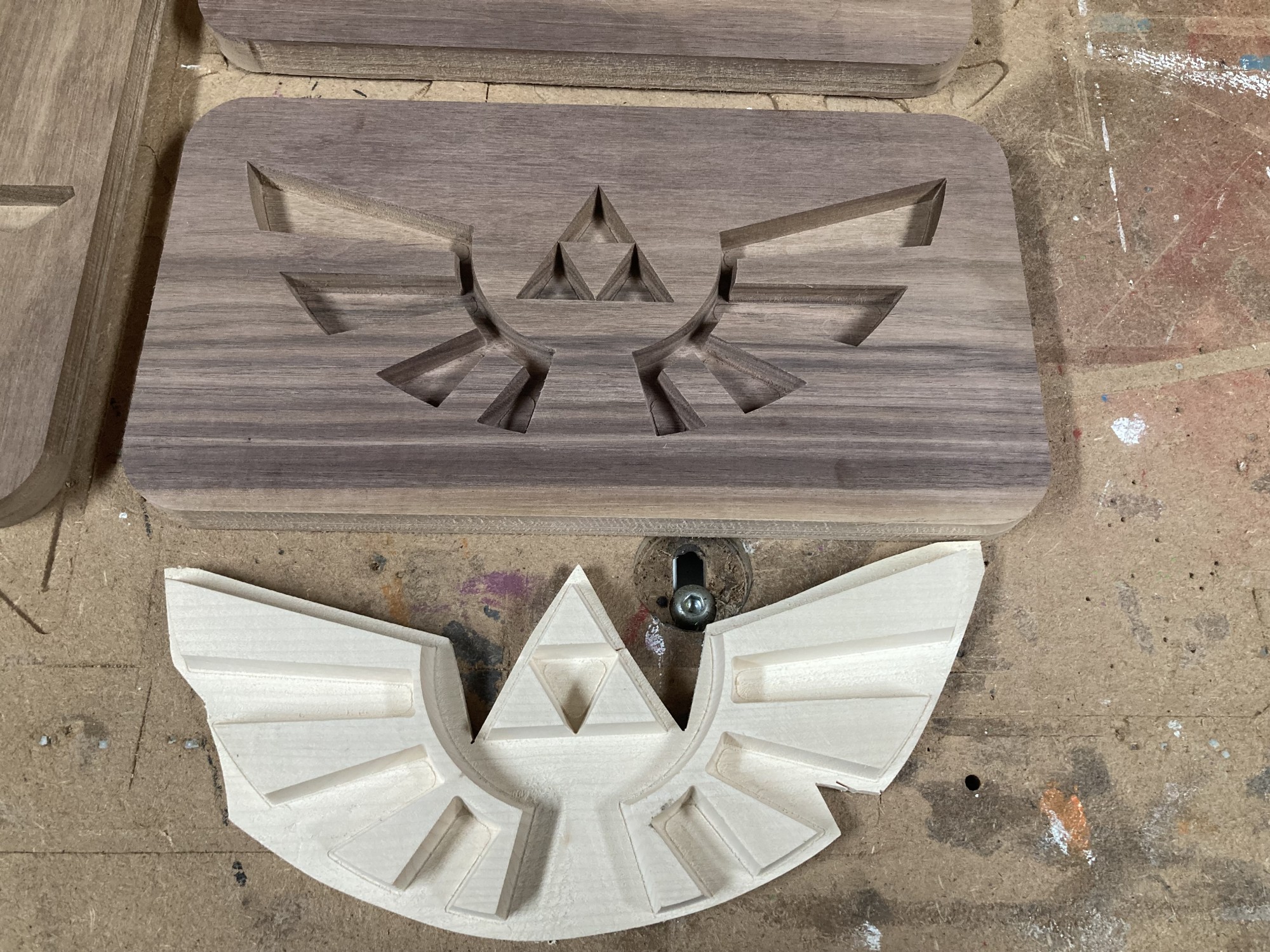 Chez GLOUPY, nous pouvons decouper du bois à la forme, meme pour des assemblages complexes comme ceux de nos planches à decouper pour le bar Player One.