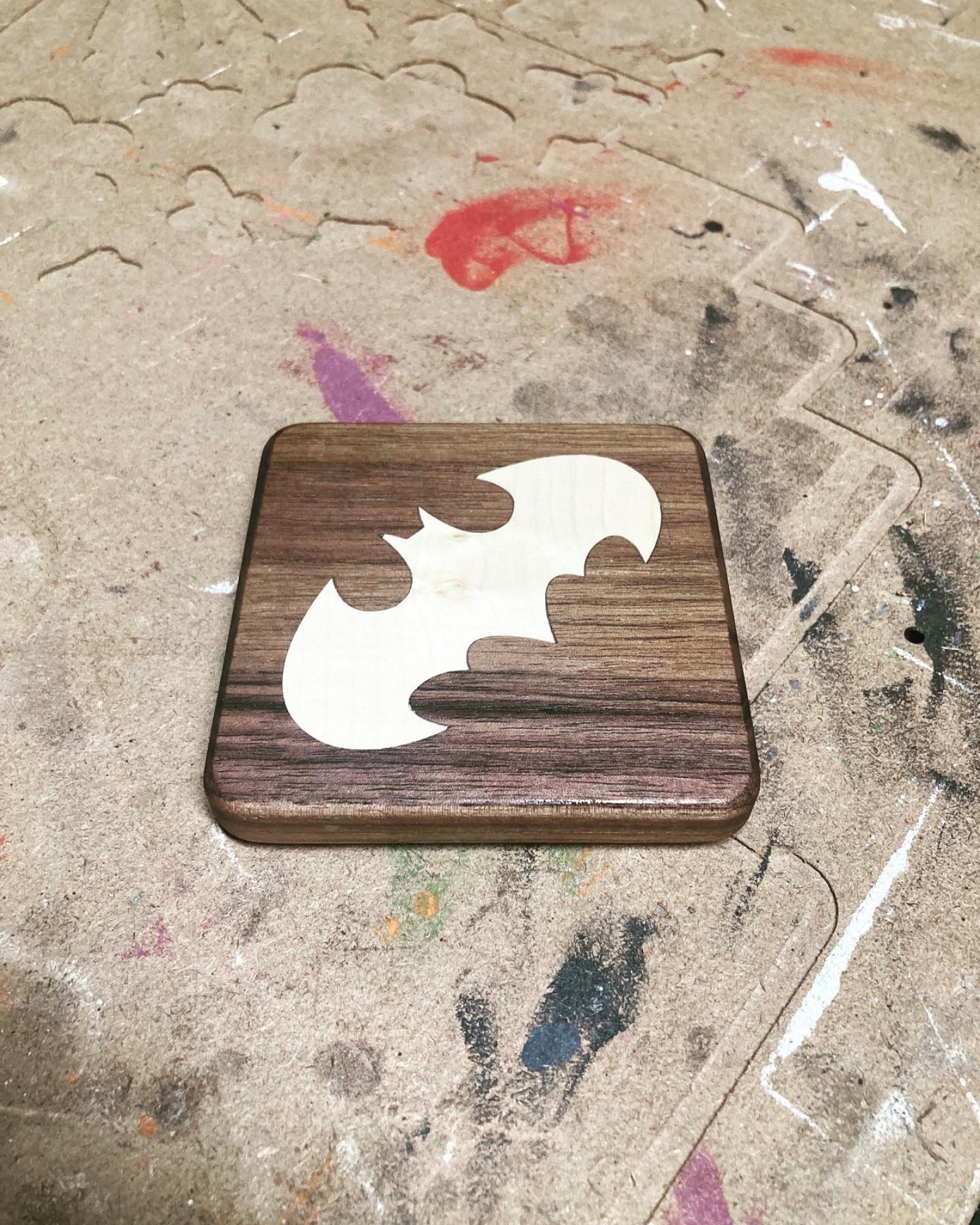 Selectionner les dessins, idealement en vectoriel, preparer le fichier machine, decouper le bois, coller les morceaux enssemble et c'est fini. Ou presque. Il reste ensuite à poncer les planches pour qu'elles soient douce au touché et huilager avec, evidement, une huile qui protege le bois mais est surtout préconisé pour un usage alimentaire.
