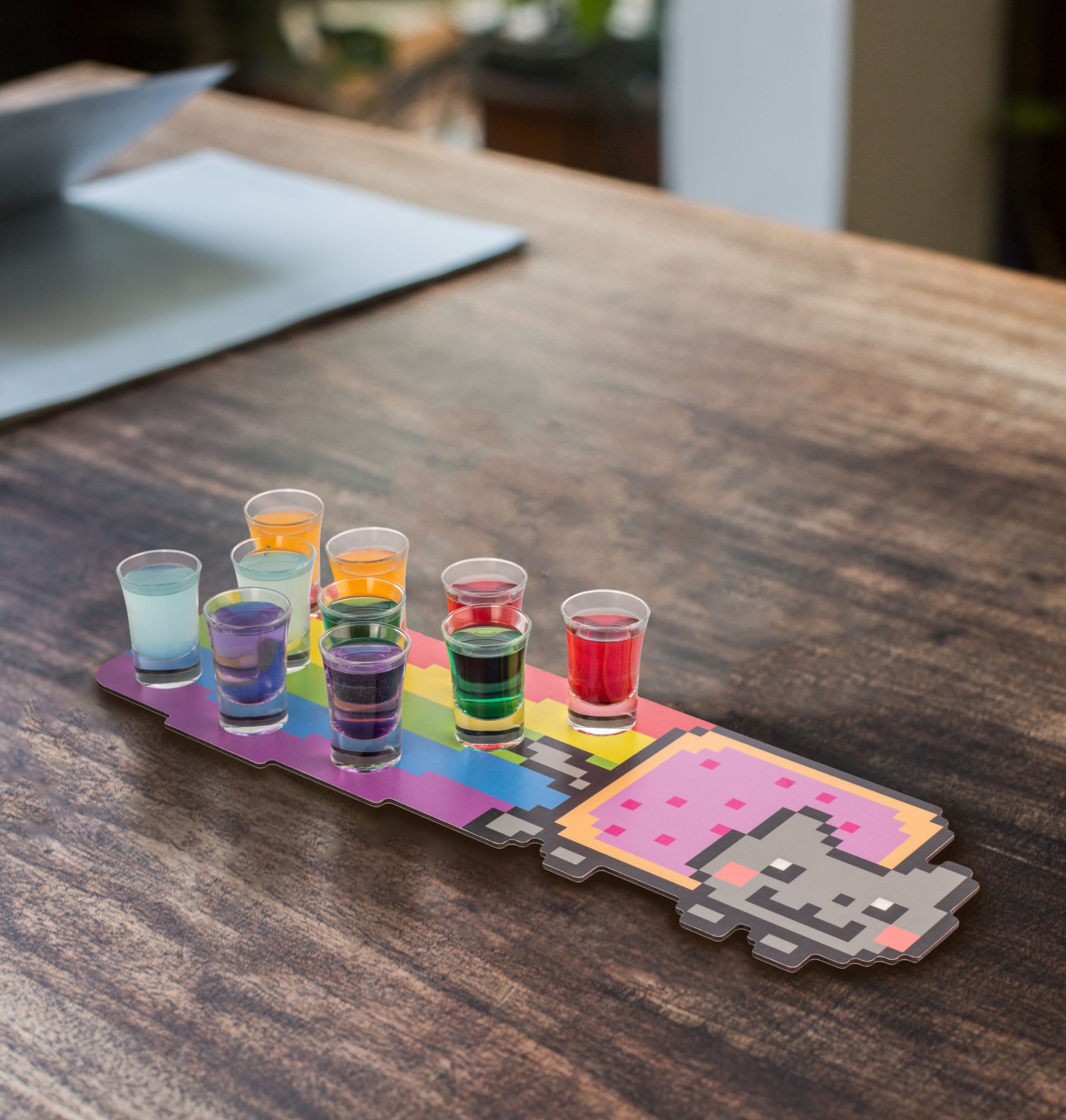Le troisième à voir le jour fut le plateau "Nyan Cat". Est-ce vraiment nécessaire de vous présenter qui est ce chat ? Un arc-en-ciel de 5 couleurs, 10 shots de 5 goûts et couleurs différentes ! Miam !