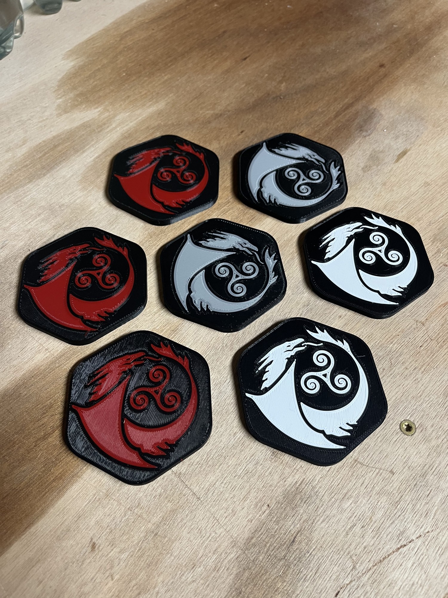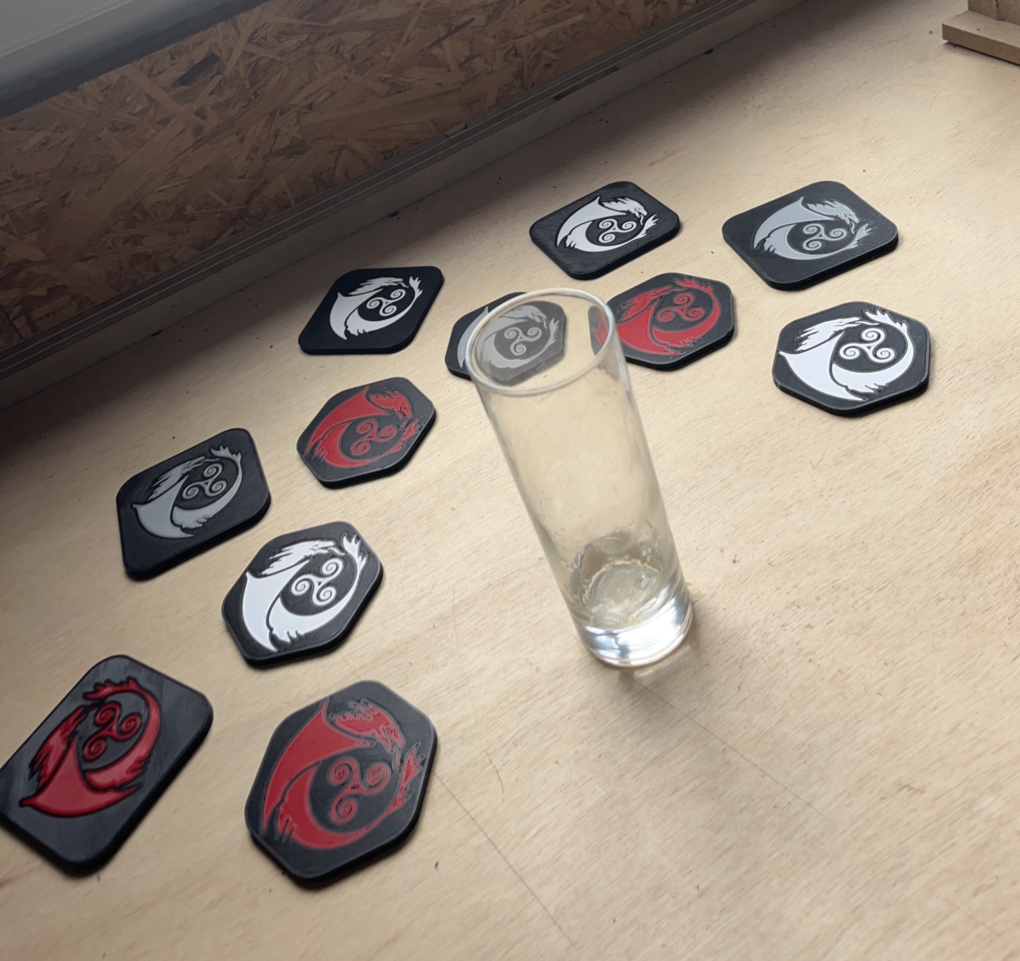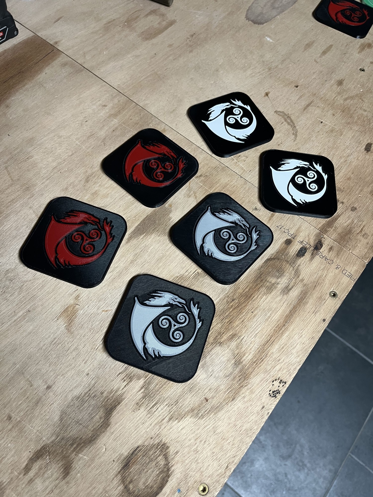 Nous sommes menuisiers geeks, et dans la geekerie il y a forcément des dragons impliqués. Alors de toute évidence quand une maison d'édition nous demande de créer leur logo sous forme de dessous de verre et que celui est un dessin de dragon, évidemment nous répondons présent !