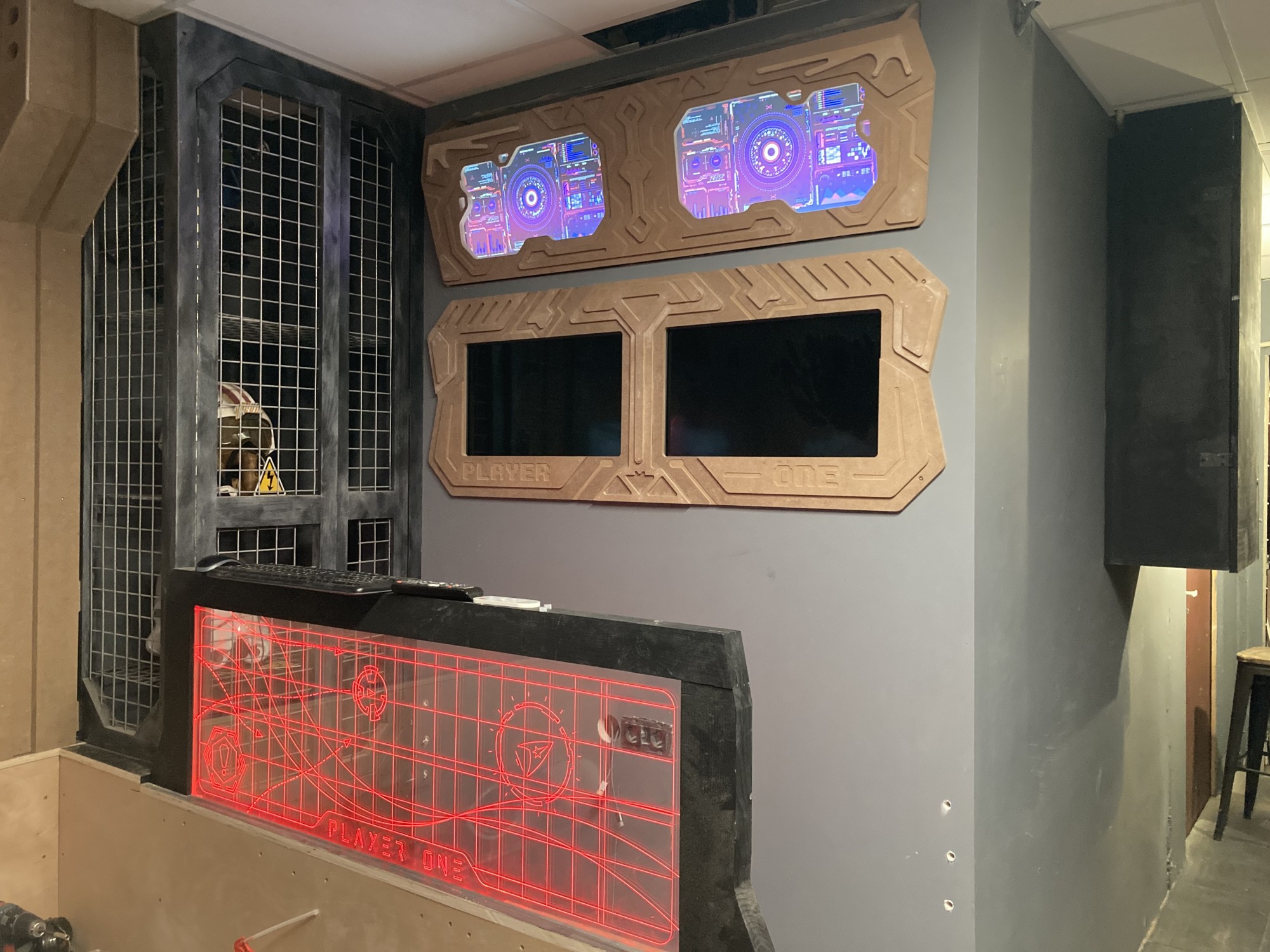 Conçue pour les besoins du bar Player One Paris, la space-room a été aménagée afin de recevoir les fan de SF assoiffés et avides de sensations. Des bancs et des tables ont donc été prévus pour les accueillir. La space-room peut être adaptée en fonction des besoins de chacun : bar, commerce, escape game, salle d'exposition ou de collection… à vos idées !