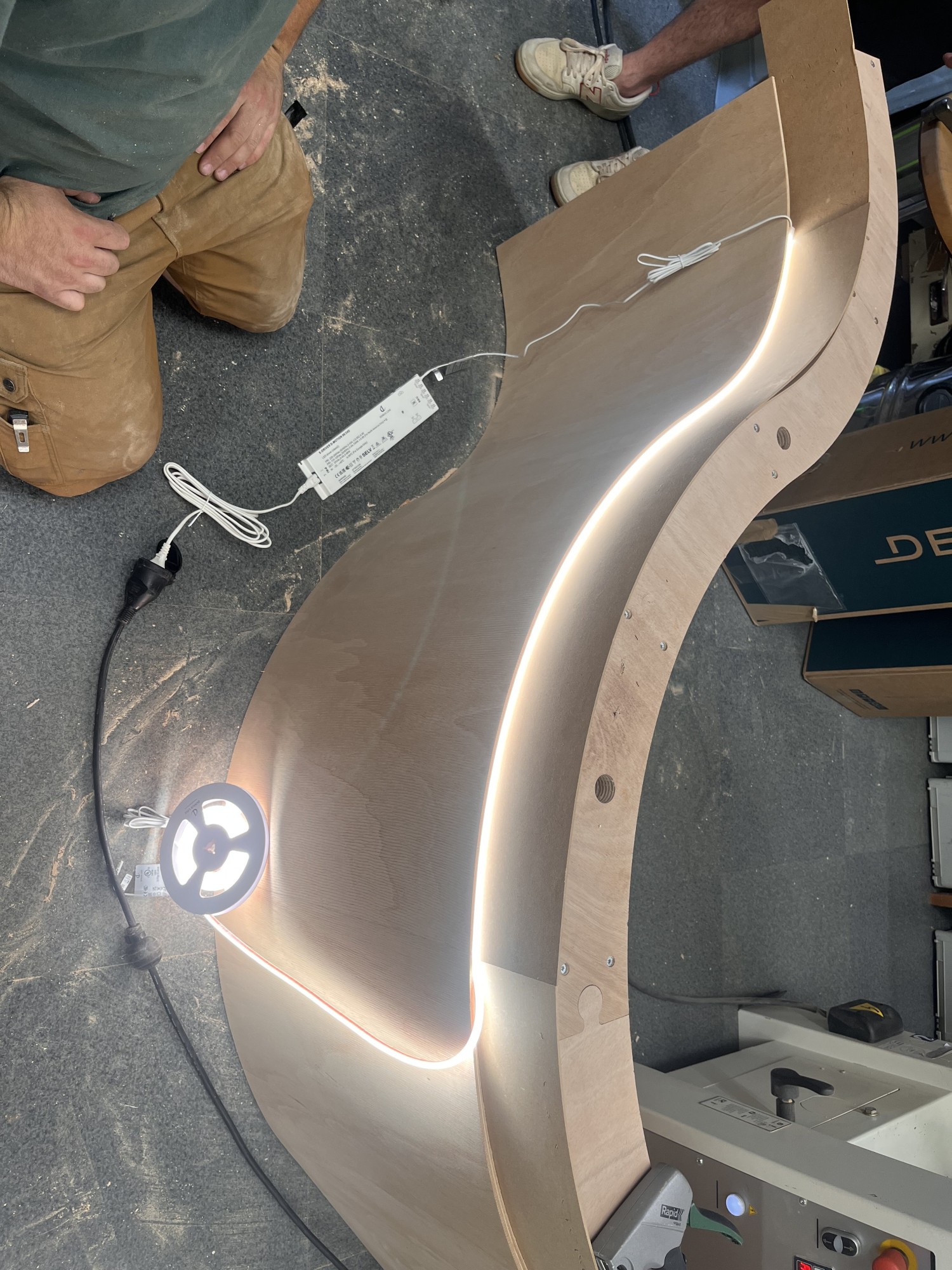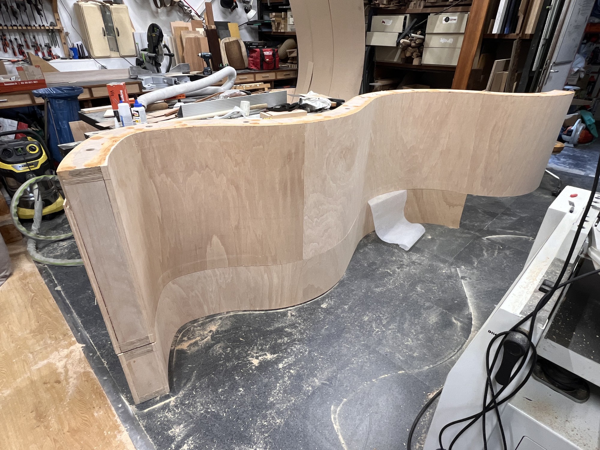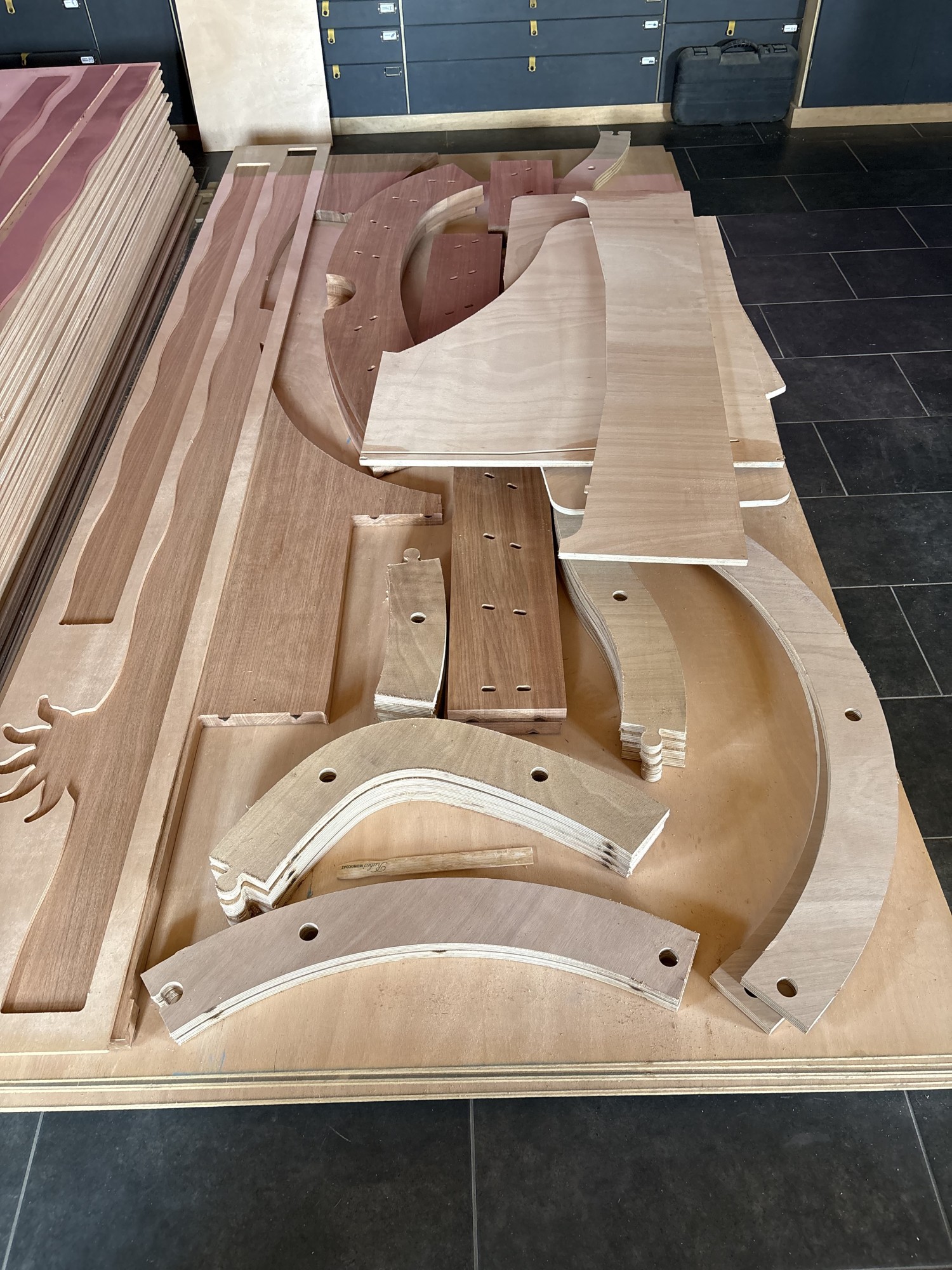Soyons claire sur une chose, le design, la conception, la réalisation et l'installation revient à Maxime et à Yohan. La seule partie qui nous concerne, c'est l'usinage des planches à la CNC (défonceuse à commande numérique).