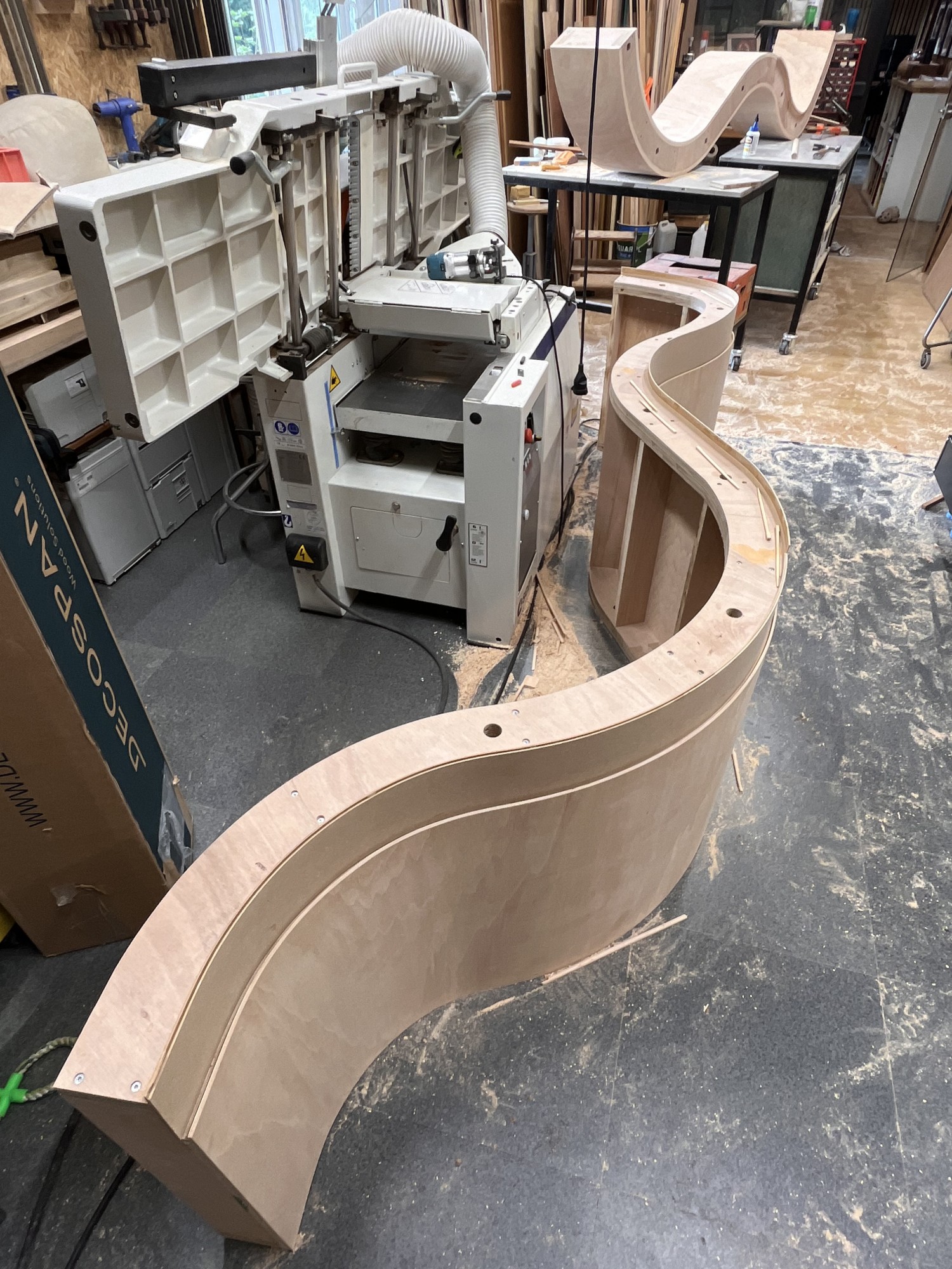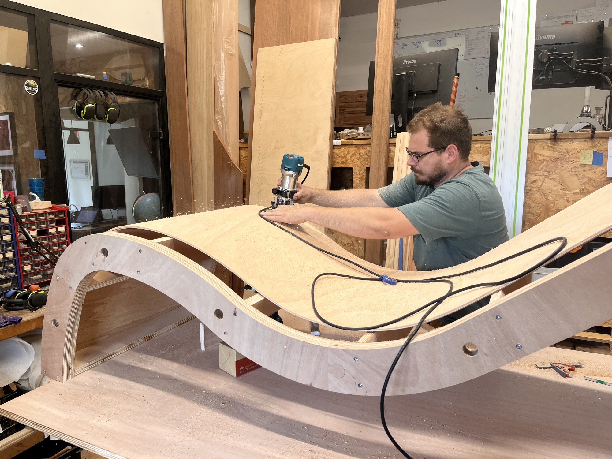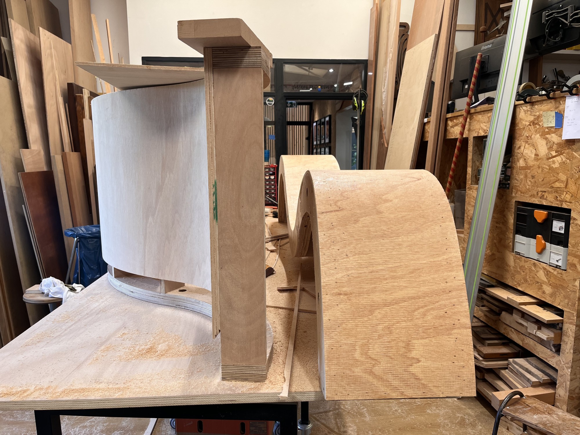 Soyons claire sur une chose, le design, la conception, la réalisation et l'installation revient à Maxime et à Yohan. La seule partie qui nous concerne, c'est l'usinage des planches à la CNC (défonceuse à commande numérique).