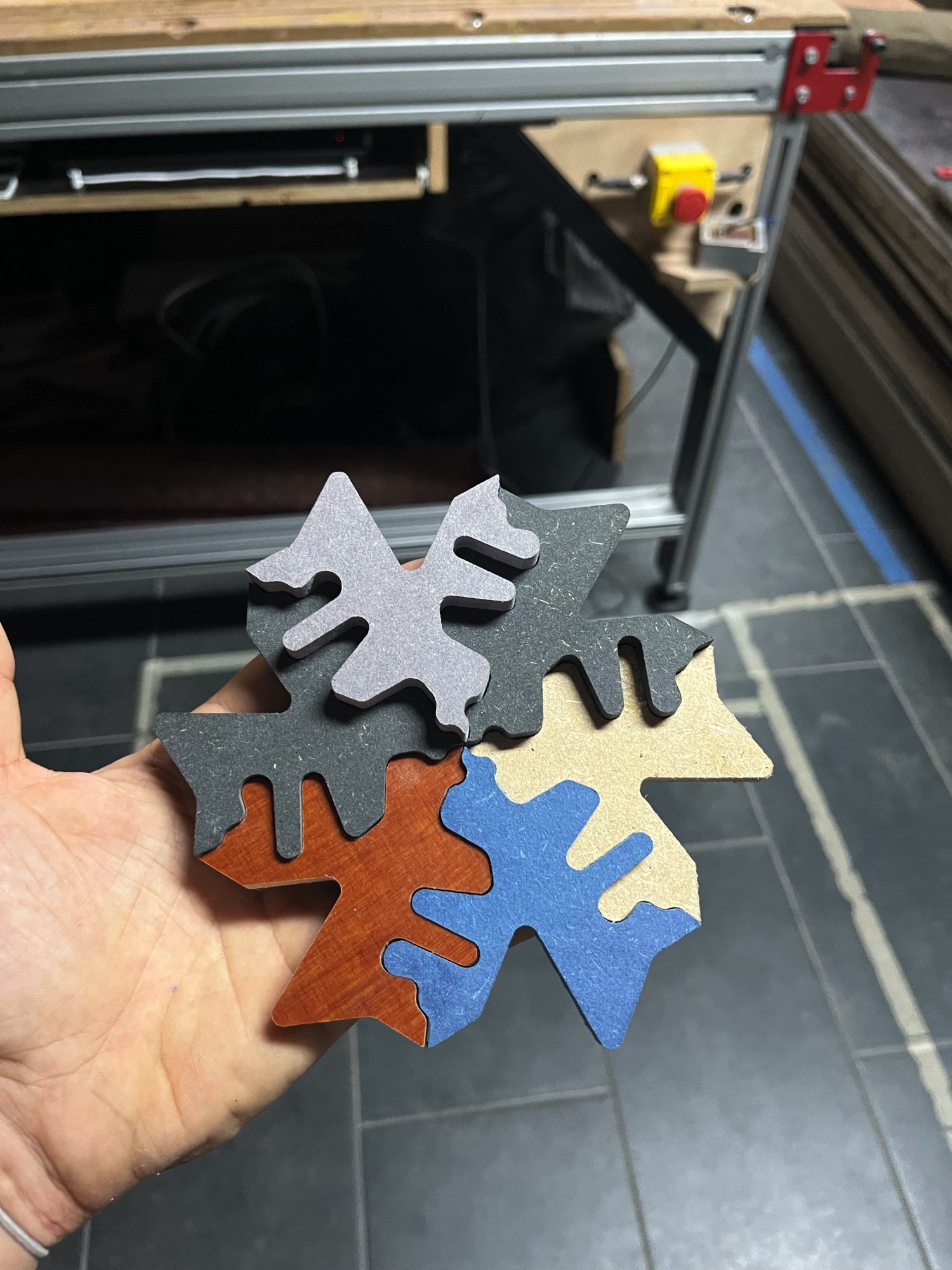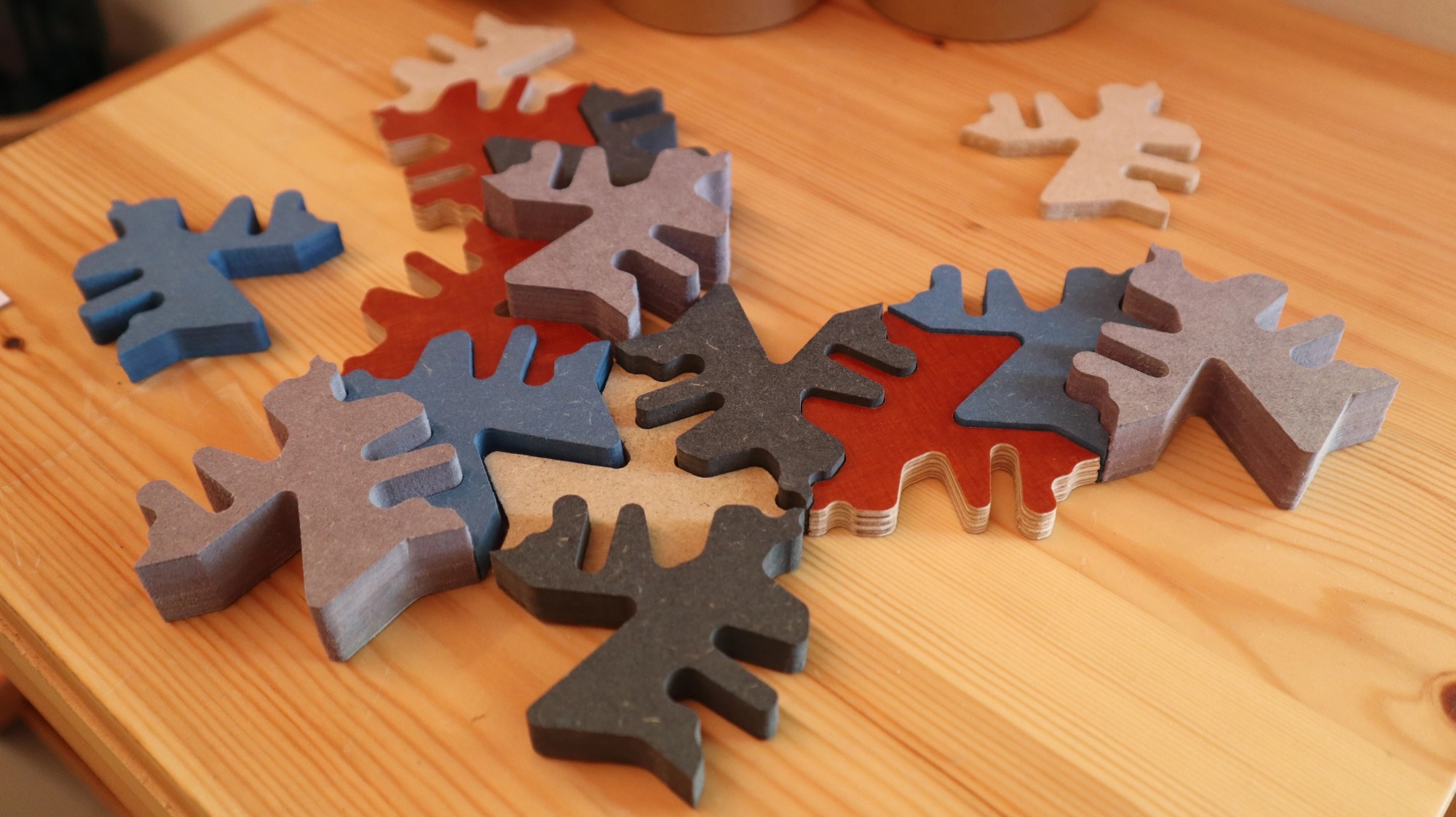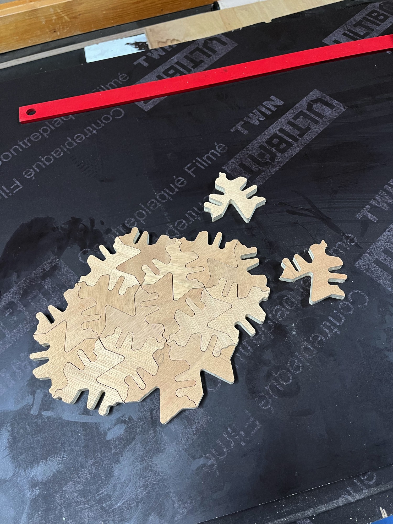 Dans le cadre de l'exposition « Du Bois duquel nous sommes faits » de Sarah ILLOUZ & Marius ESCANDE au musée Le SHED du 15 septembre au 10 novembre 2024, nous avons participé à la création de pièces en série pour leur puzzle "tessellation". Le SHED est un centre indépendant dédié à l’art contemporain, situé près de Rouen.